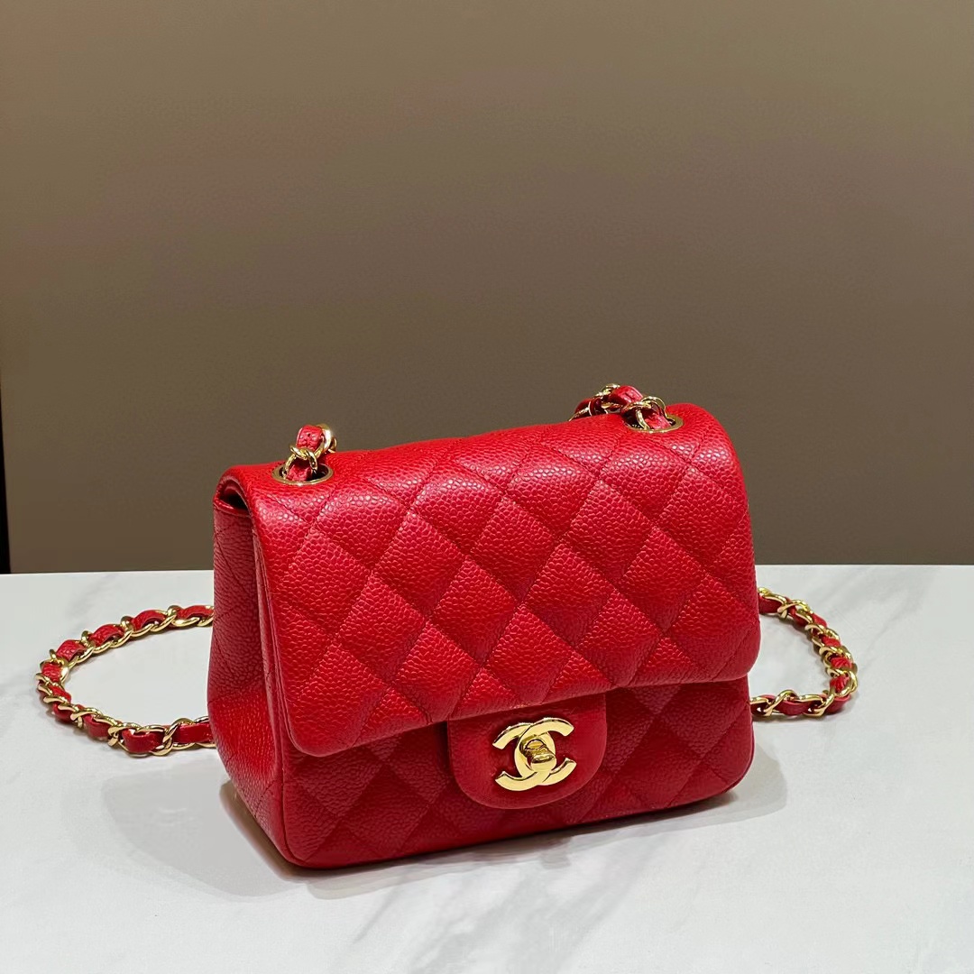 紅色荔枝紋金扣 /