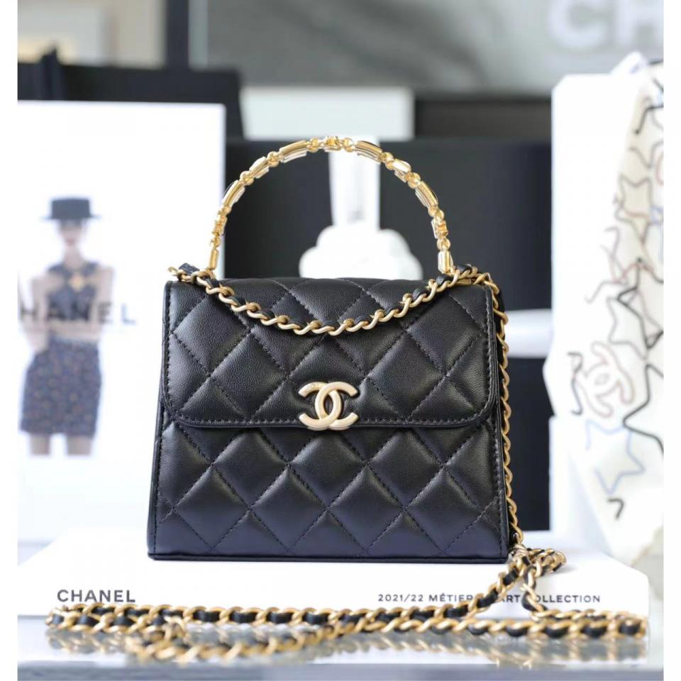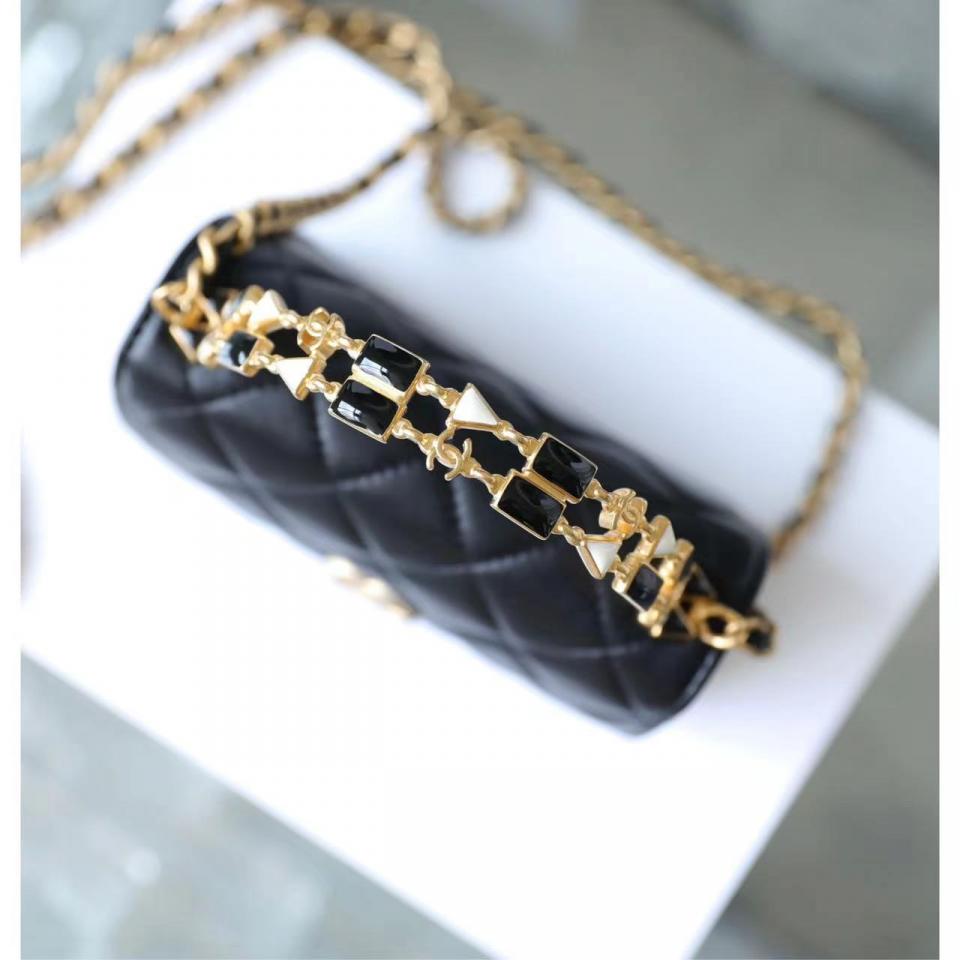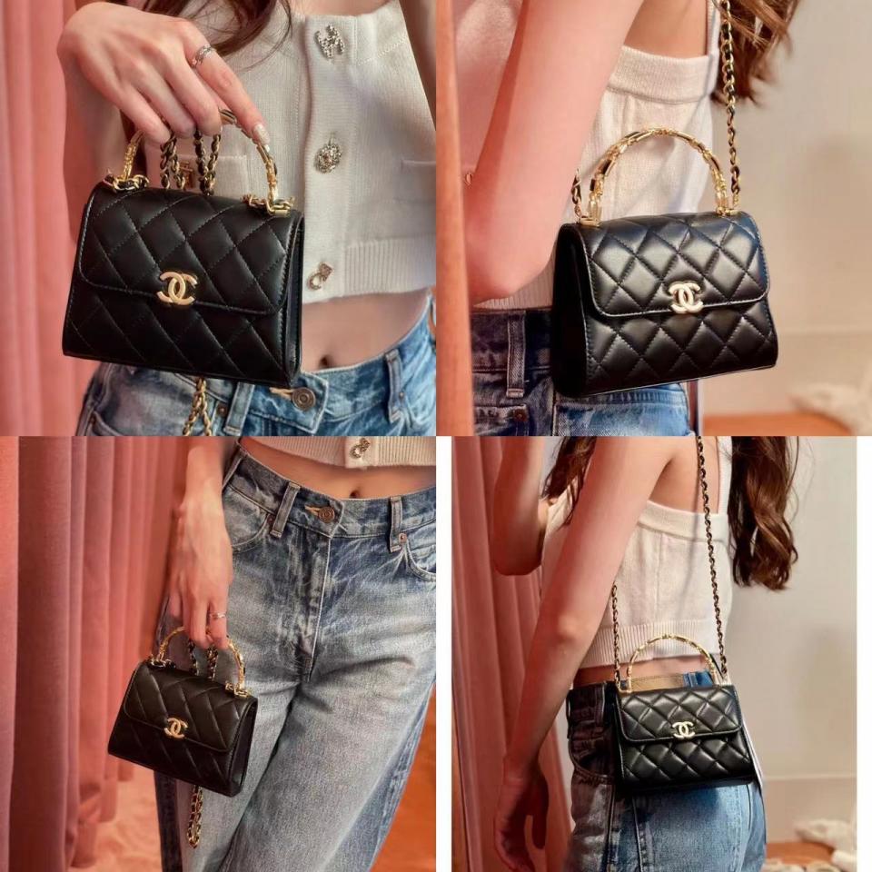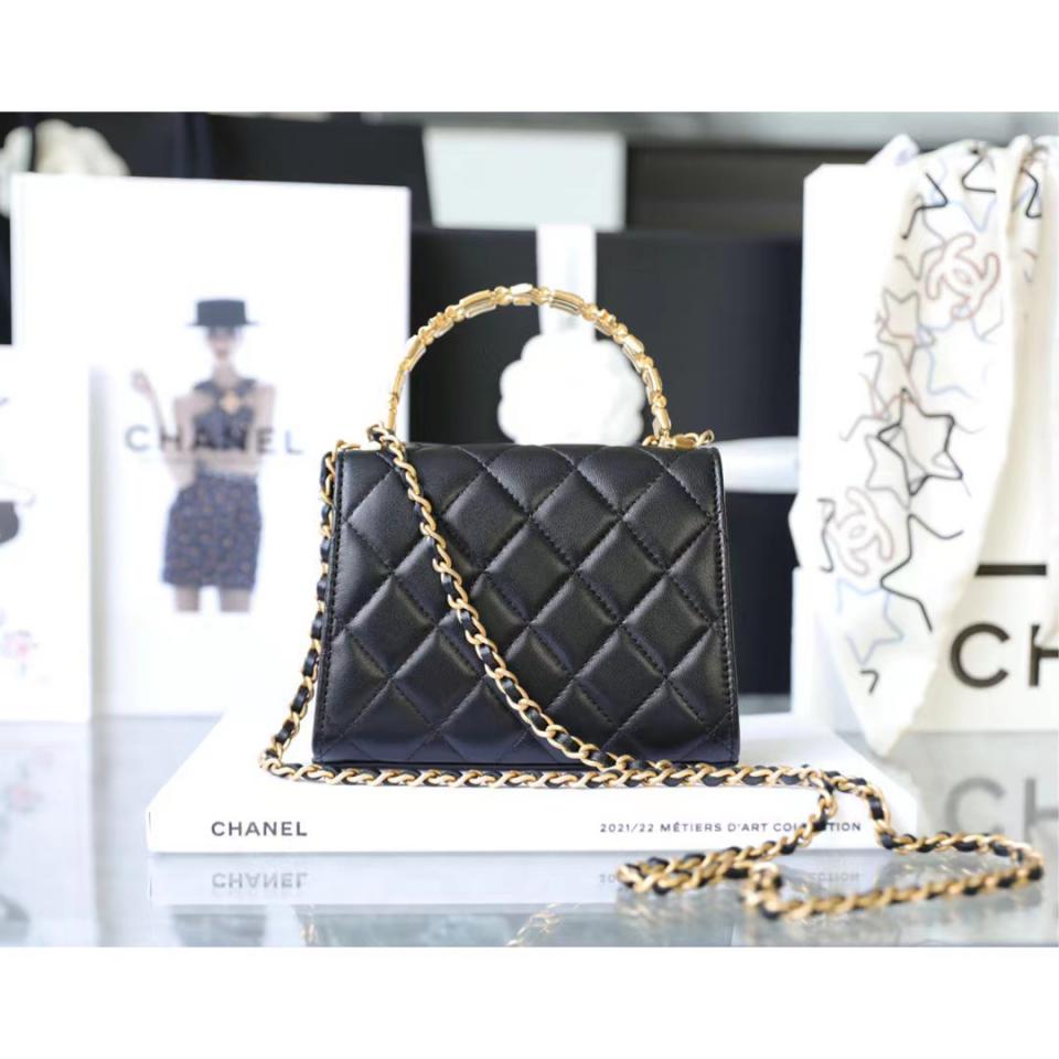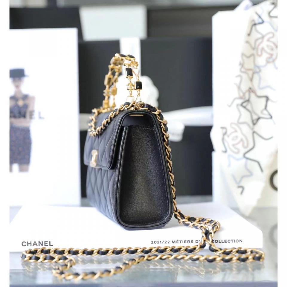 2022秋冬新品 琺瑯手柄鏈條口蓋包(黑色中號) 這一季出的款太好看啦