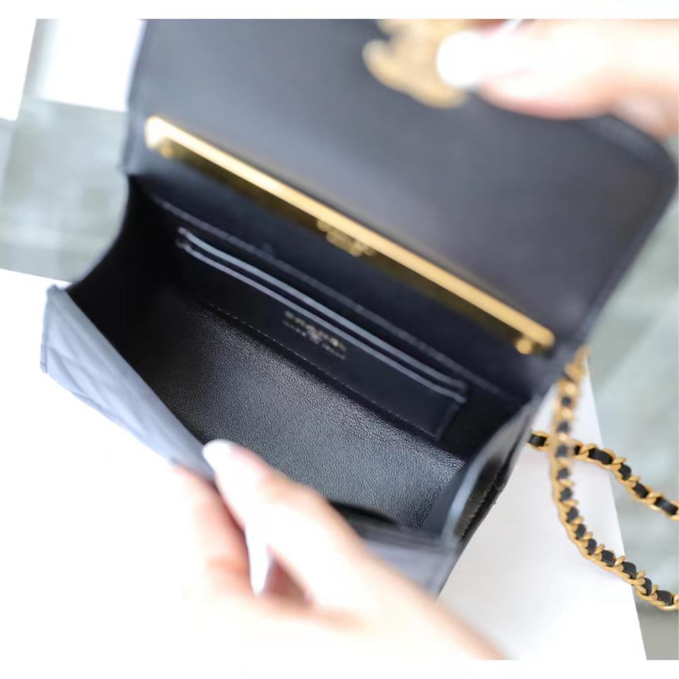 C家琺瑯手柄鏈條口蓋包(黑色中號)