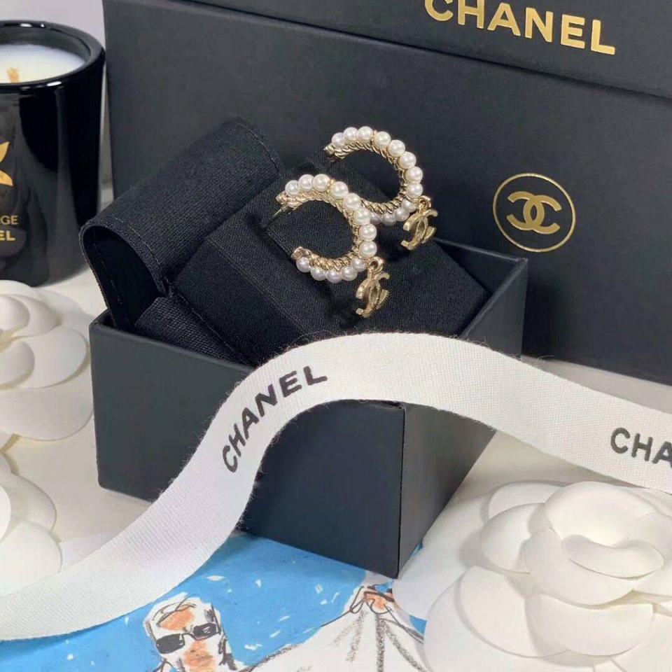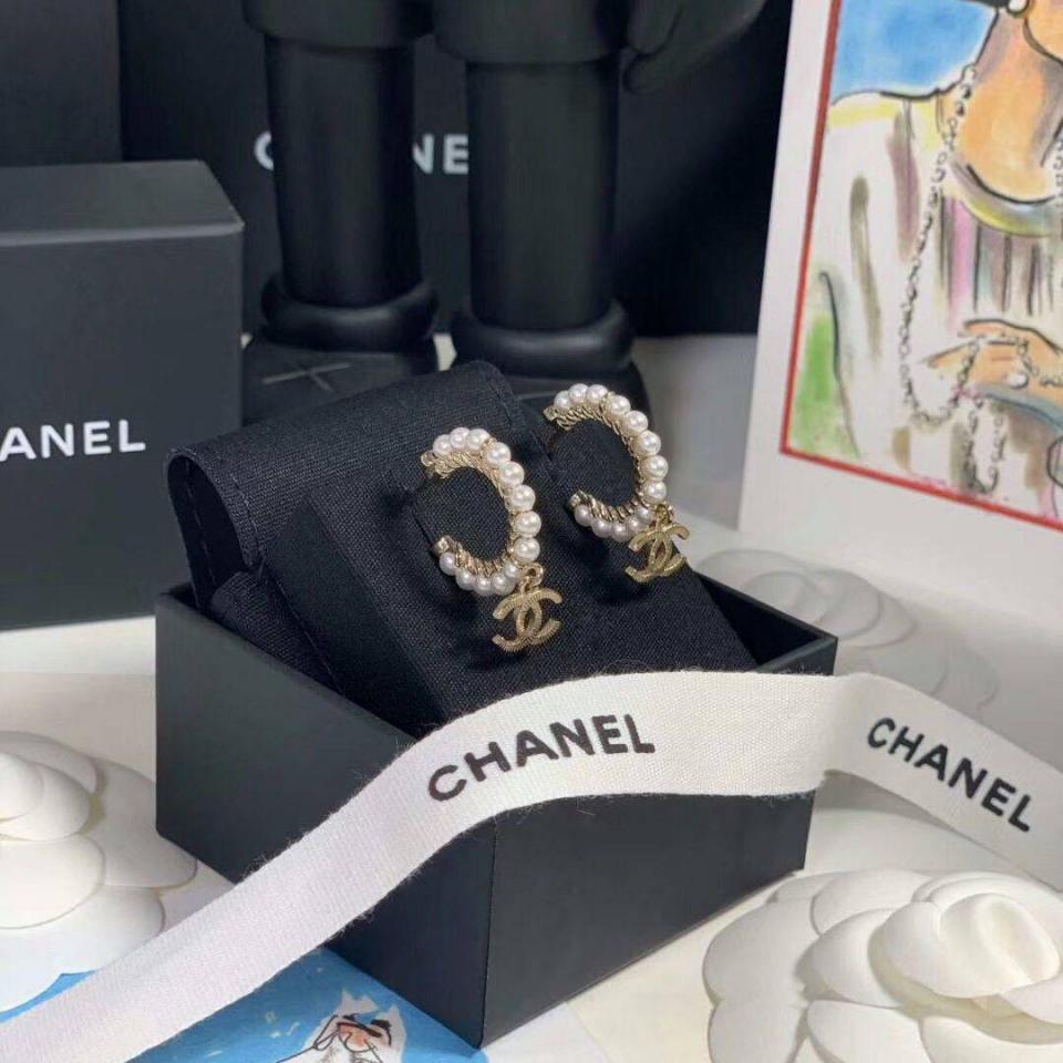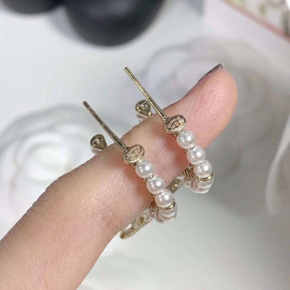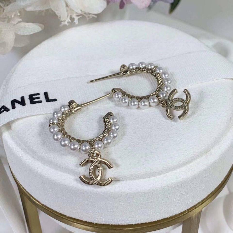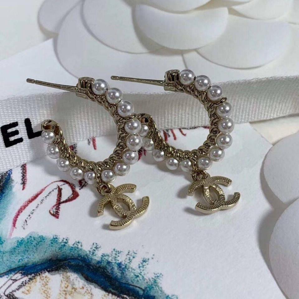 2020春夏款 珍珠圓環雙C吊墜耳環 強烈推薦