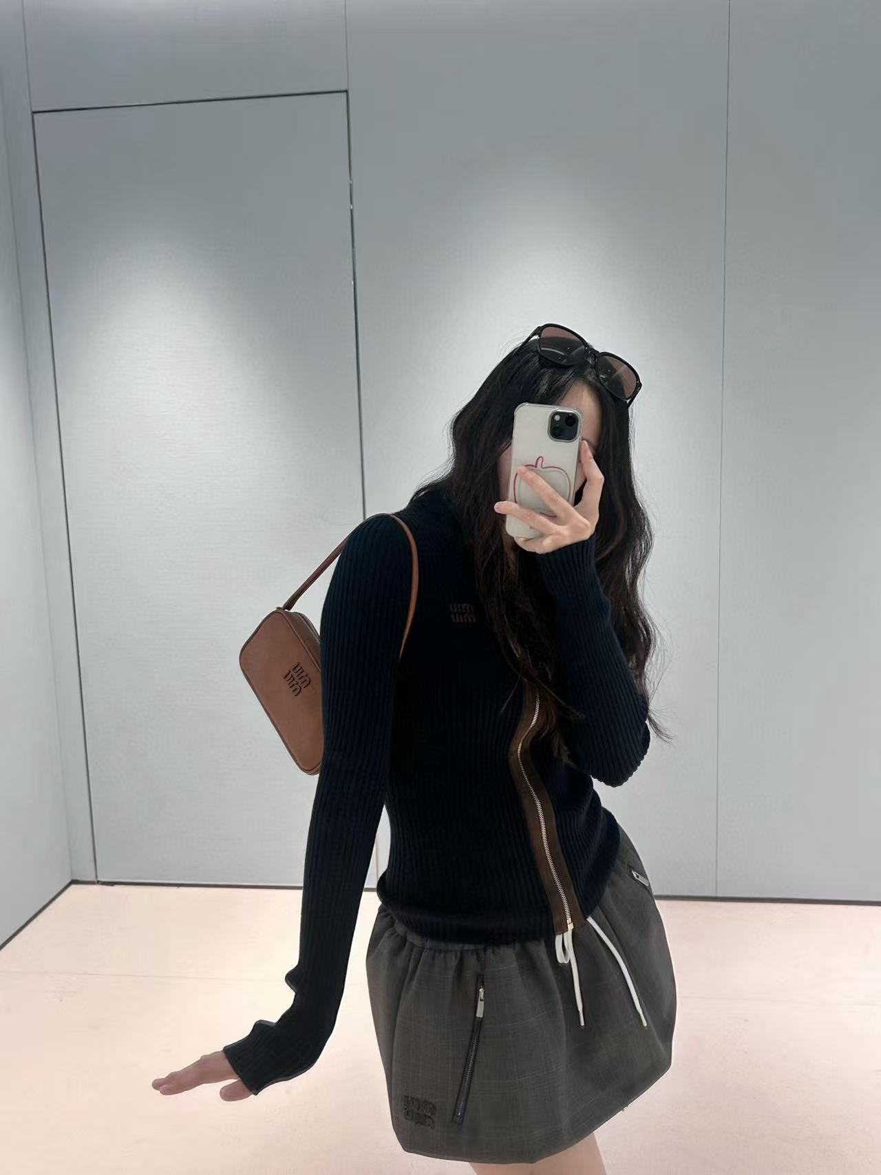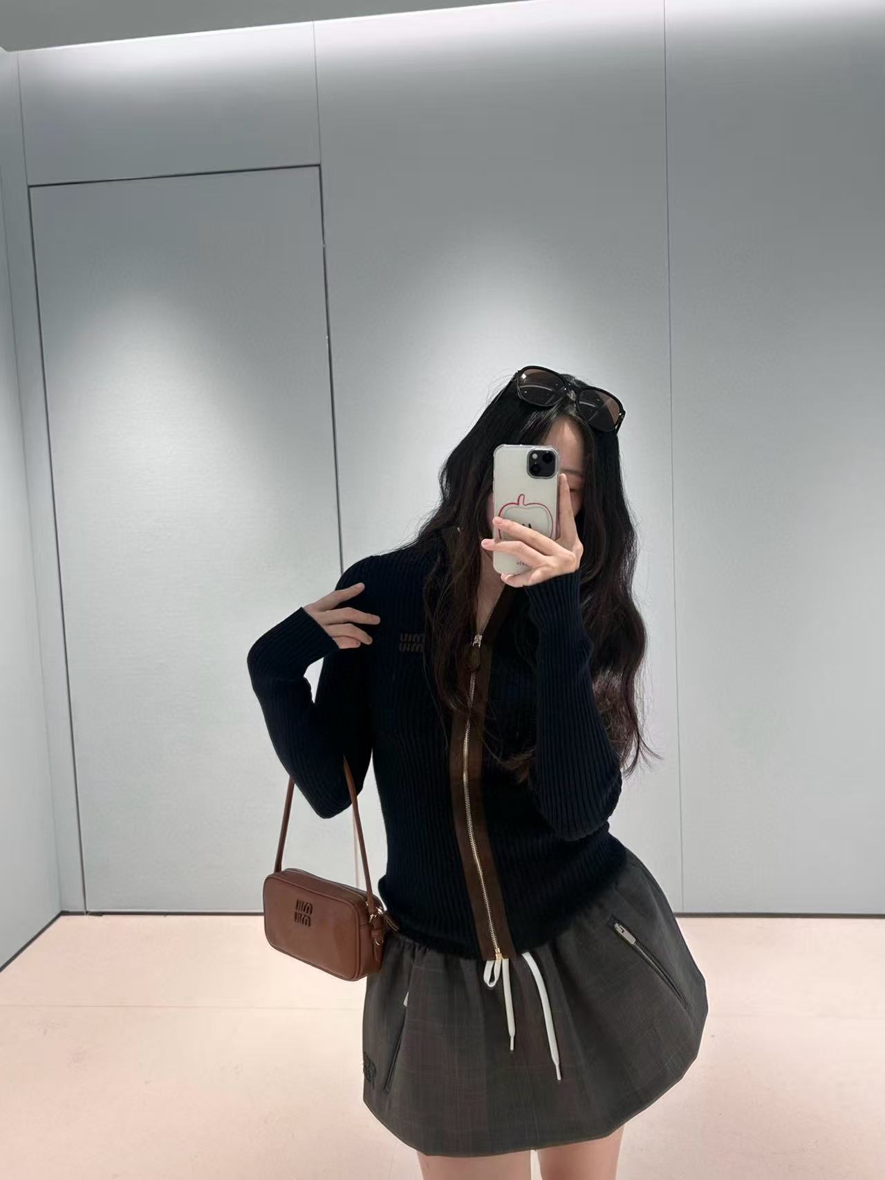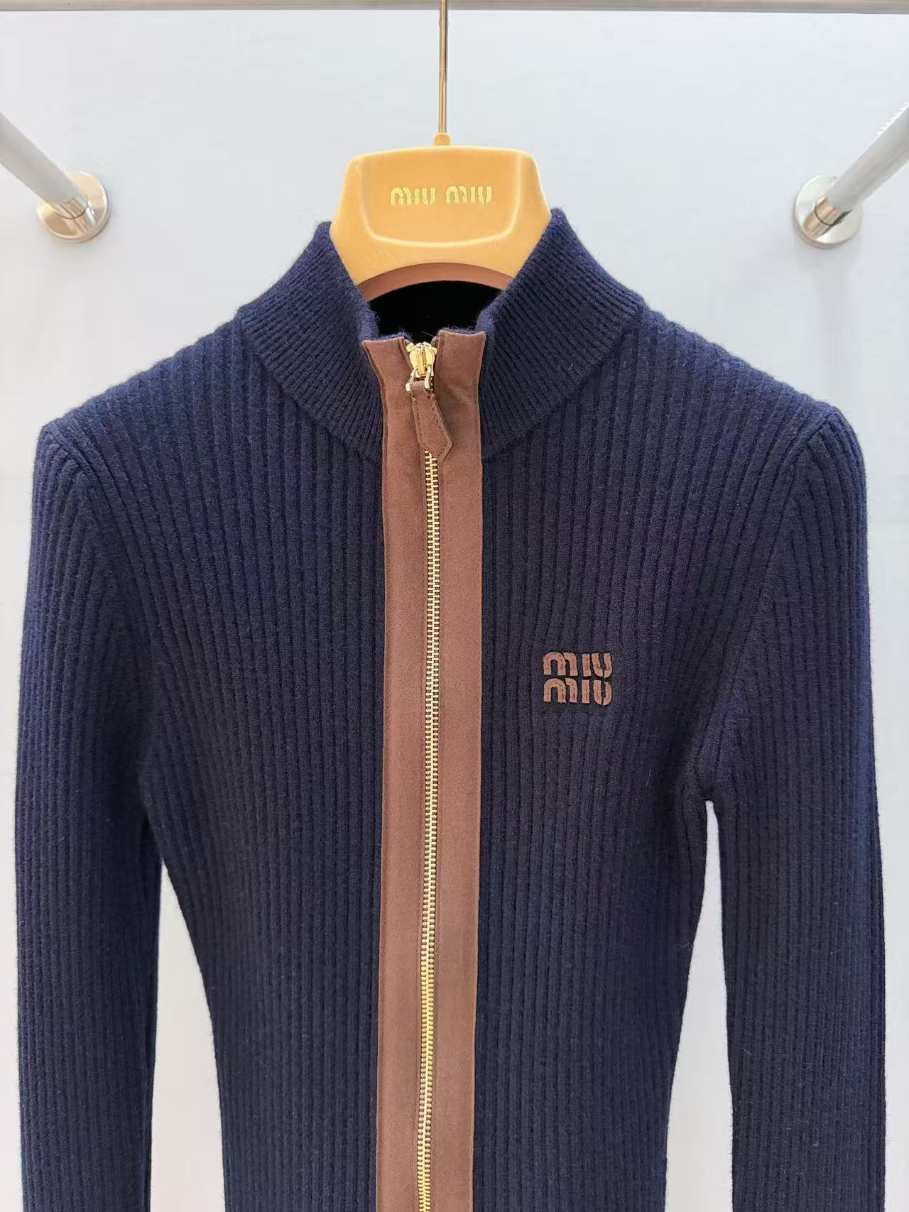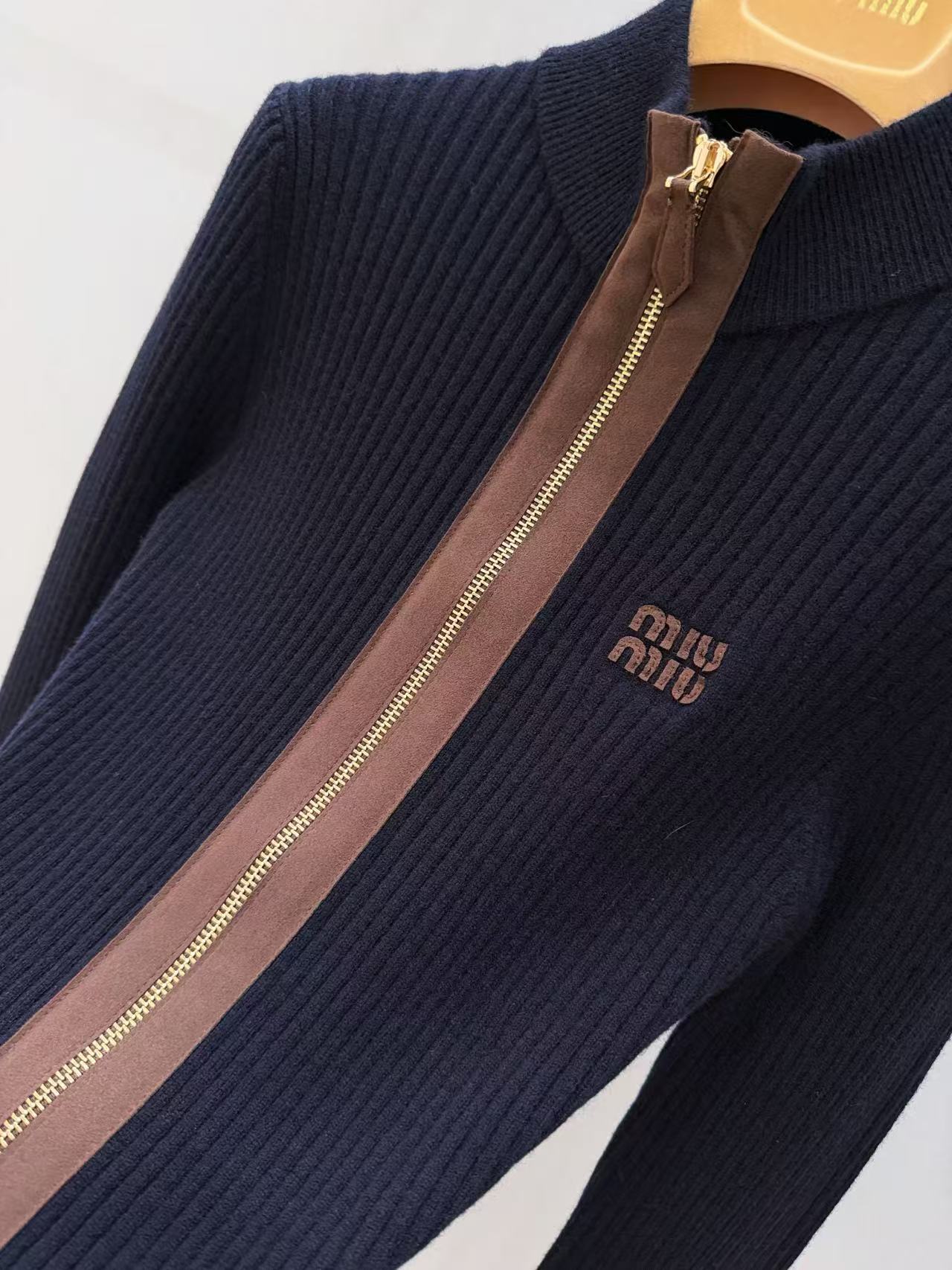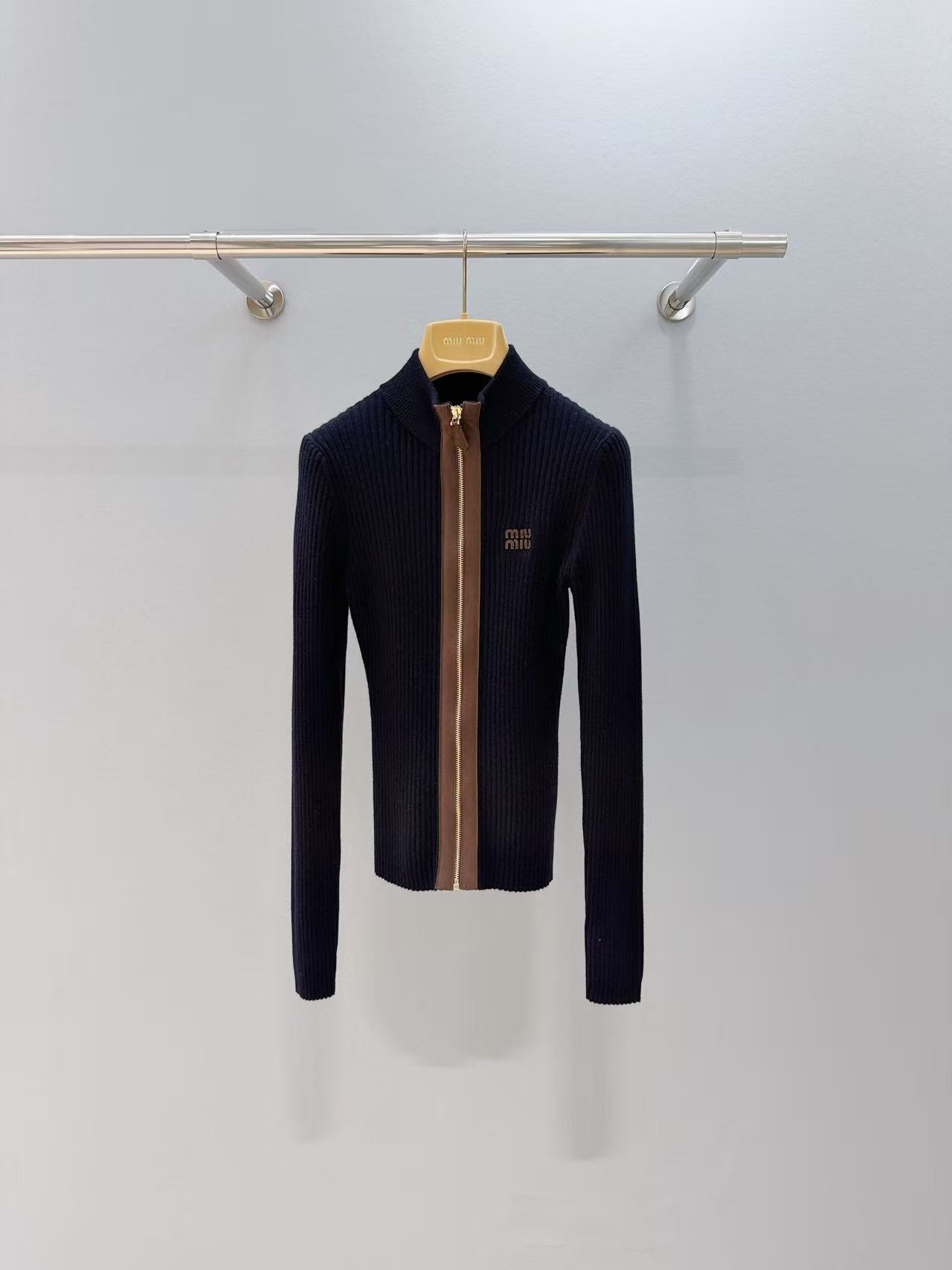 2025早秋  Miu家  字母Logo立領拉鍊針織開衫