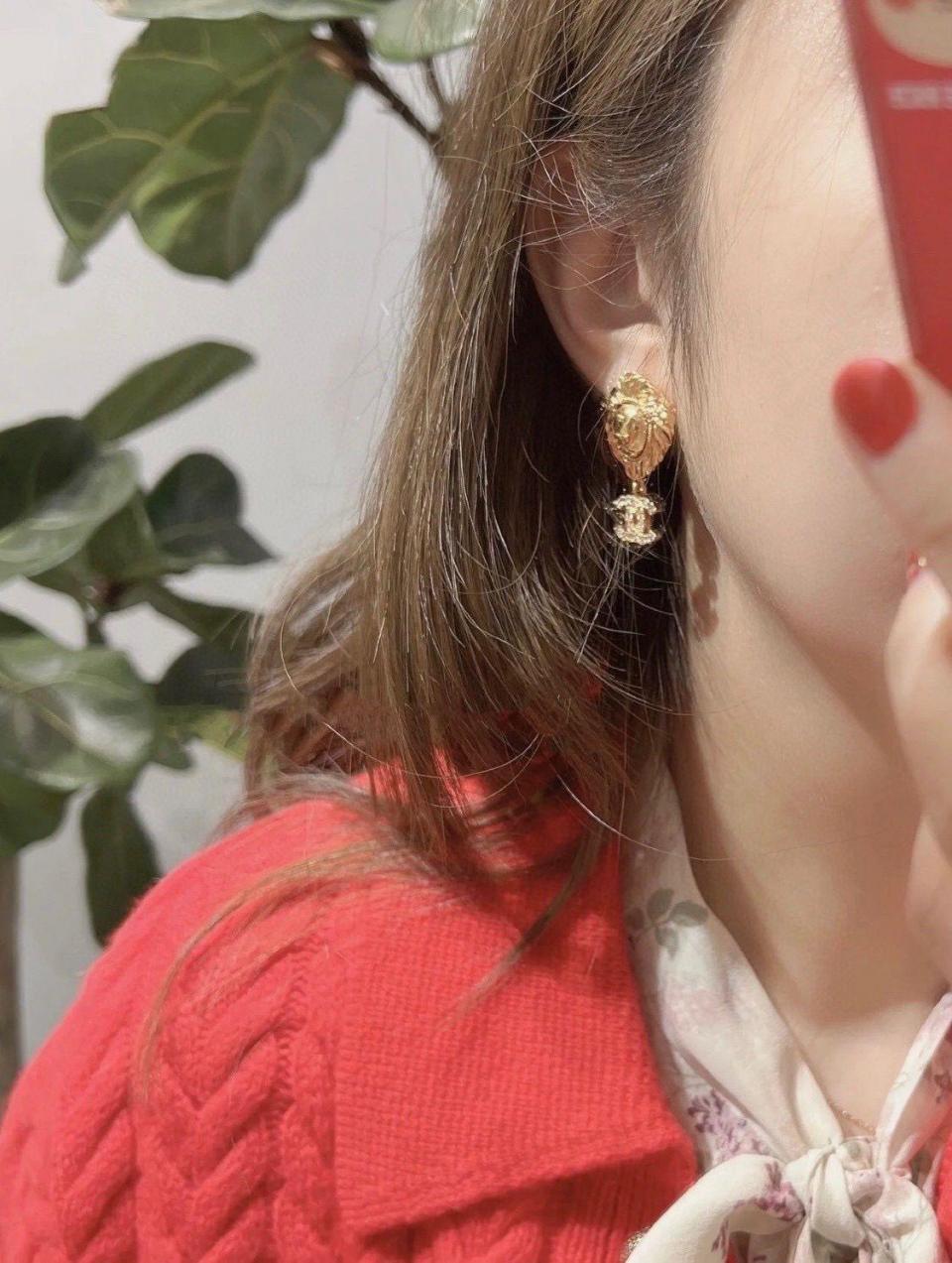 C家金獅吊雙C耳環