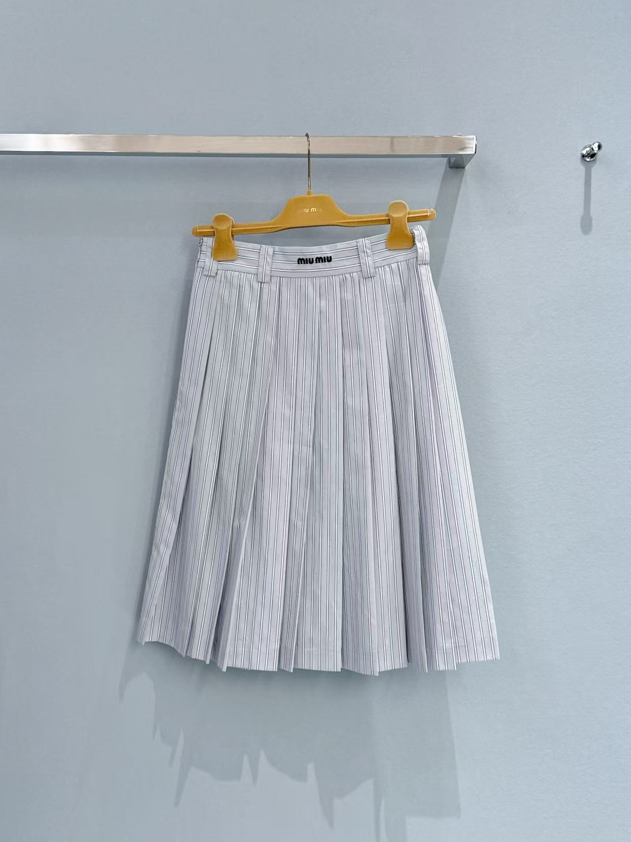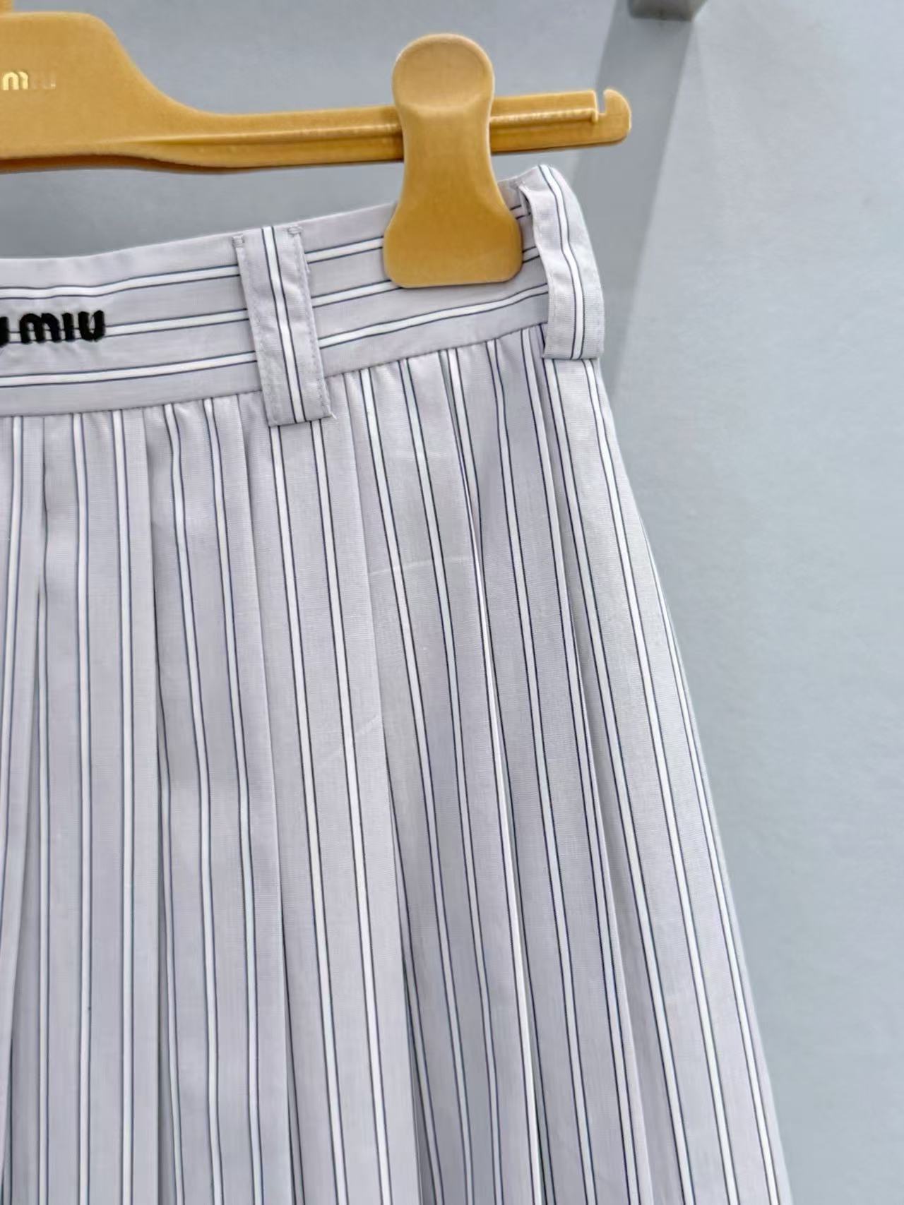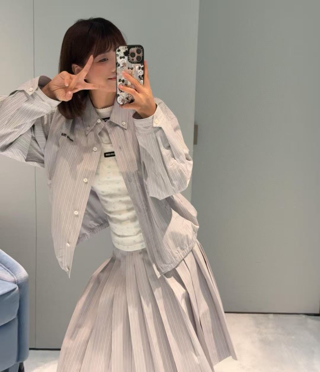 腰頭或裙擺處點綴了標誌性的 Miu字母刺繡。這種不張揚的精緻感,讓妳在轉身間展現出品牌的高端身份,是質感女孩一眼就能認出的專屬標識。