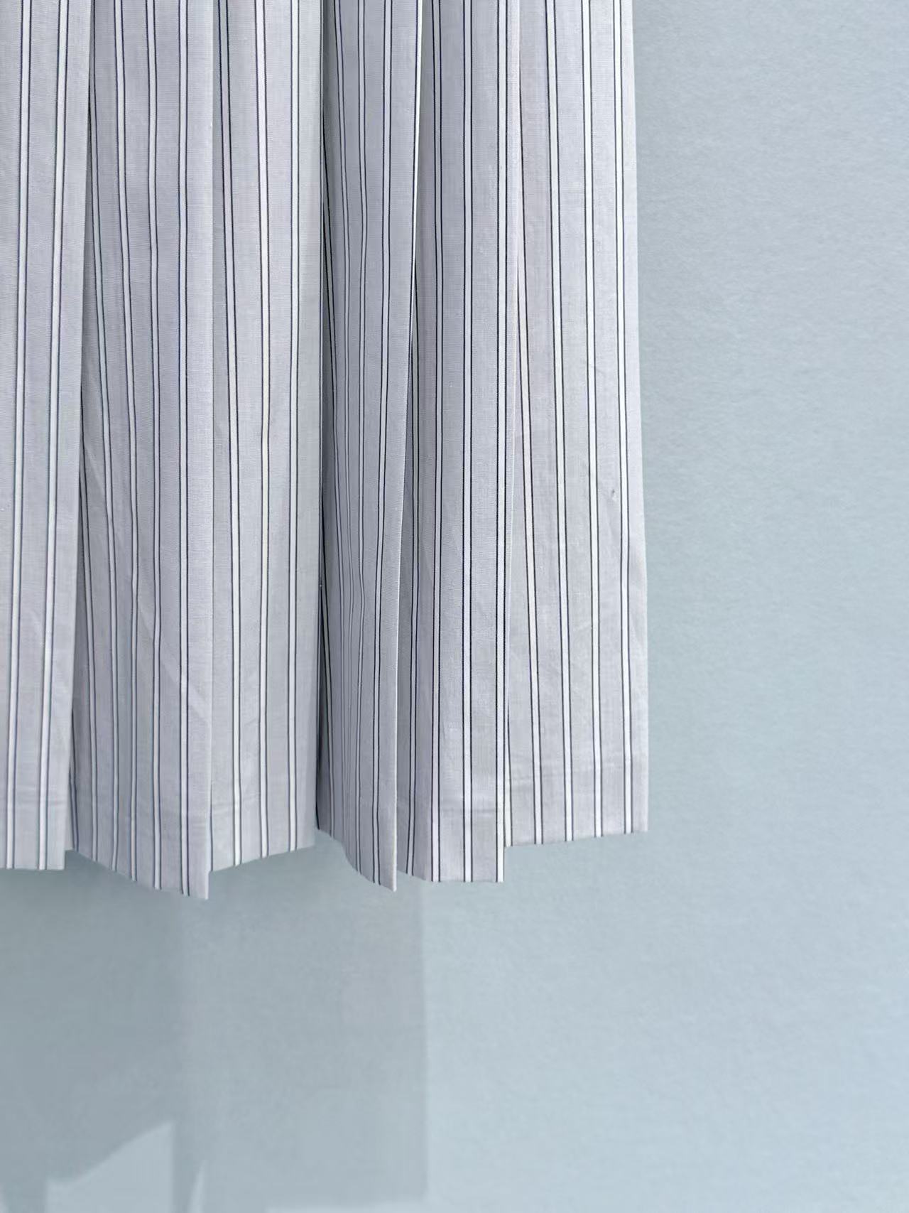 100% 頂級純棉材質: 嚴選高品質長絨棉,織就成觸感乾爽輕盈且具備良好骨感的布料。這種材質不僅透氣親膚,更能支撐起百褶的立體度,不會因為坐下或行走而輕易變形。