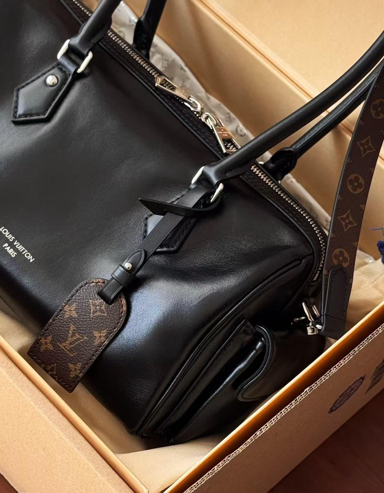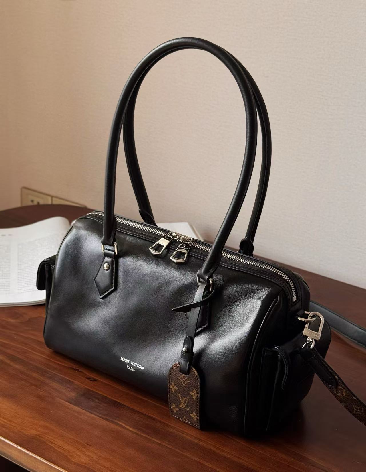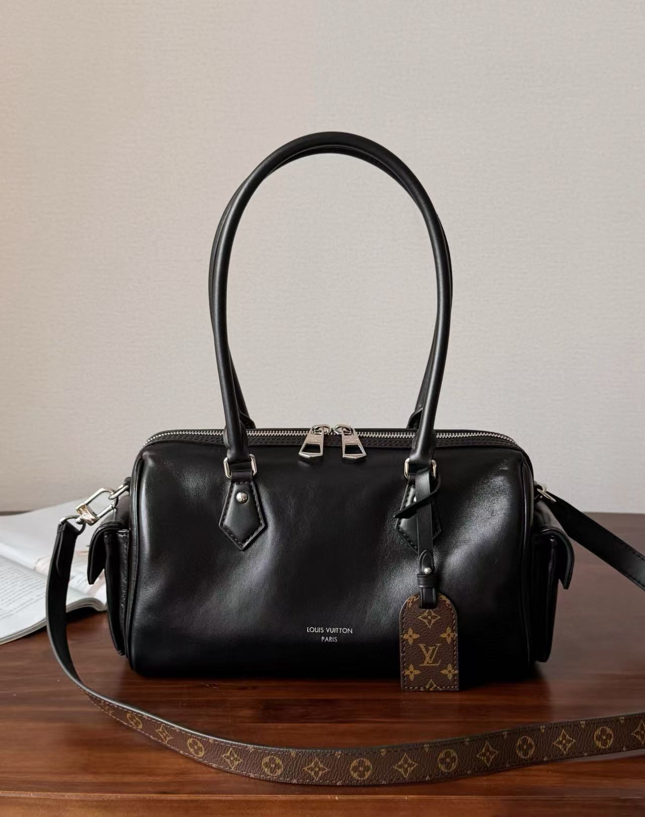 包身選用亮面小羊皮,觸感滑順細膩,如奶油般柔軟,兼具奢華與實用性。正面飾有Monogram風格的地址牌,低調中展現經典品味。內裡容量充足,側邊兩個口袋方便收納鑰匙、紙巾等小物,對於喜歡井然有序的你來說簡直完美!