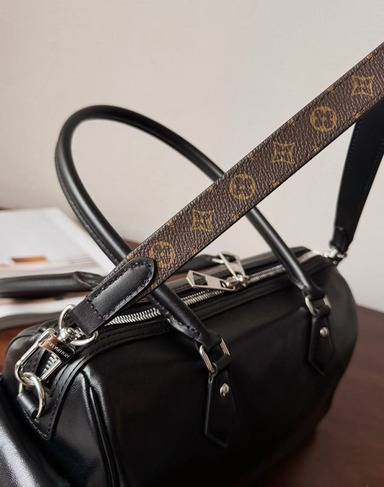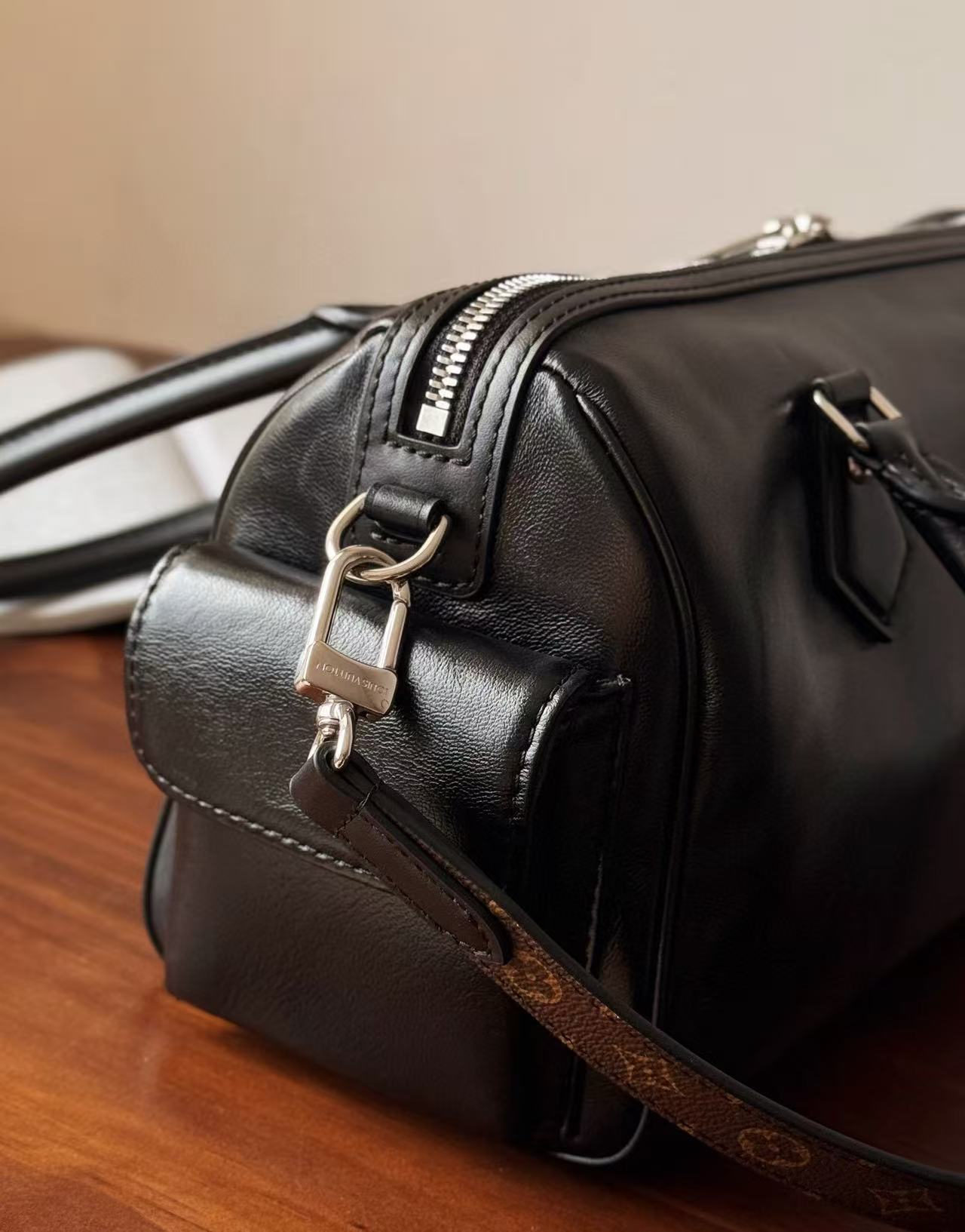搭配全鋼電鍍五金,質感滿分不怕刮花,搭配可拆式皮革肩帶,單肩、斜背、手提都能駕馭,多種背法輕鬆應對各種日常或場合變換。
