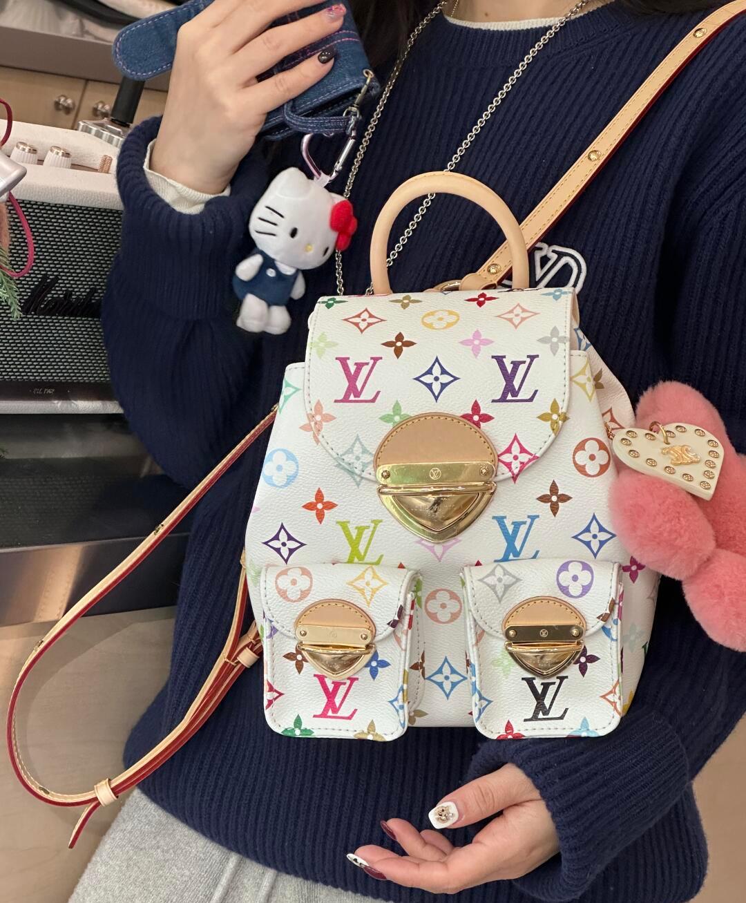 2025早春新品 L家 x 村上隆VENICE 白三彩後背包|復古童趣的藝術時尚