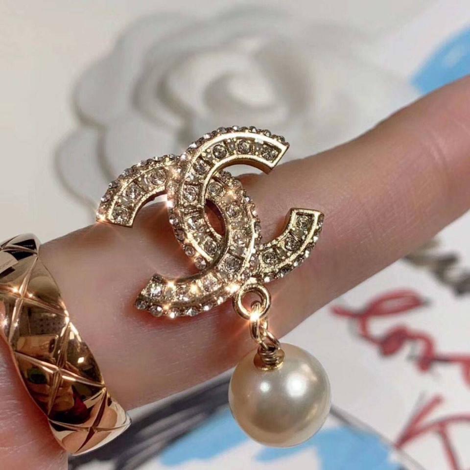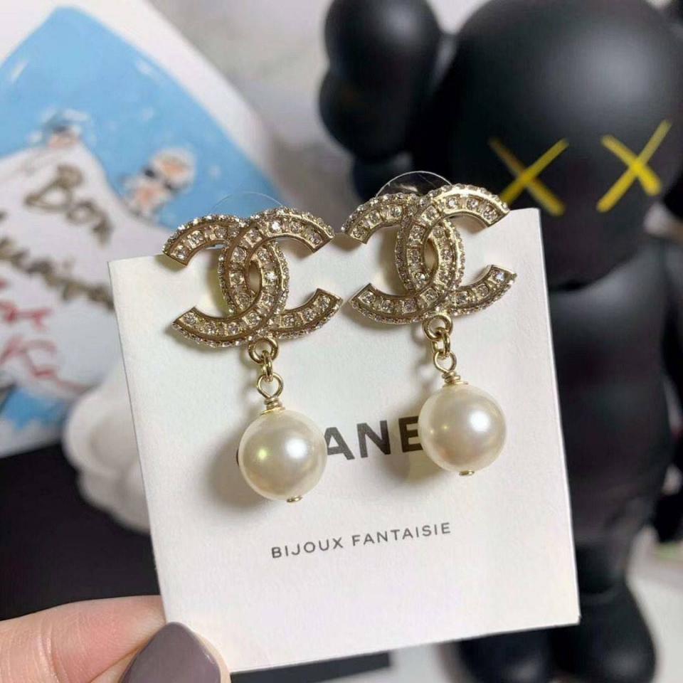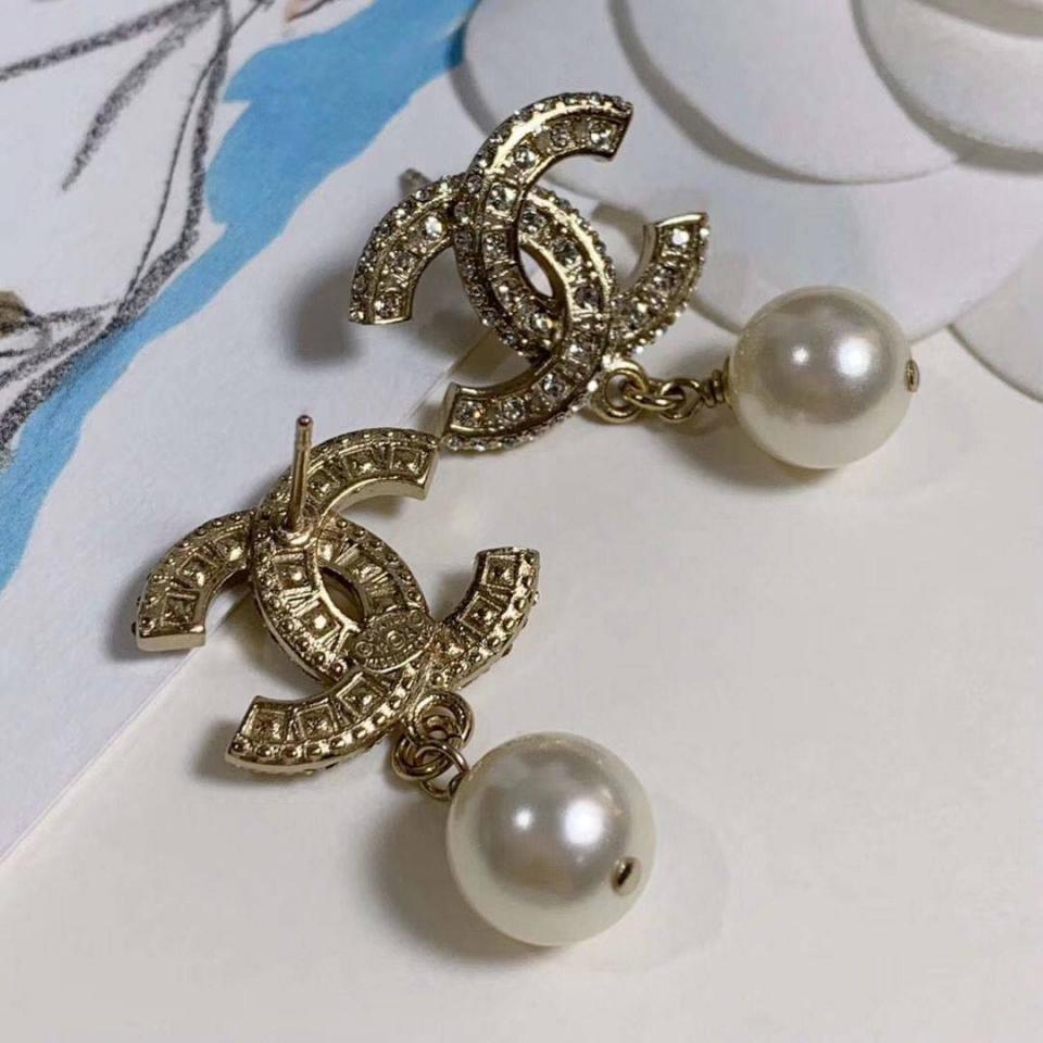 2020 珍珠吊墜耳環 最經典的簡約雙C滿鑽設計