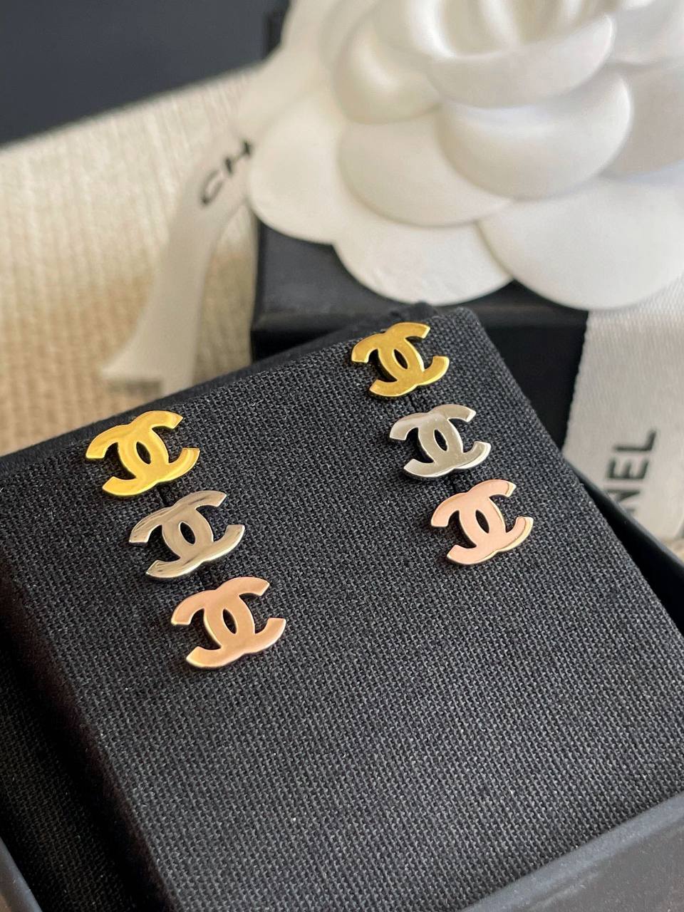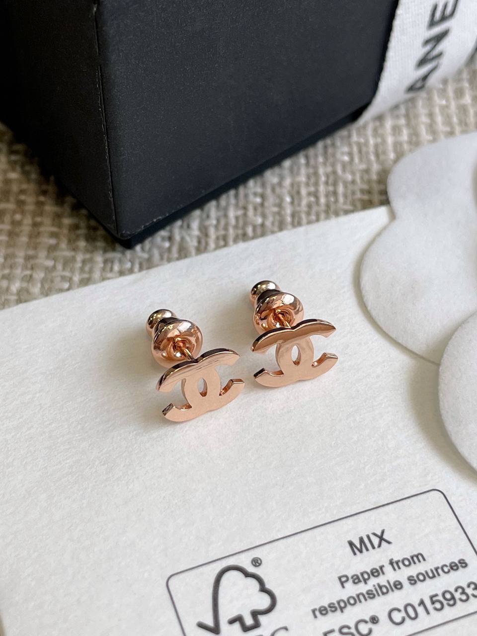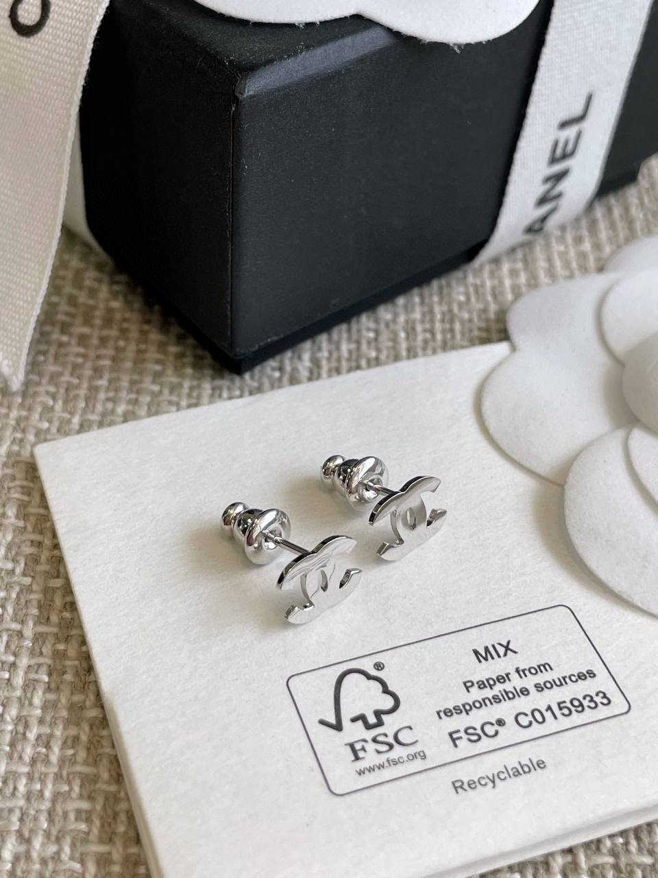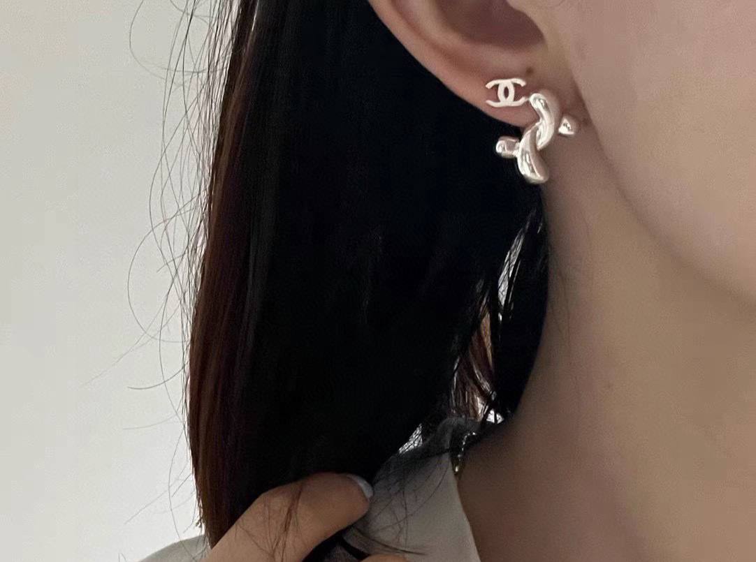 2024春夏 C家光面迷你雙C耳環