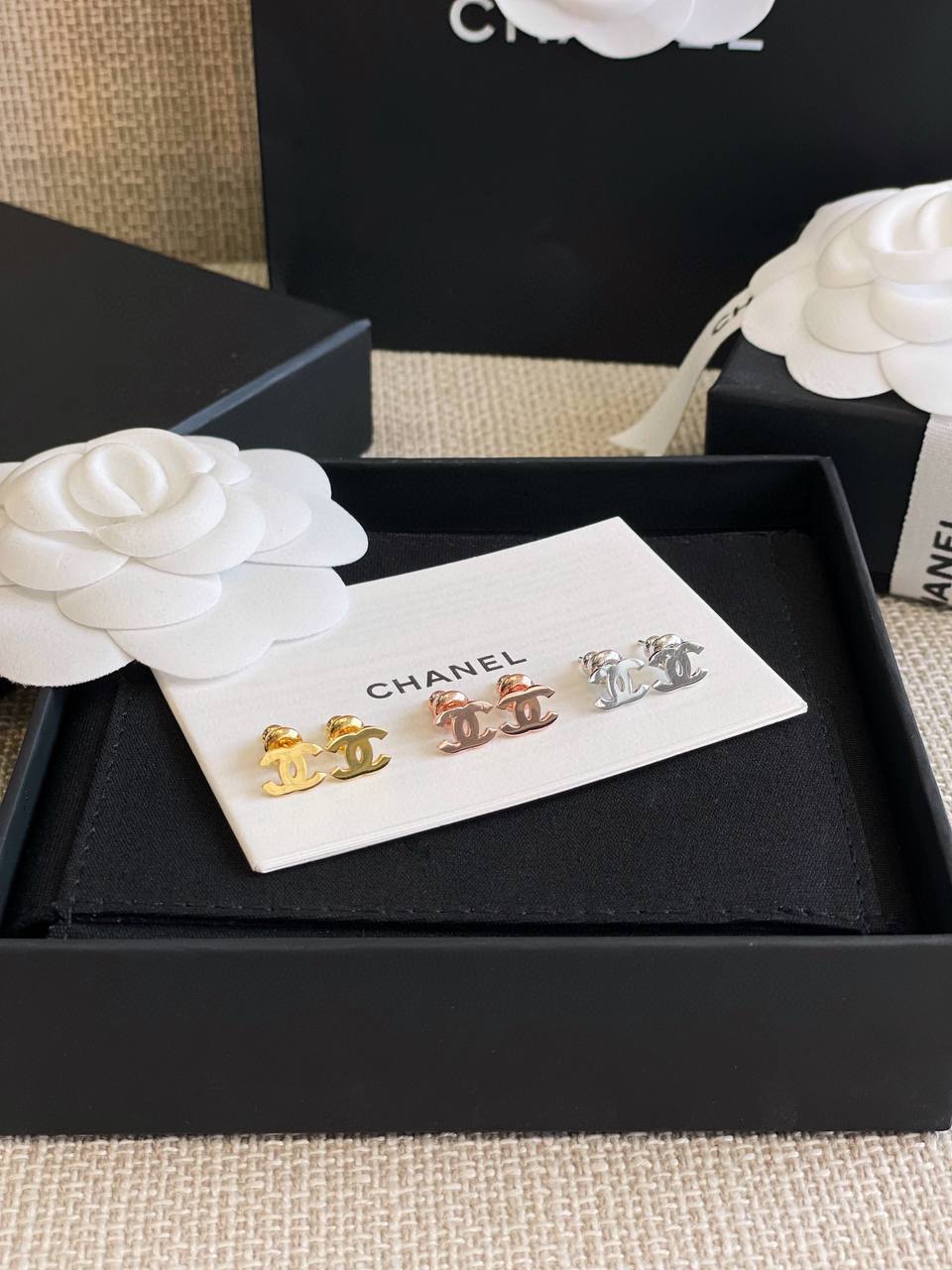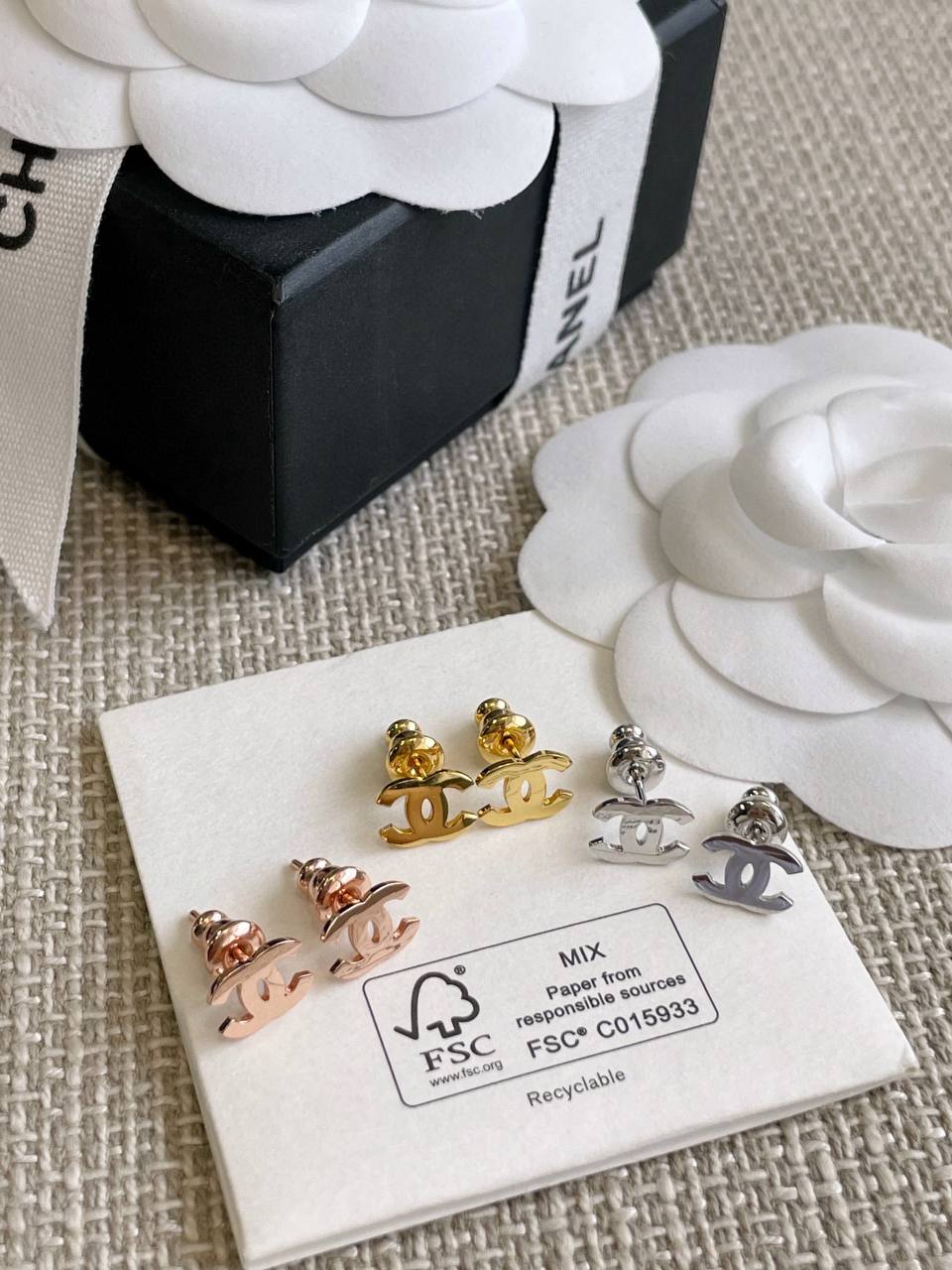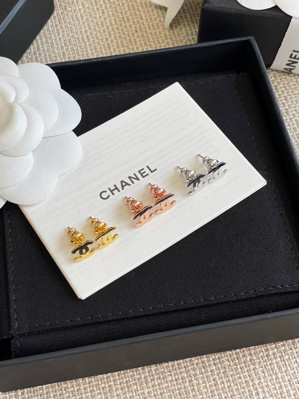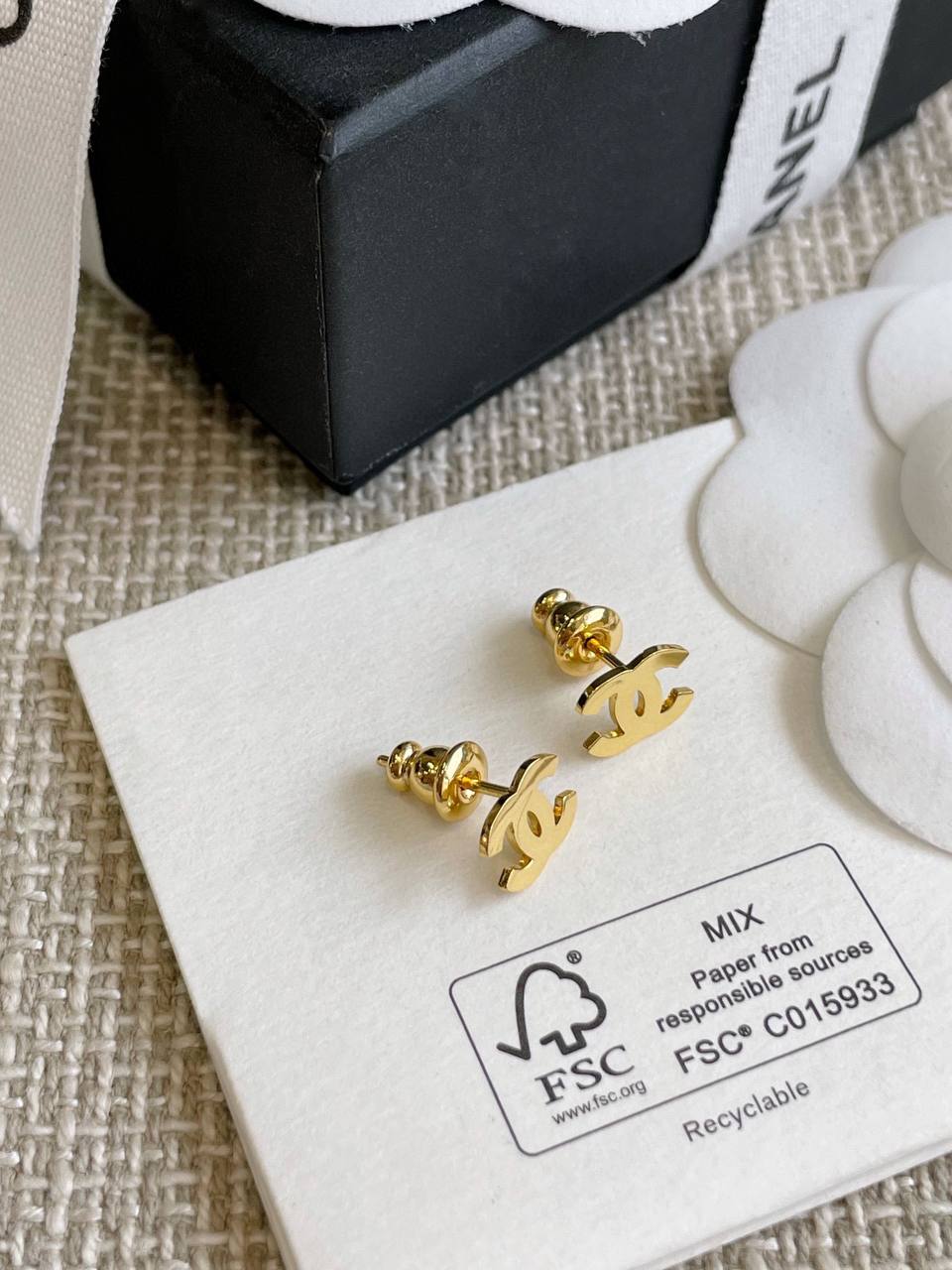 2024春夏 C家光面迷你雙C耳環