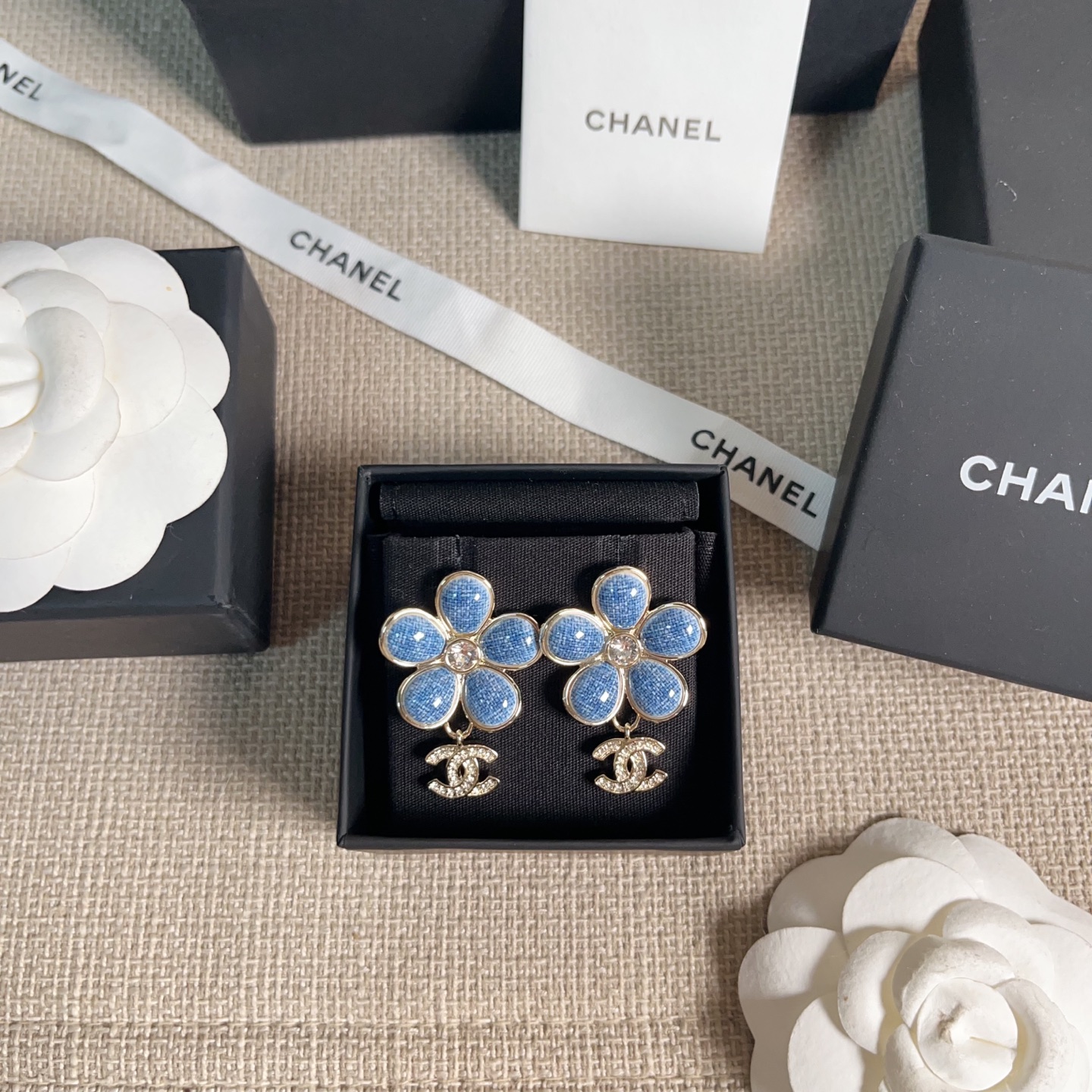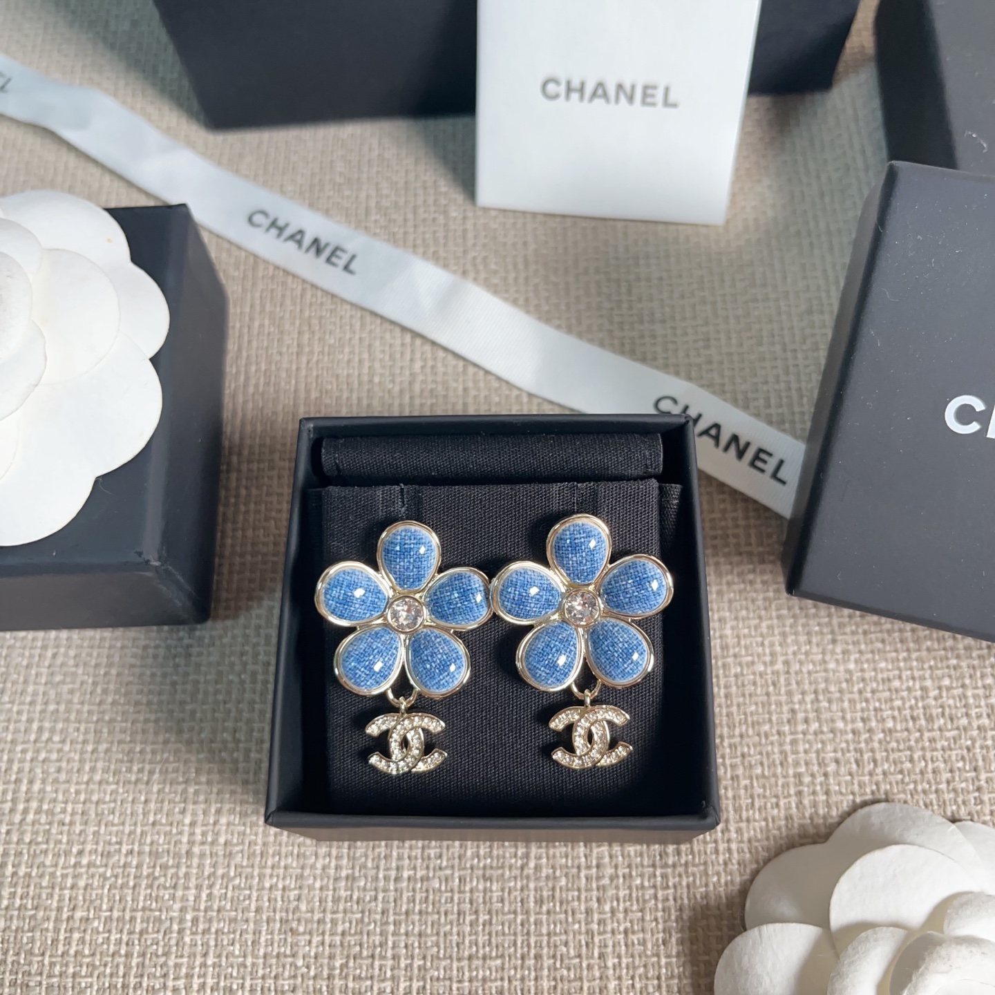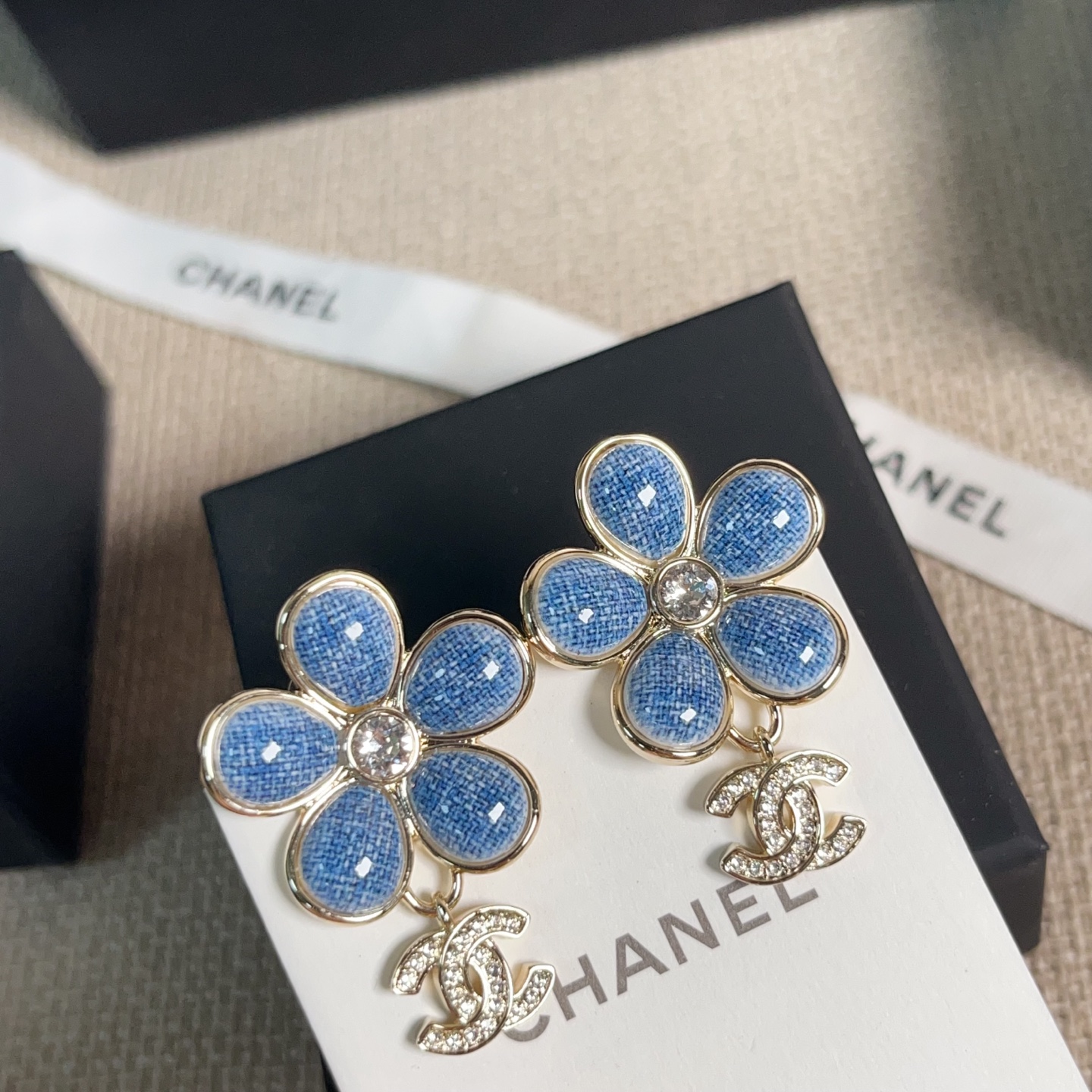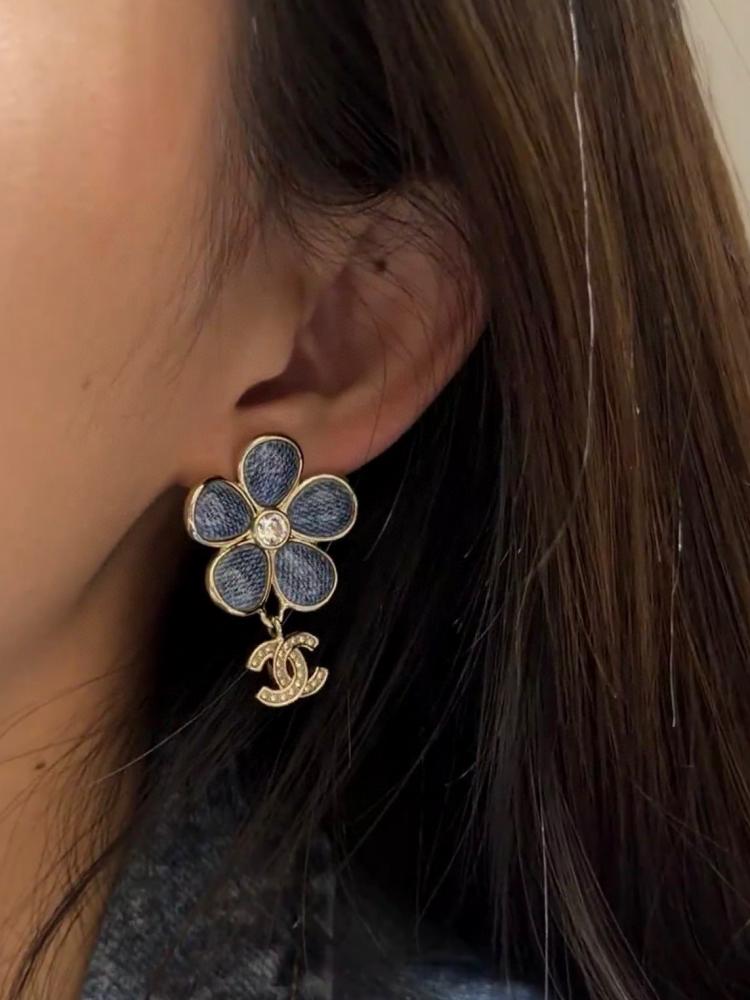 2026早春新品 C家 仿牛仔花朵吊飾C耳環
