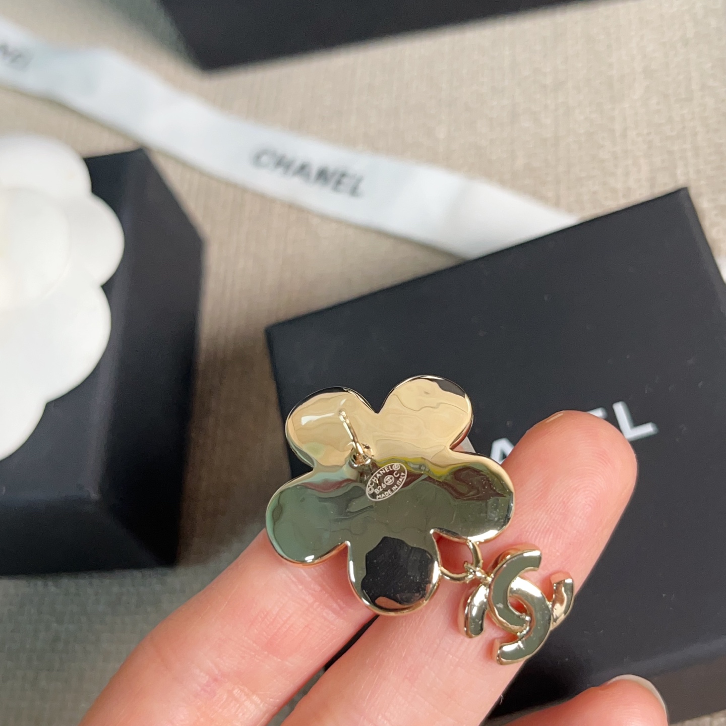 花朵造型替整體多加了一點春天的輕盈感,搭配低調點綴的水晶鑽,讓耳環在光線下自然閃耀,不會過於張揚,卻非常有存在感。