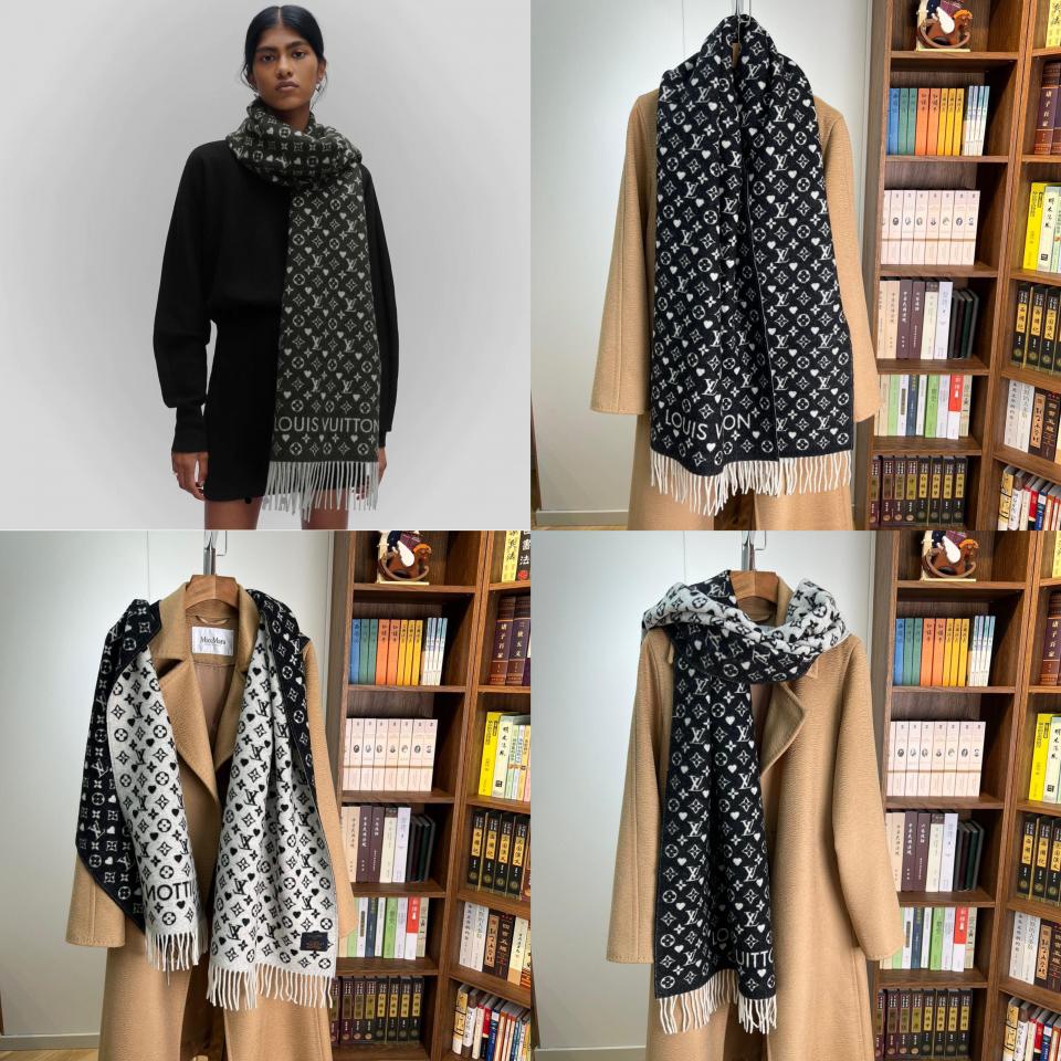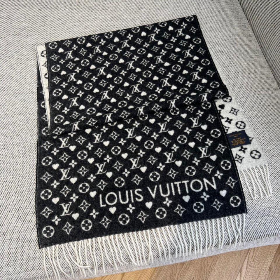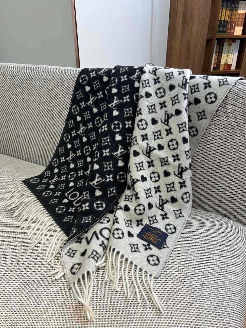 2022秋冬新品 L家滿版老花愛心圖案圍巾(黑色) 羊絨材質保暖舒適