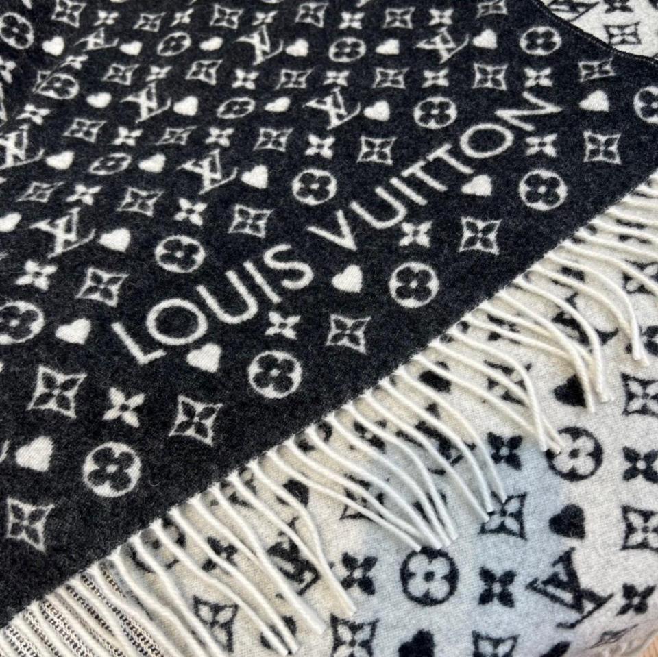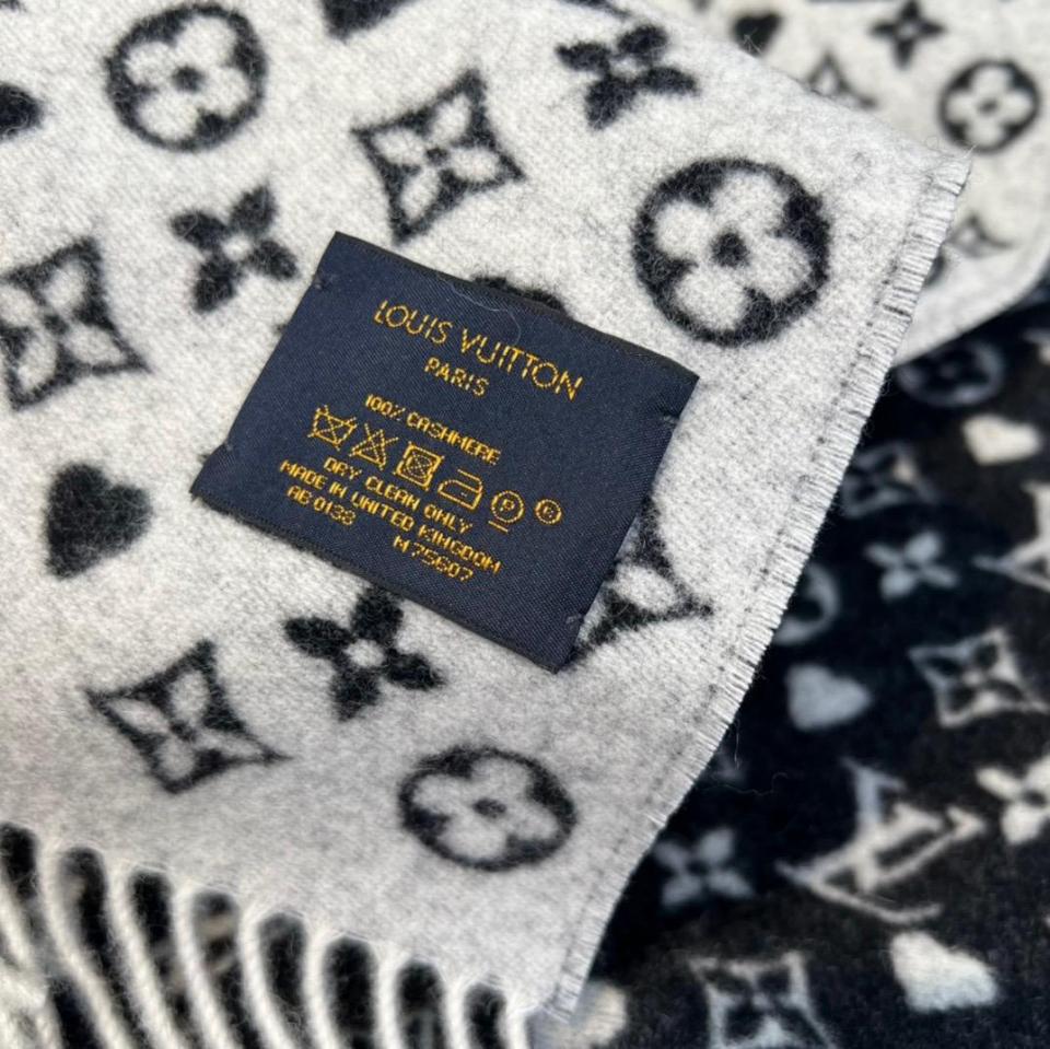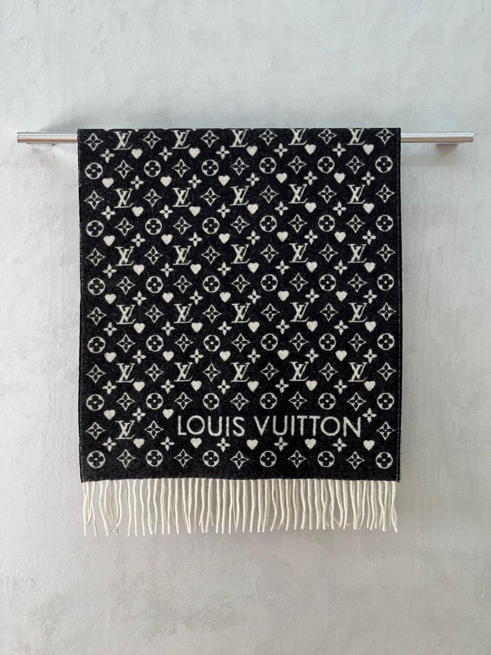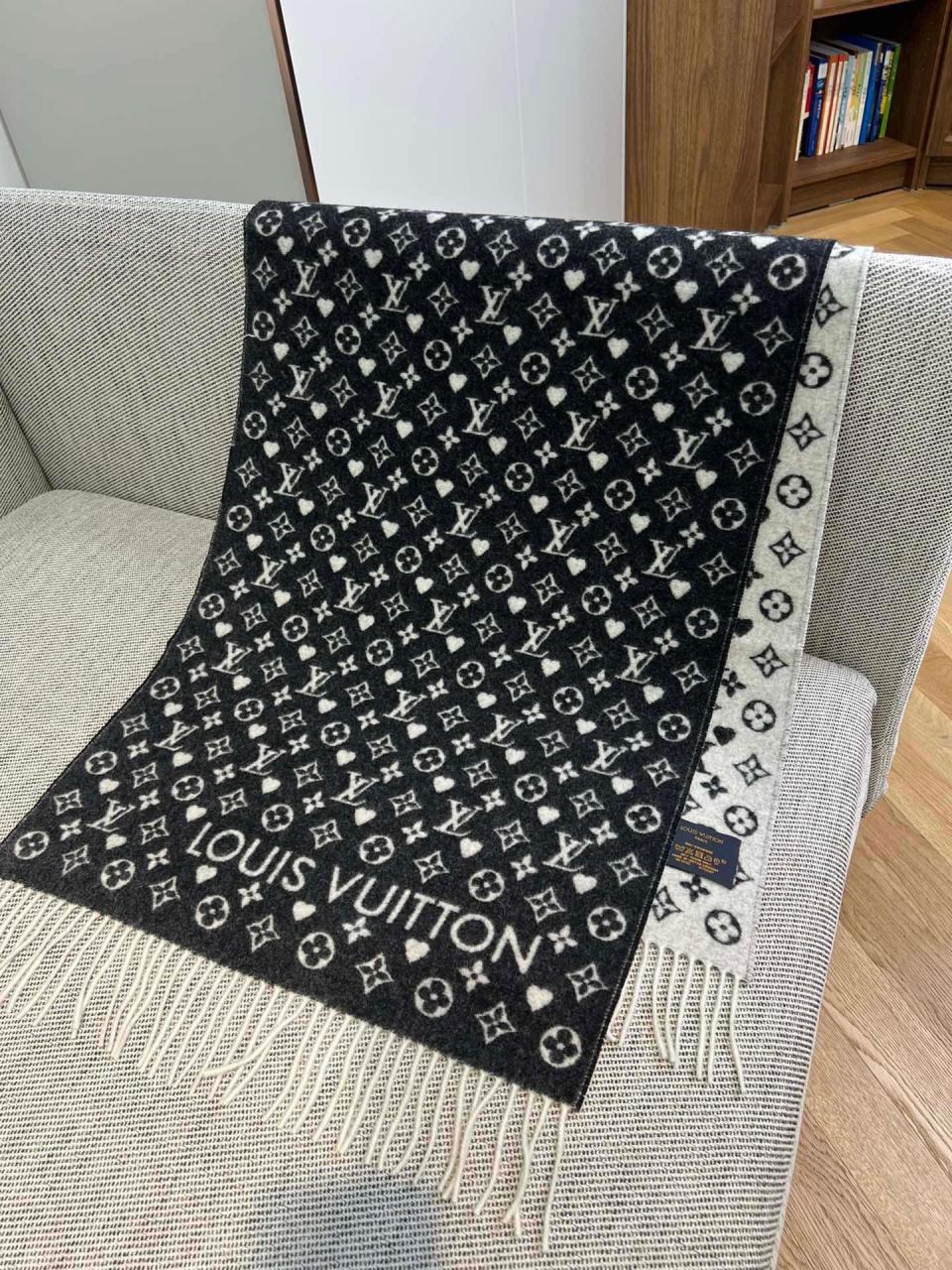 2022秋冬新品 L家滿版老花愛心圖案圍巾(黑色) 羊絨材質保暖舒適