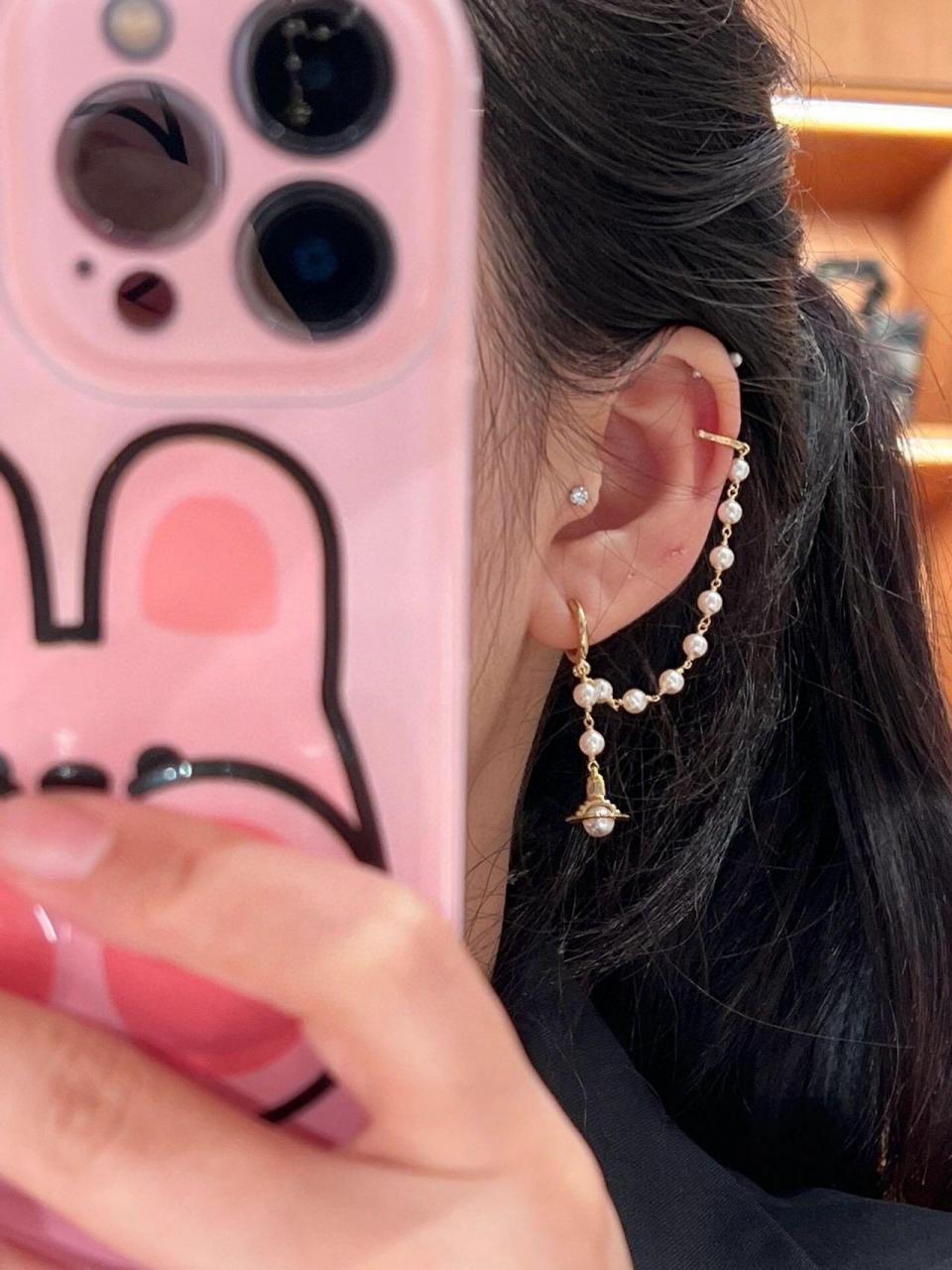VW家珍珠土星耳掛耳環