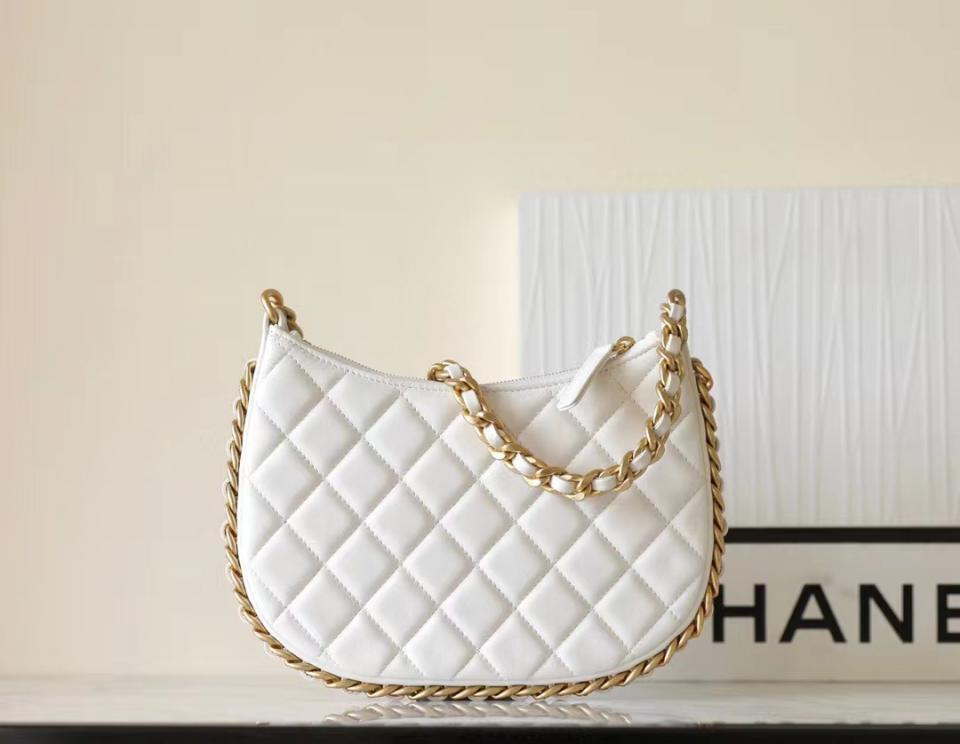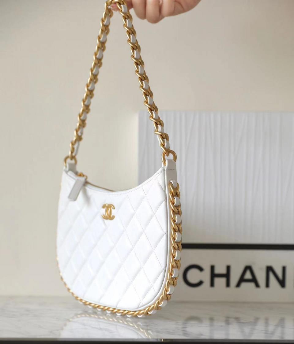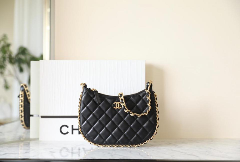 採用小羊皮製作 粗鏈條滾邊 隨性輕盈的包型薄如紙 很復古的氣息