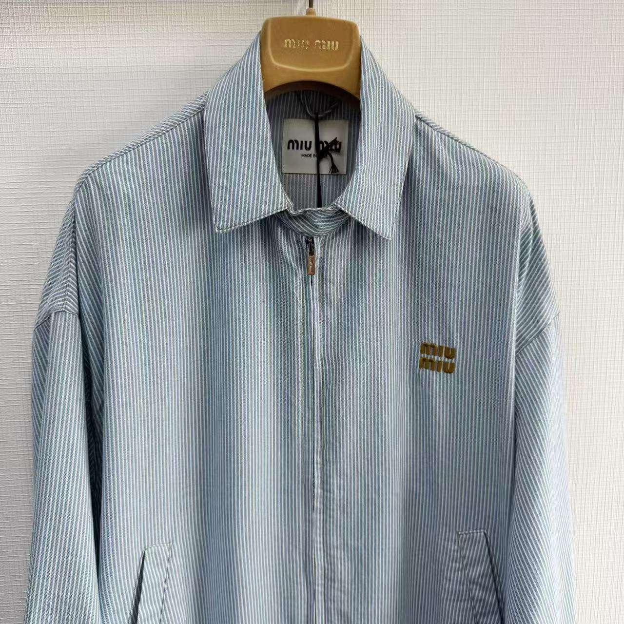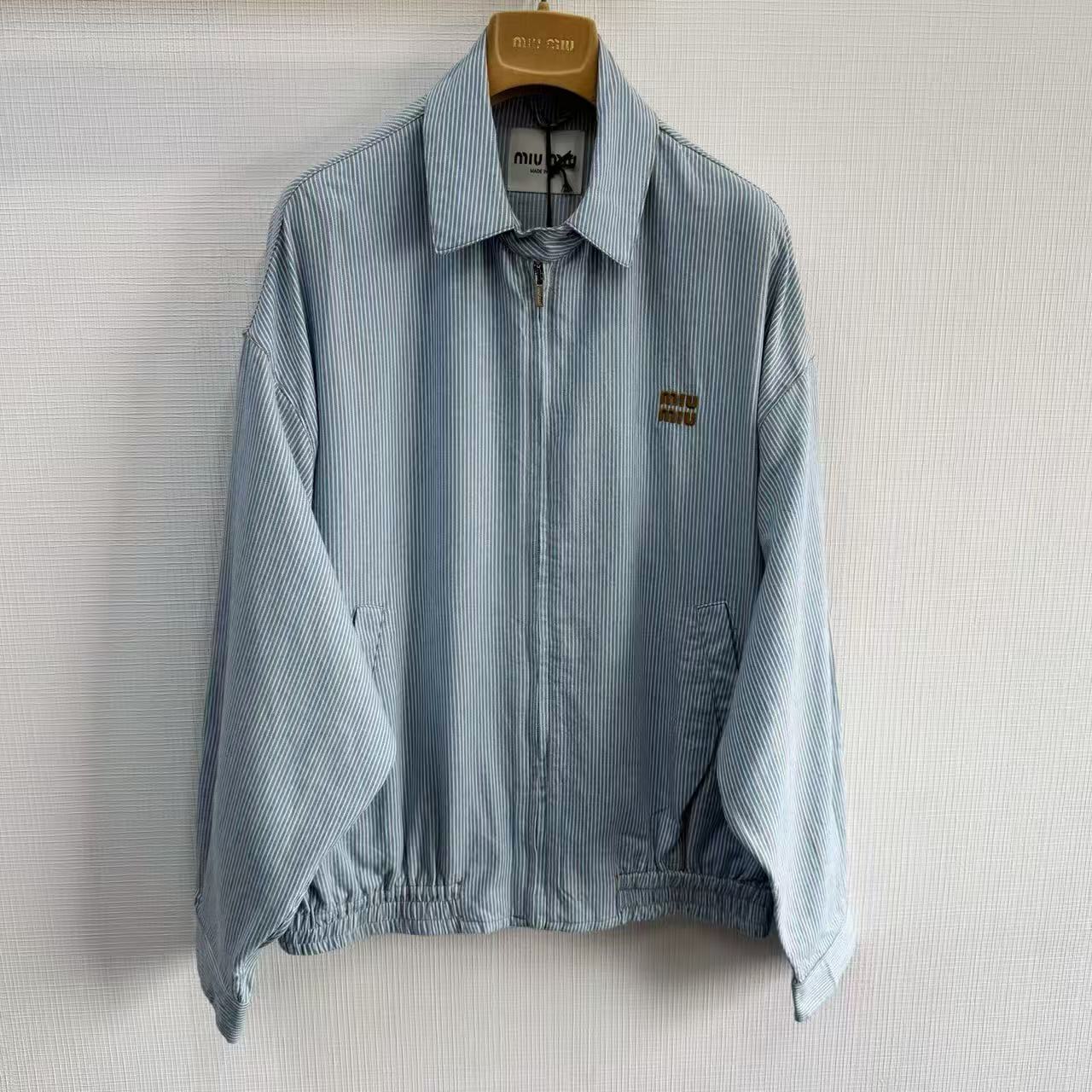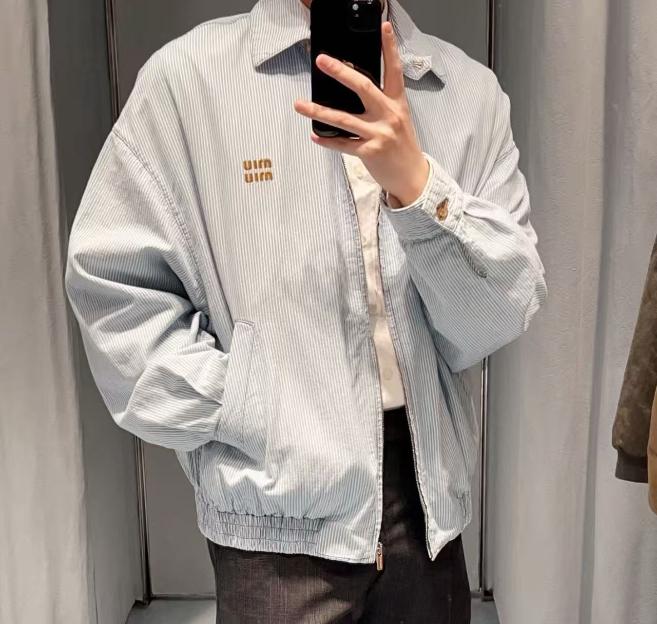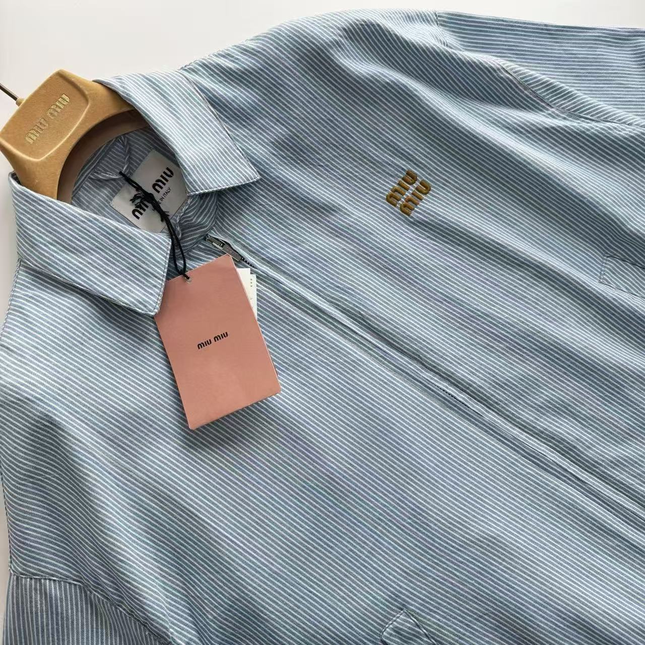 2025早秋新品 Miu家 豎條紋翻領夾克