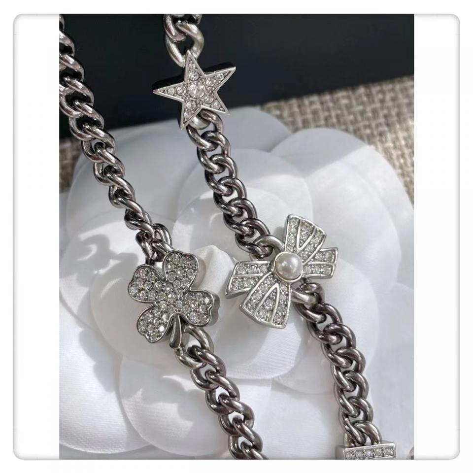 經典元素相結合,有數字5.十字架.香水瓶.蝴蝶結.四葉草.星星以及雙C的設計,上邊顆顆採用施華洛水晶,背面五金都是手工拉絲紋路,每一個配件的工藝都是獨一無二的!電鍍色也是非常的獨特,灰銀色得五金電鍍不是銀色的,也不是槍黑色,而是非常特別的貴金屬黑釕電鍍,所以成本特別的高昂!