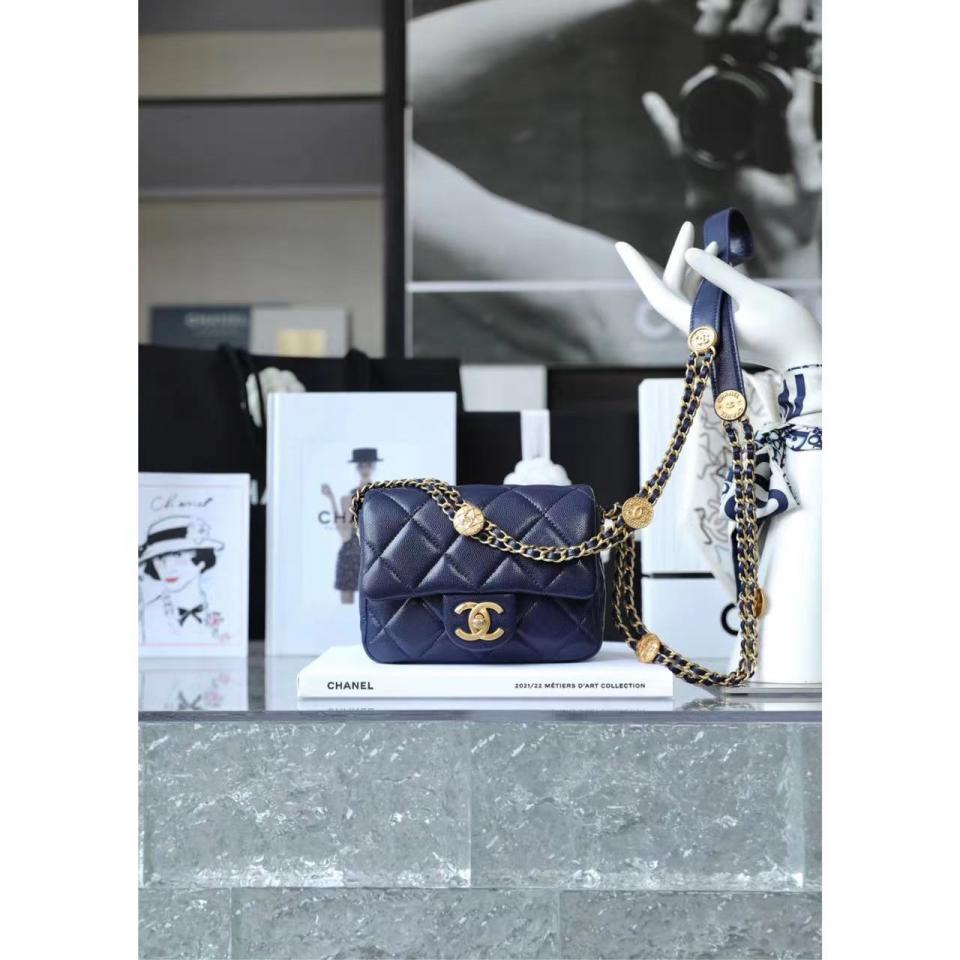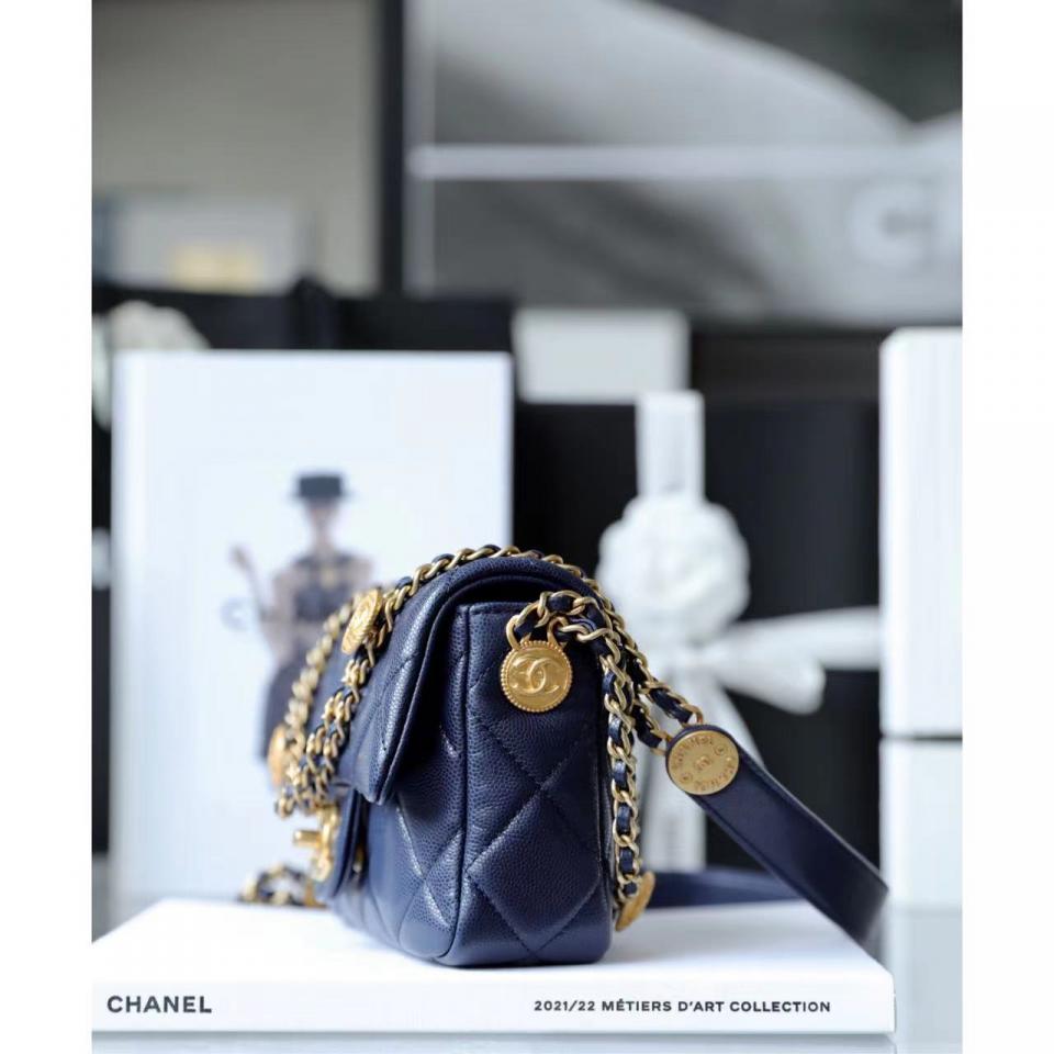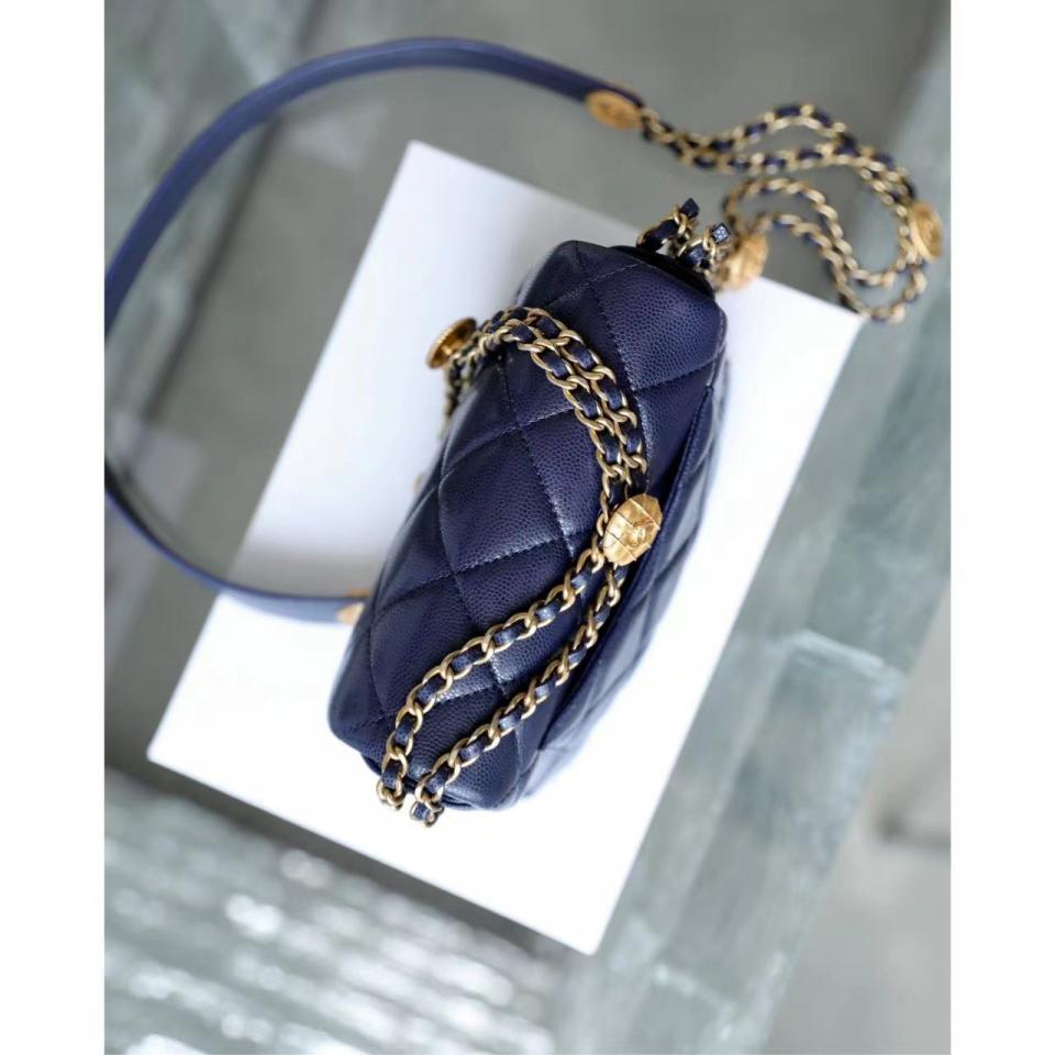 C家徽章金幣鏈條口蓋包(海軍藍18cm)