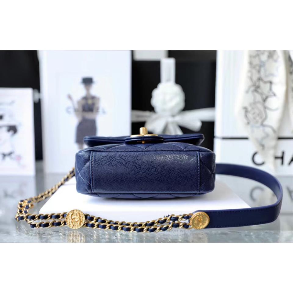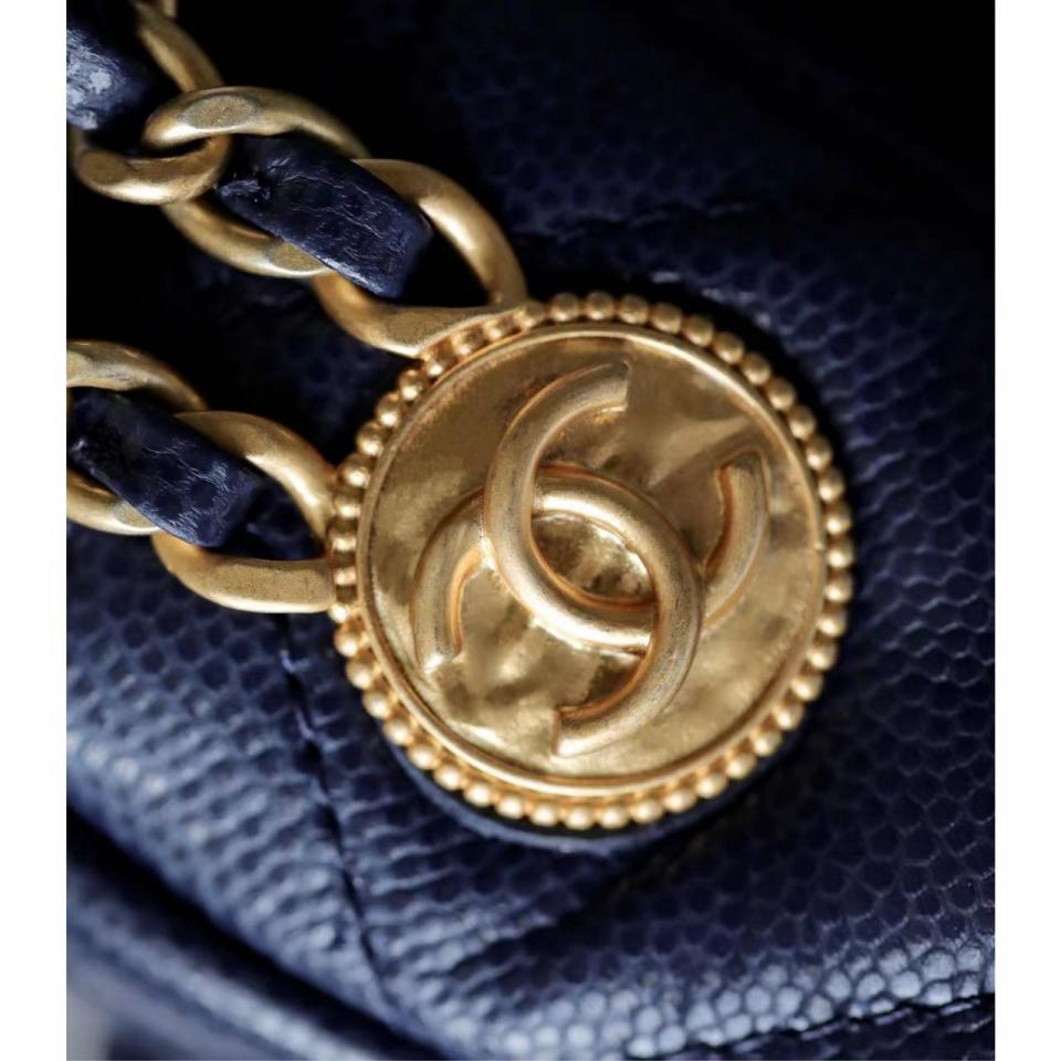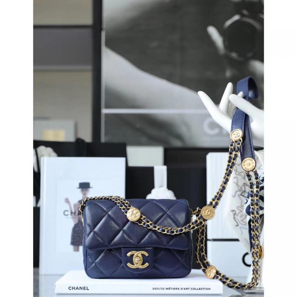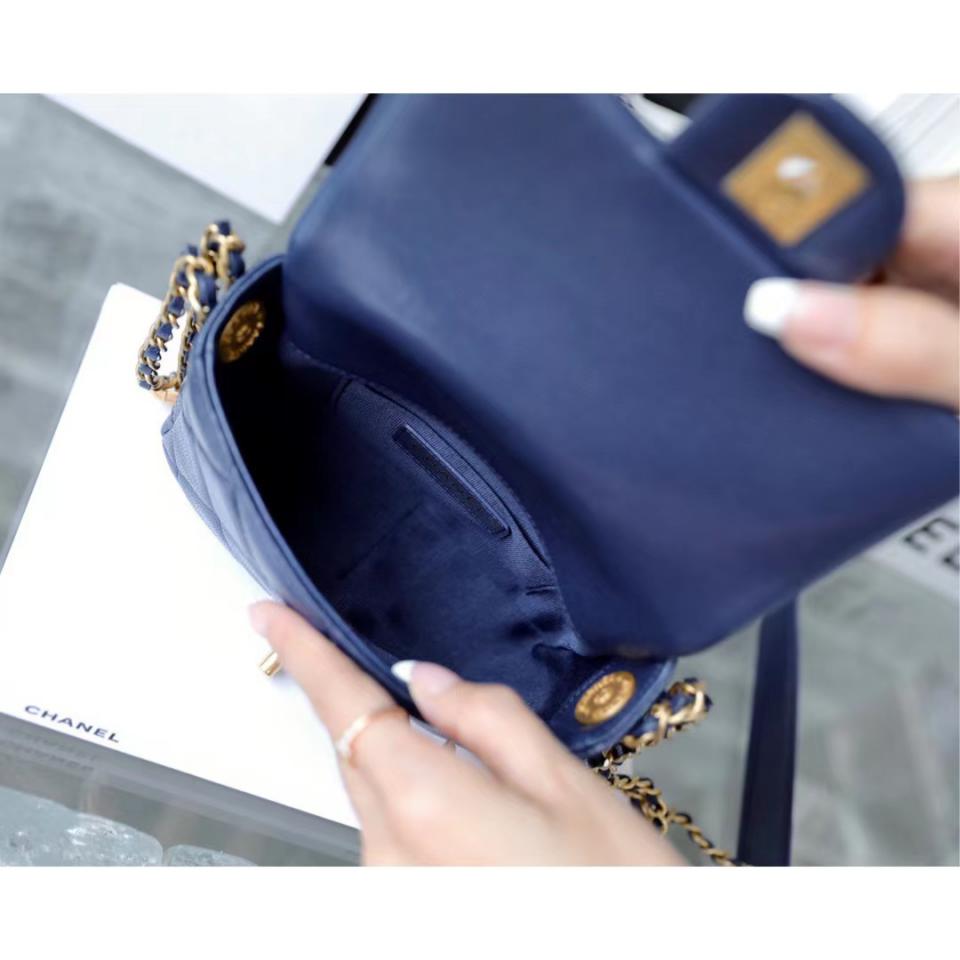 C家徽章金幣鏈條口蓋包(海軍藍18cm)