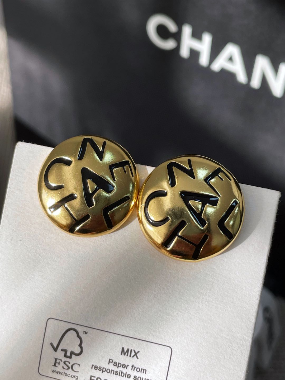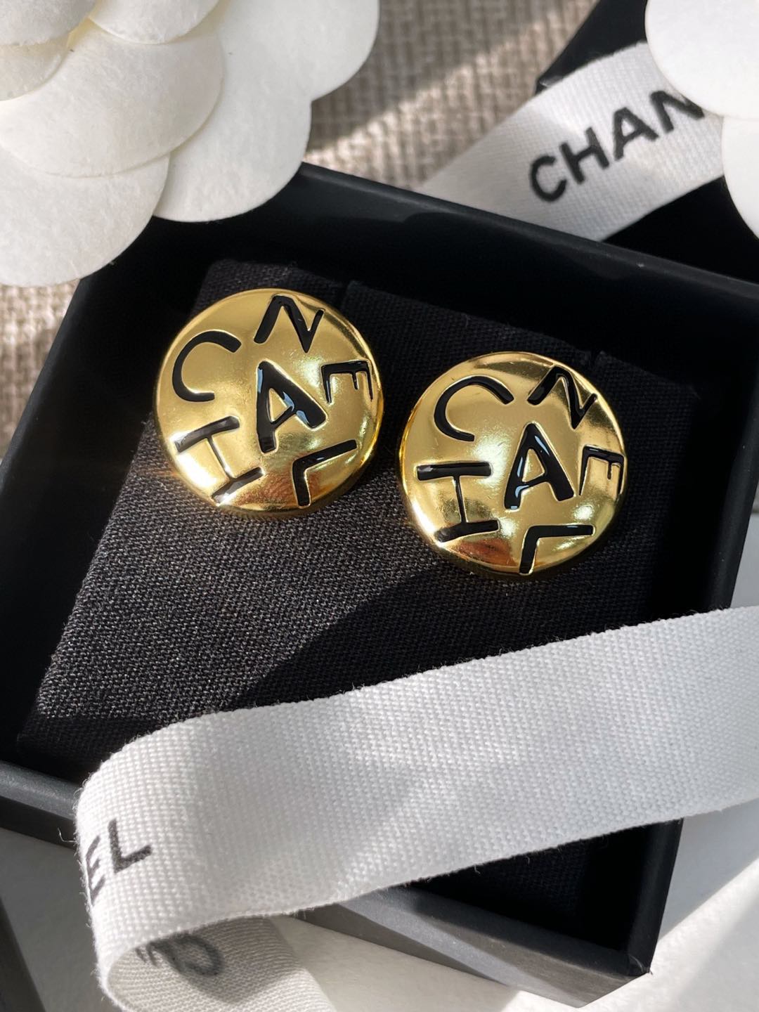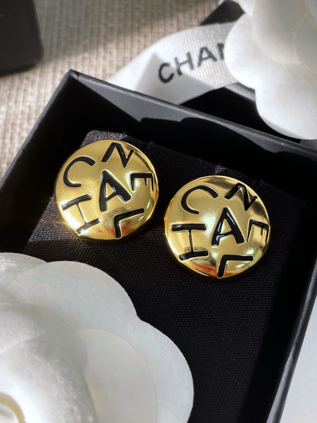 C家字母黑白琺瑯耳環