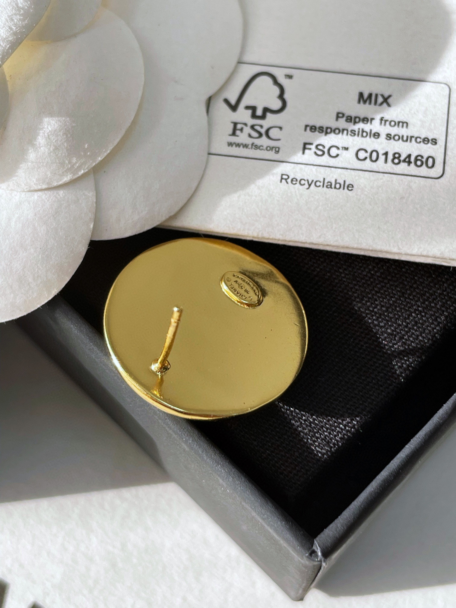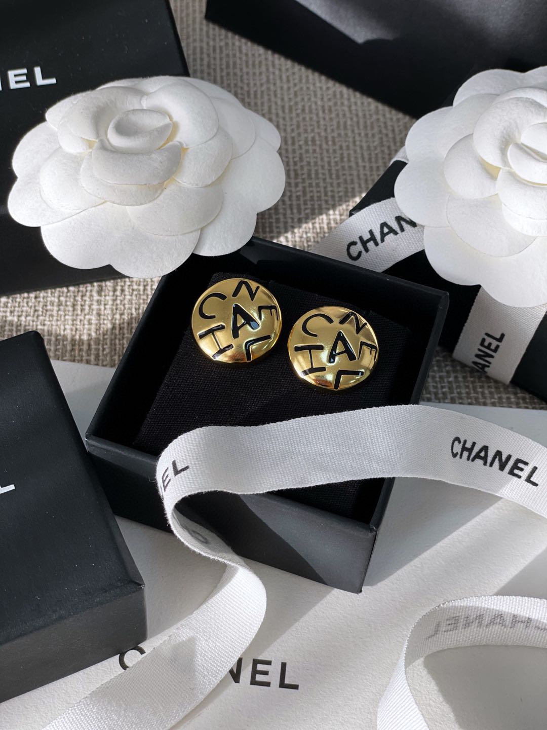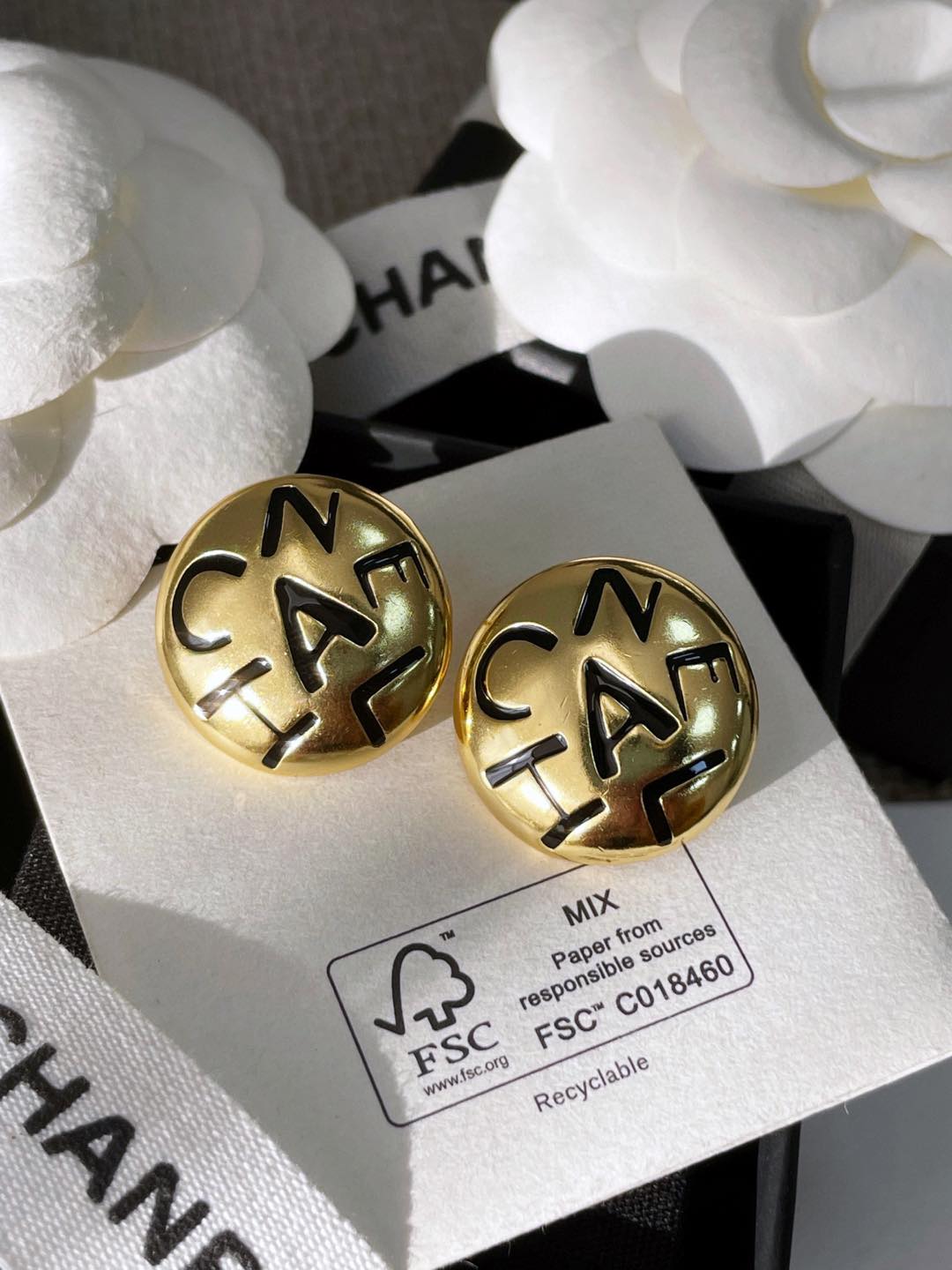 C家字母黑白琺瑯耳環