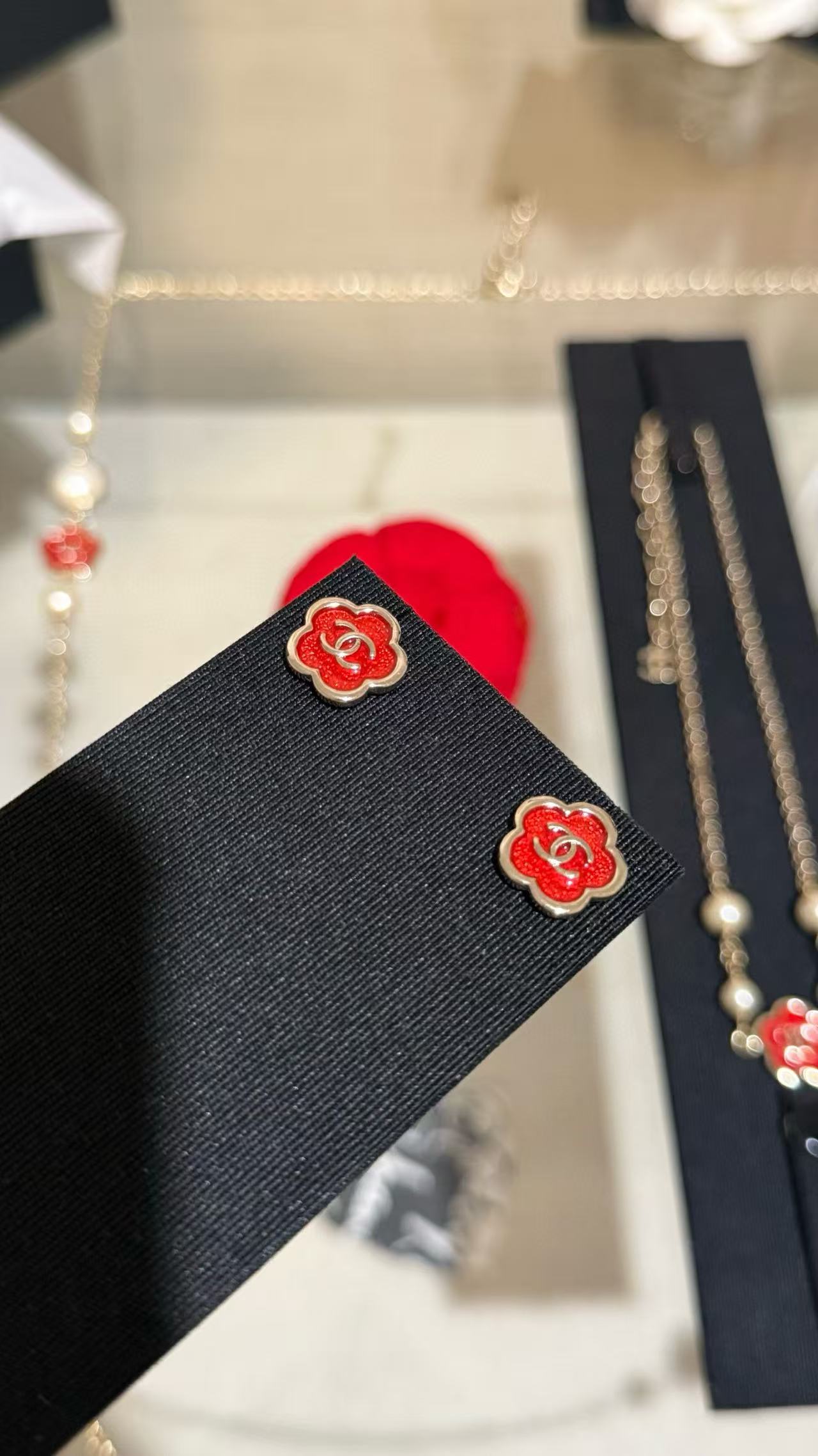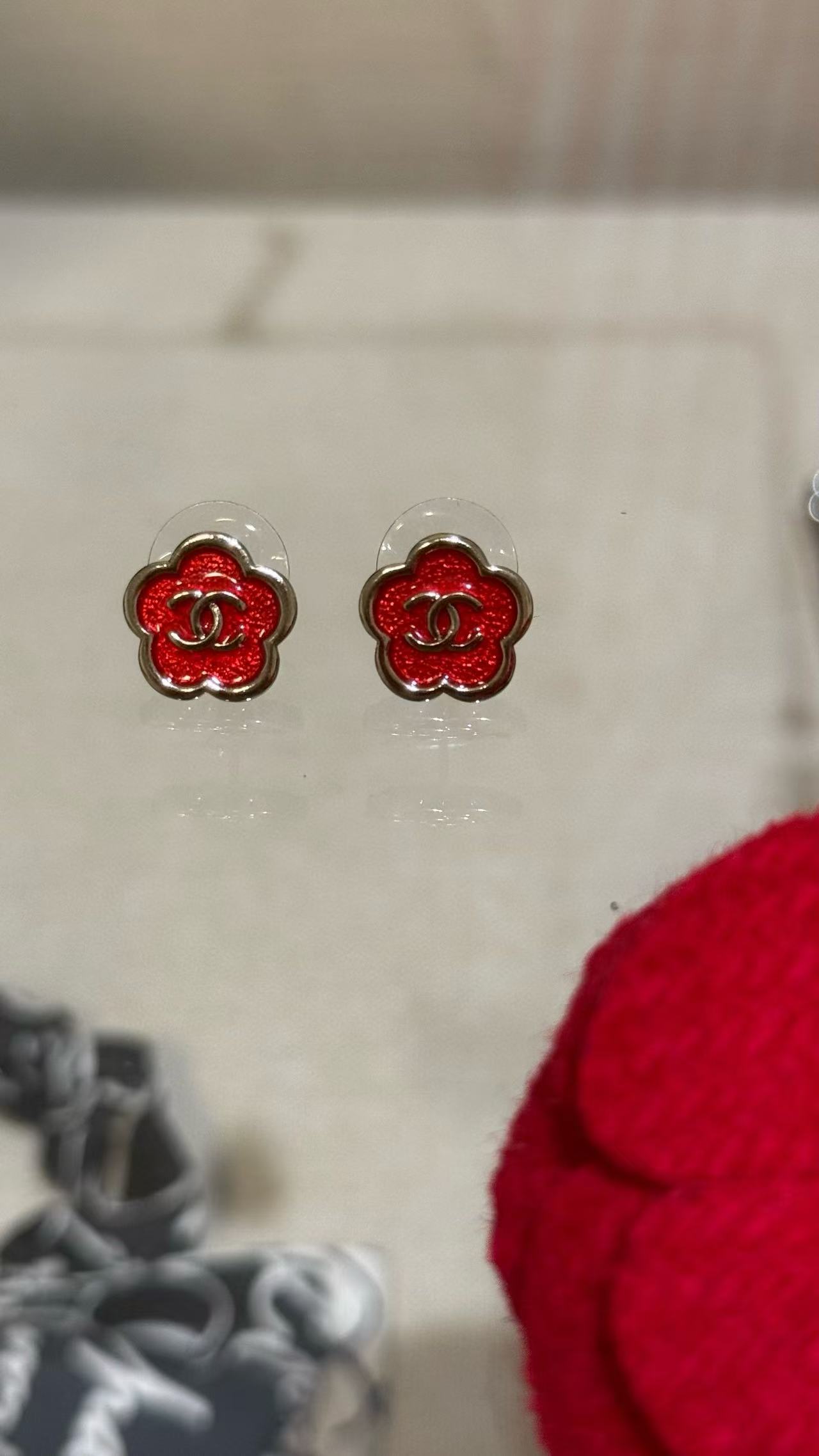 2025早秋 C家 红色珐琅滴釉山茶花耳環