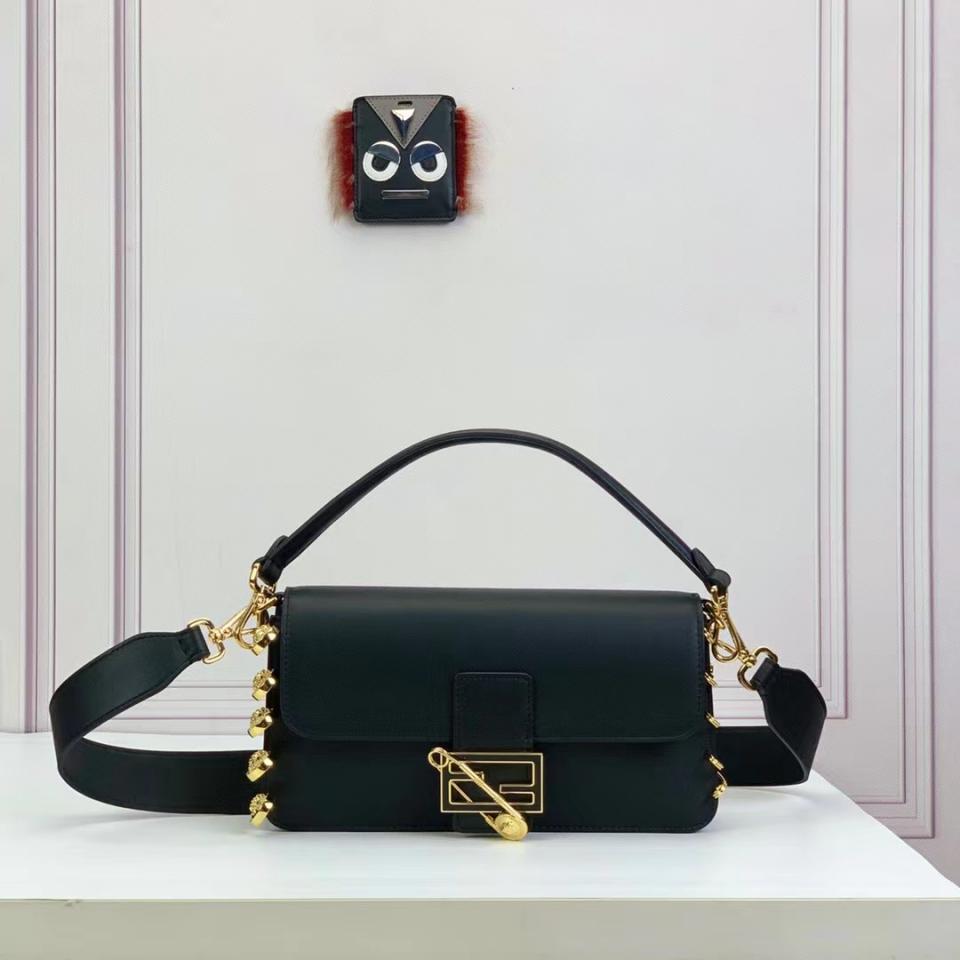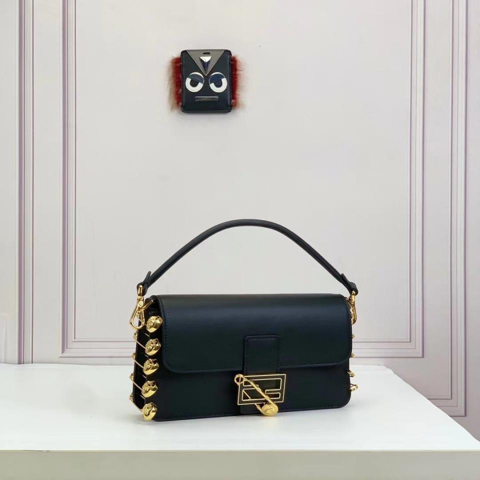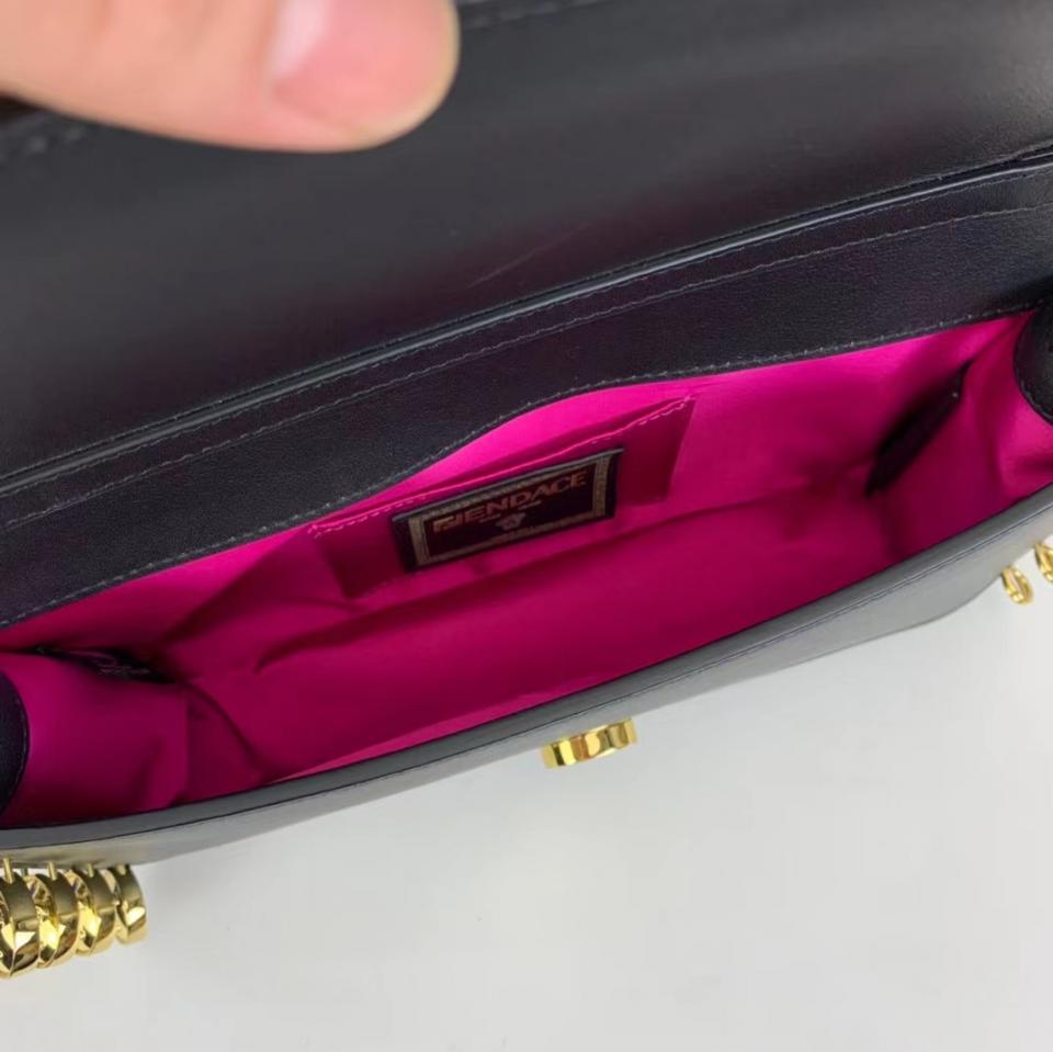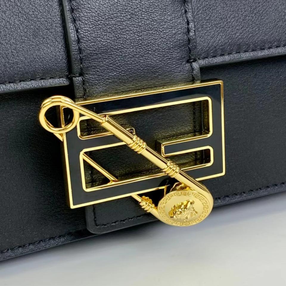 2022春夏新品 F X V聯名系列Baguette方形手袋(黑色) 黑色光滑皮革