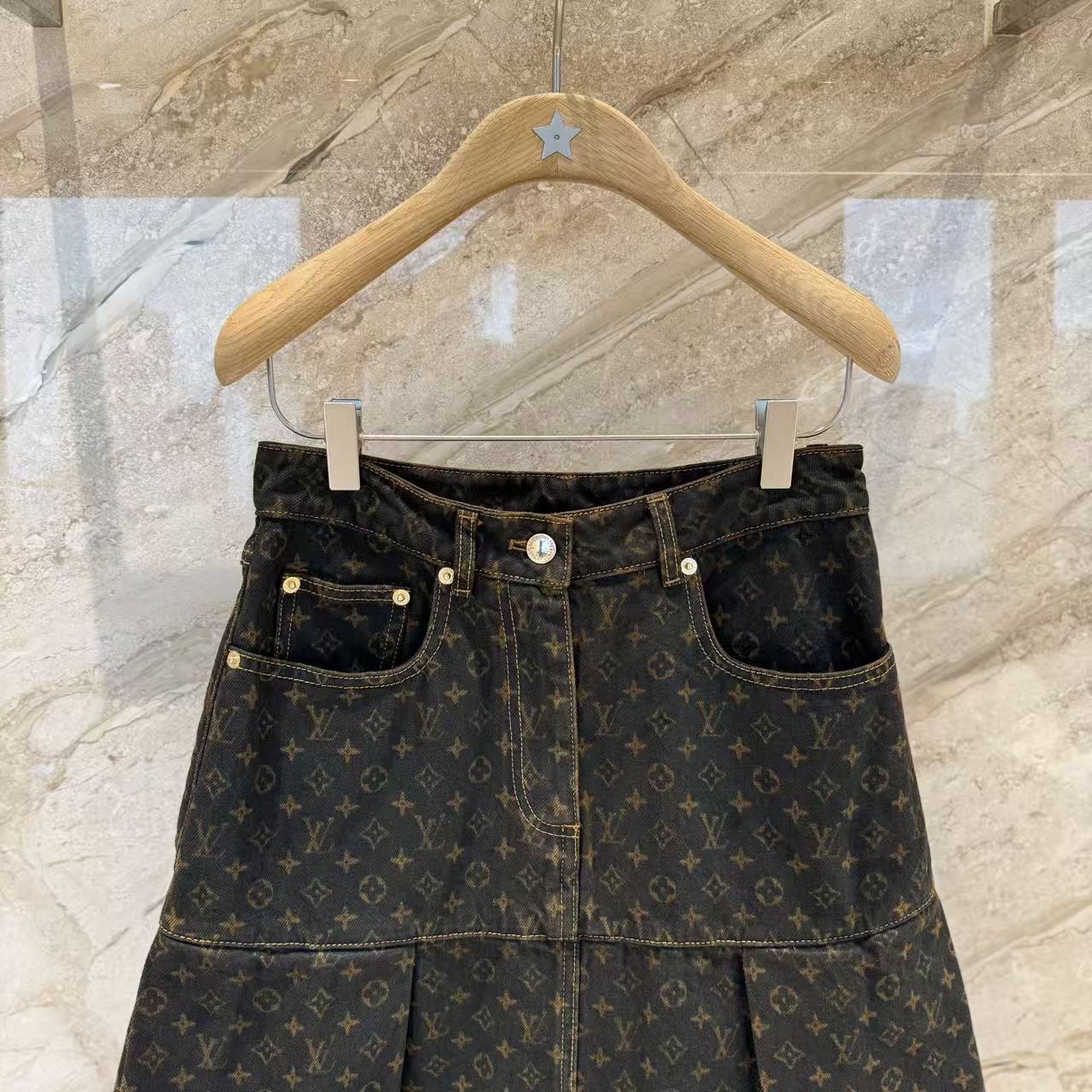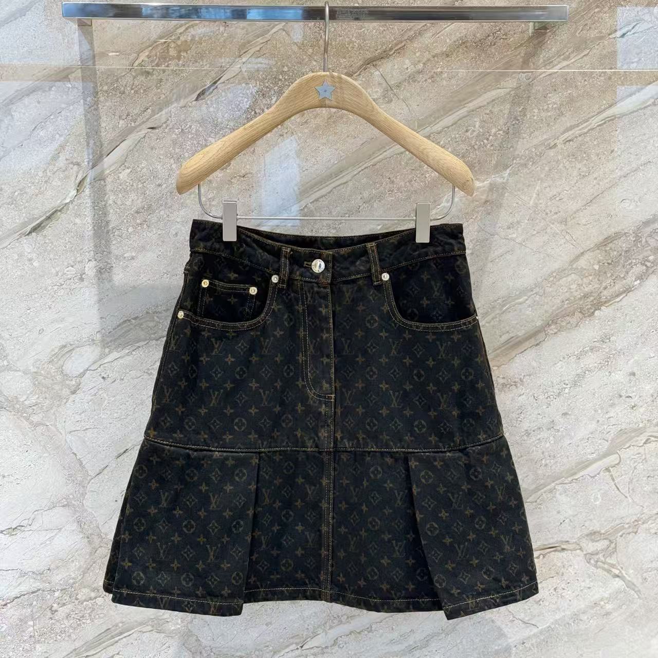 秋冬重磅特惠福利-L家 Monogram牛仔百褶半裙