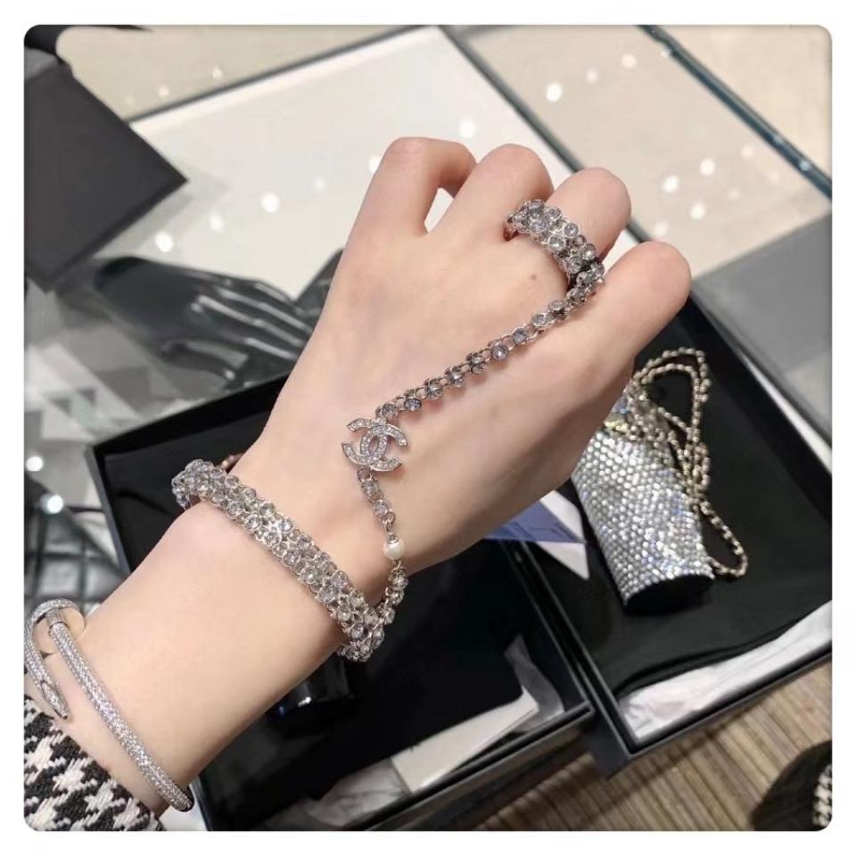 手鐲內直徑5.5CM,開口設計!最美最讚手鐲戒指一體鑽鏈,非常重工,顆顆施華洛世奇水晶珍珠,做工細節細膩精緻被美到了,超好看的滿眼的Blingbling超閃超有型!