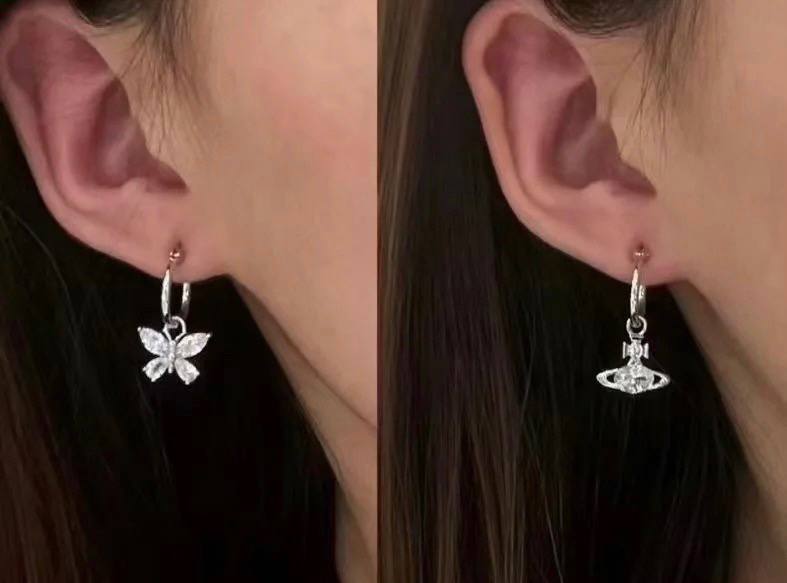 《尺寸》耳環高2.4-2.5CM,蝴蝶寬約1.4CM,土星寬約1.4CM
