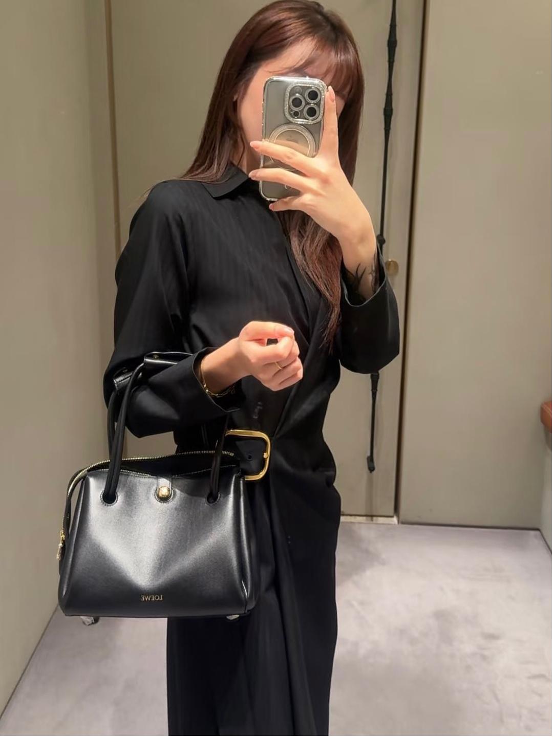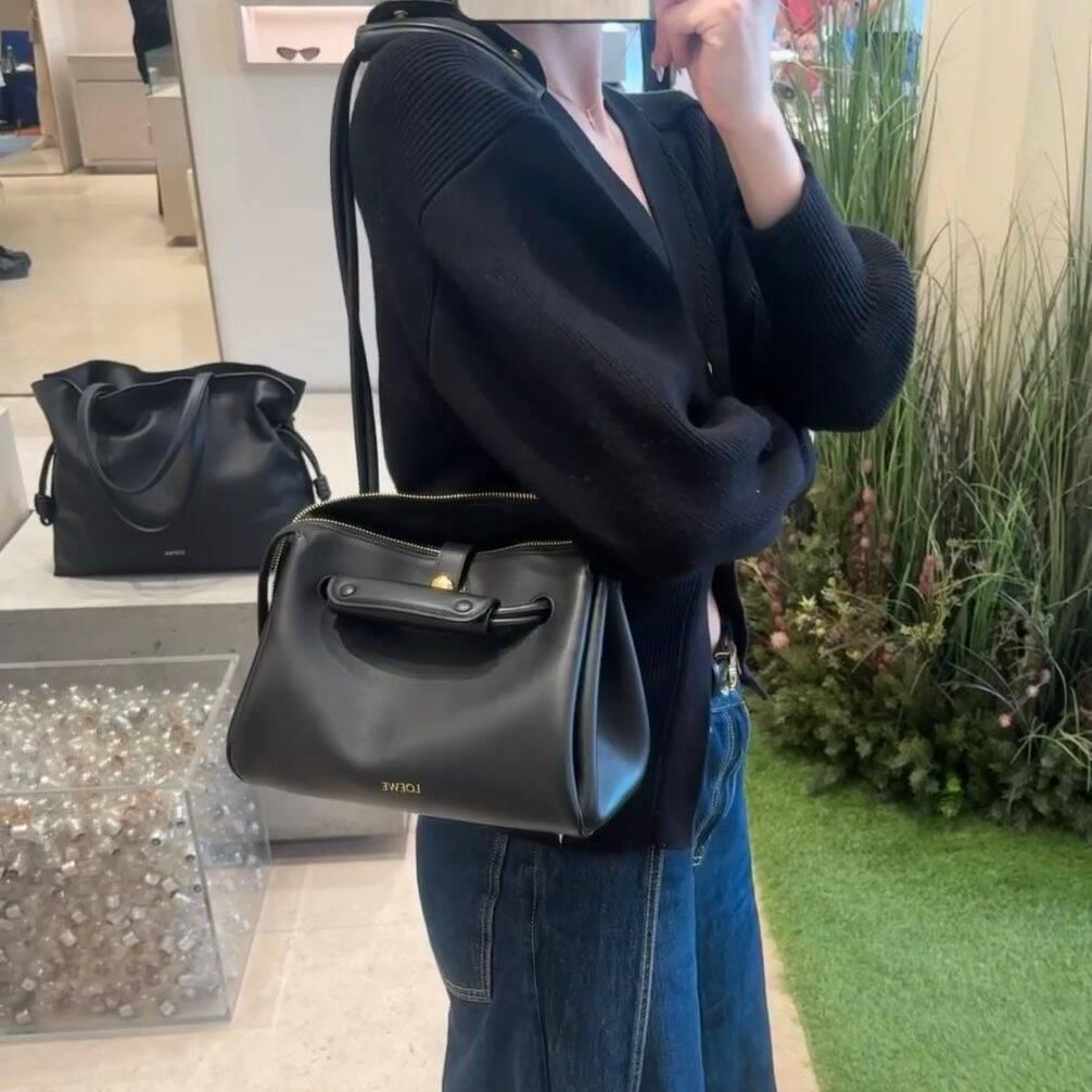 這款馬德里手袋延續品牌一貫的立體設計語言,以俐落的梯形輪廓結合寬鬆襪衬結構,視覺上極具建築感,實際容量也非常充足,實用性與時髦感兼具。