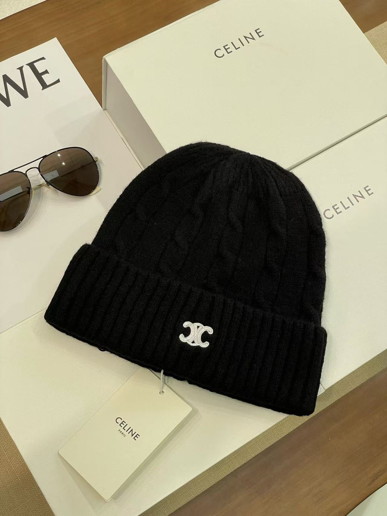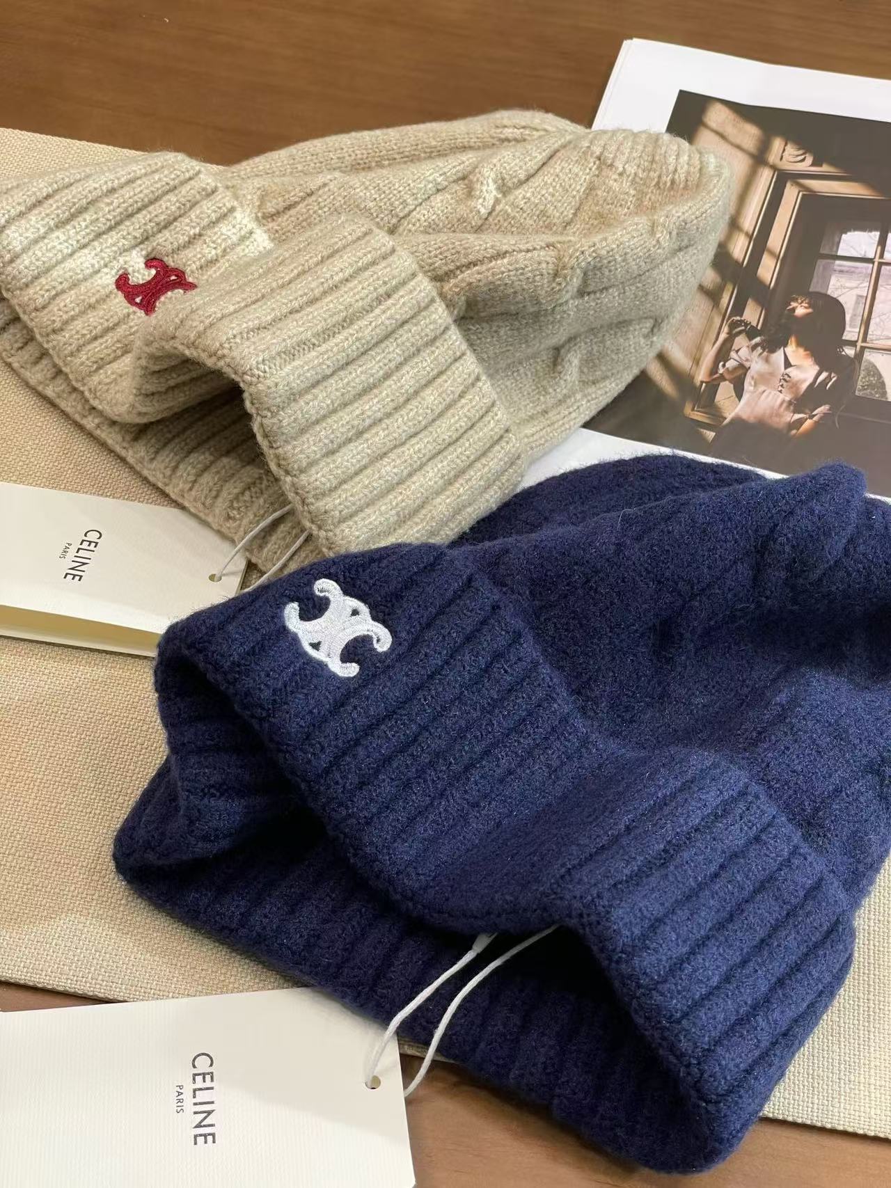 2024秋冬 CE家凱旋門刺繡針織毛帽 男女同款