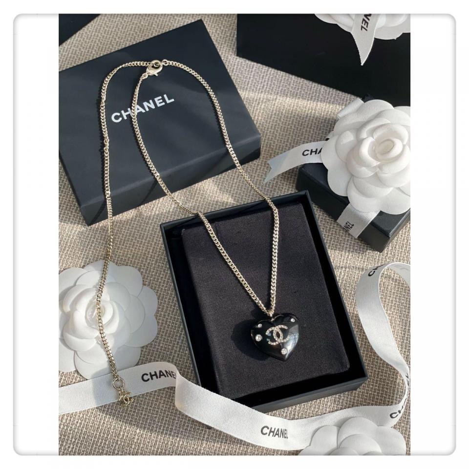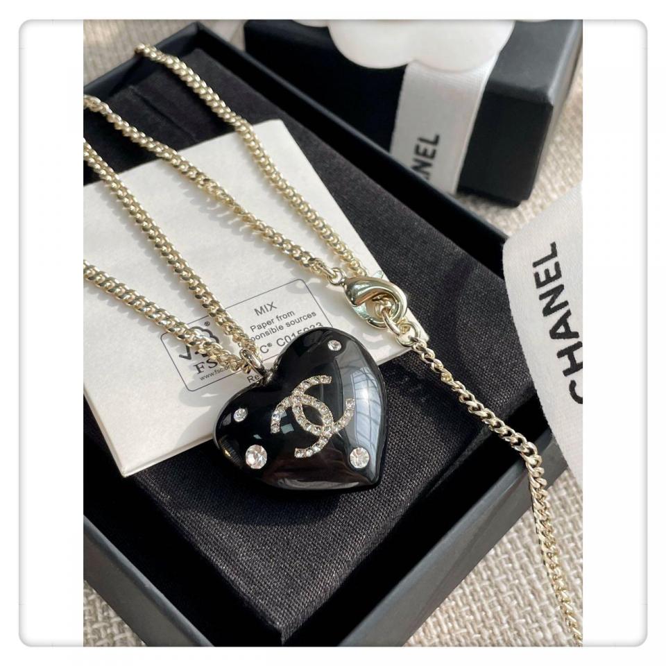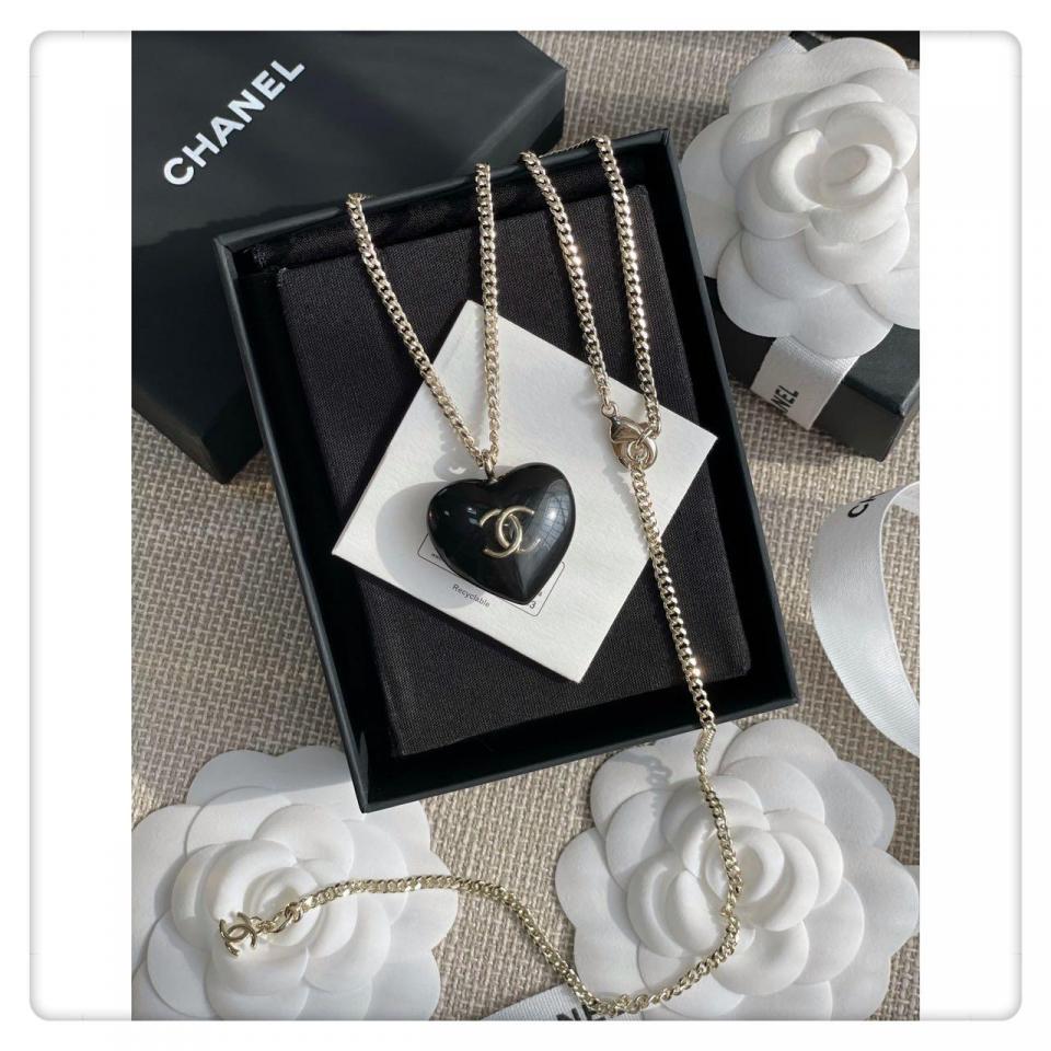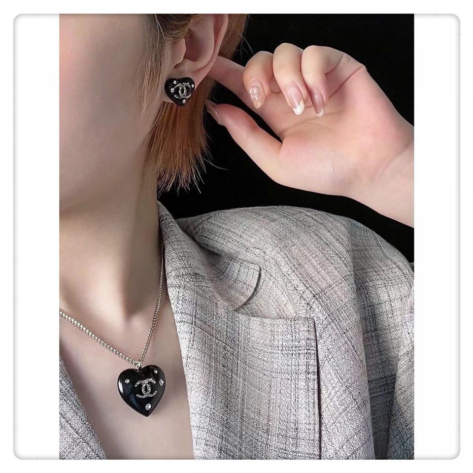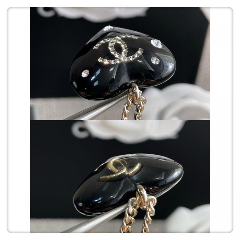 經典黑的愛心琺琅工藝,且愛心是有弧度的,重點是雙C是固定在透明的壓克力裏邊,一面有鑽一面無鑽兩邊都可以配戴,整體視覺效果非常的清新且有欣賞價值,給人特別柔美的視覺效果!