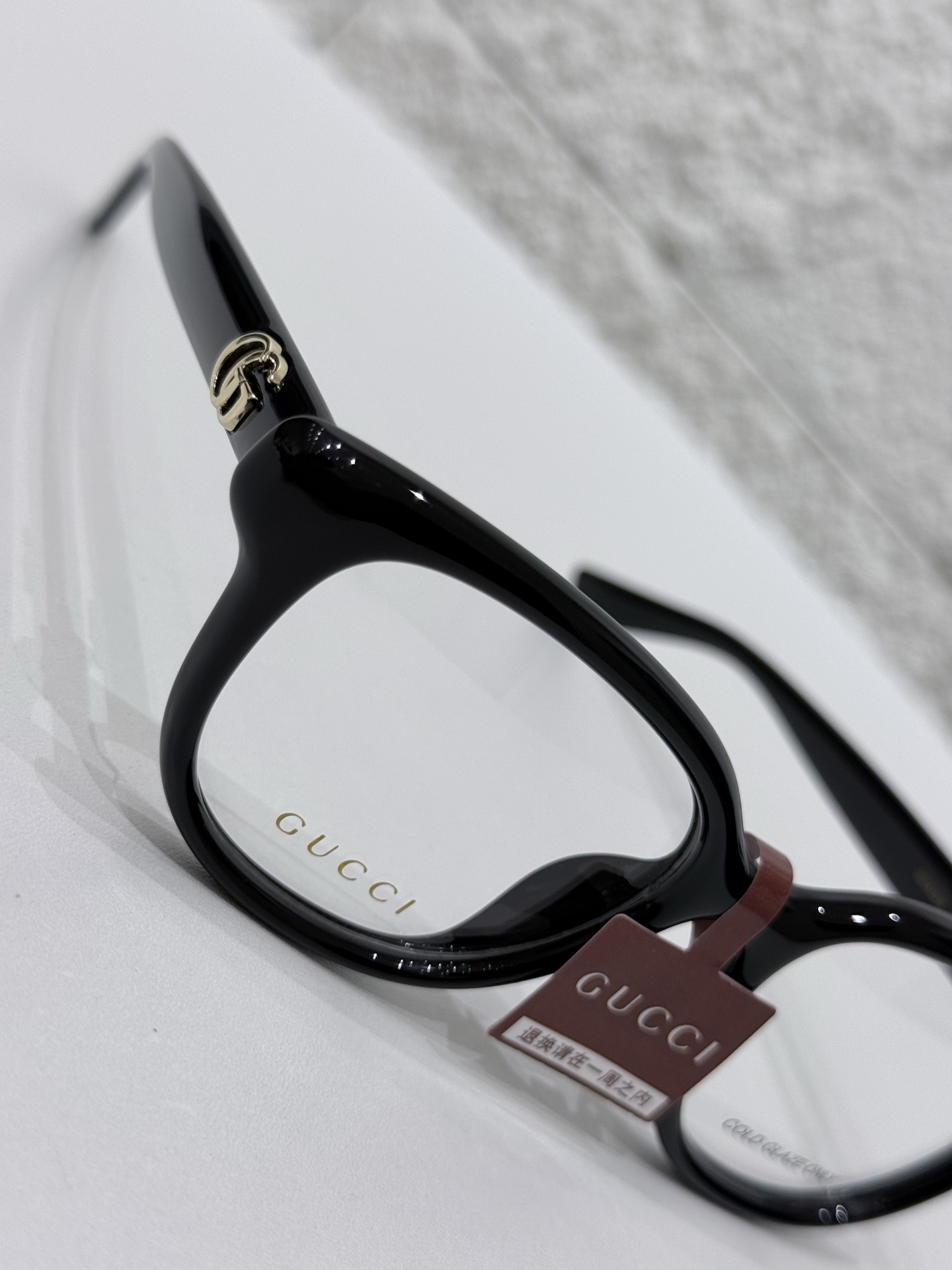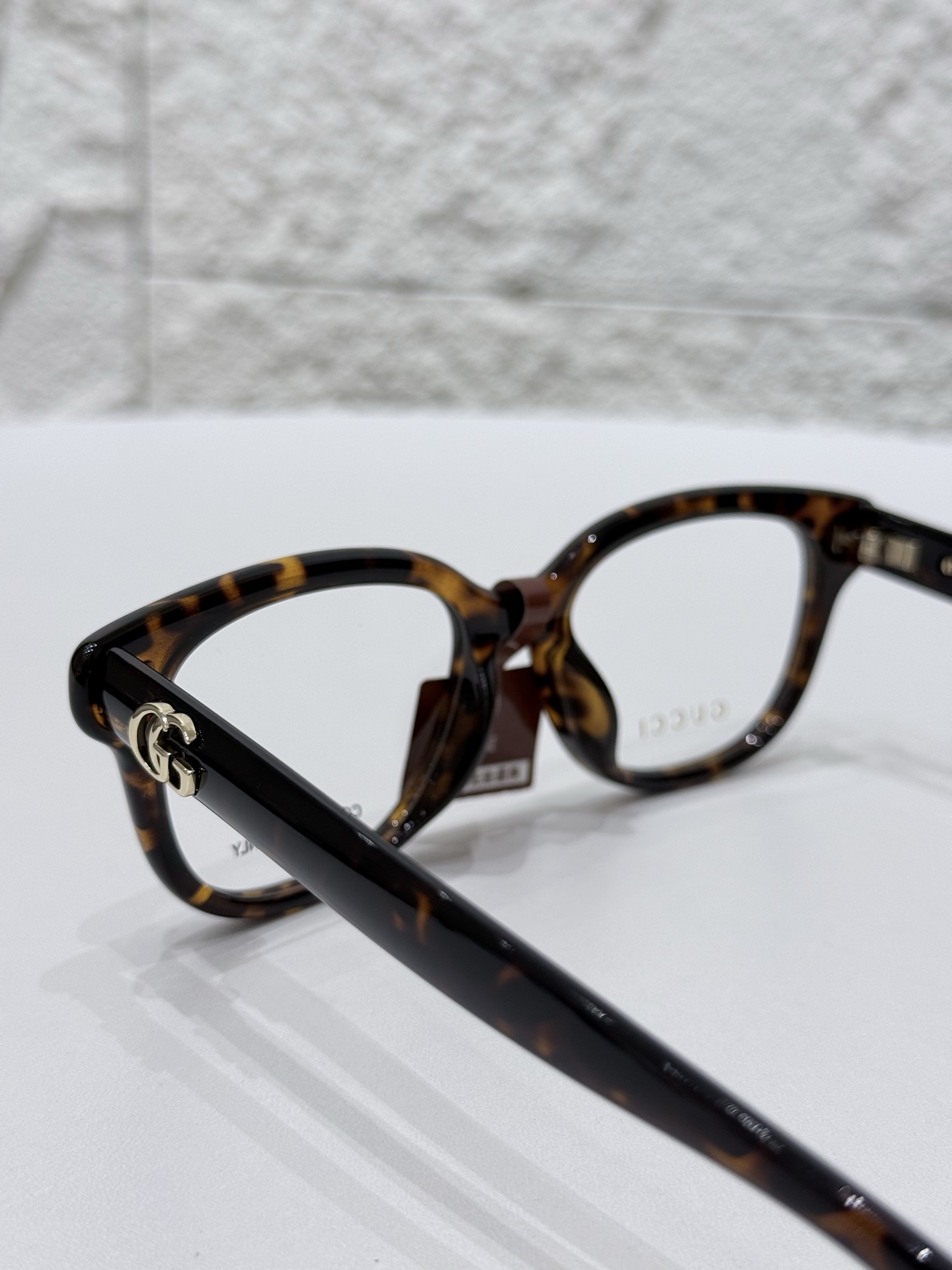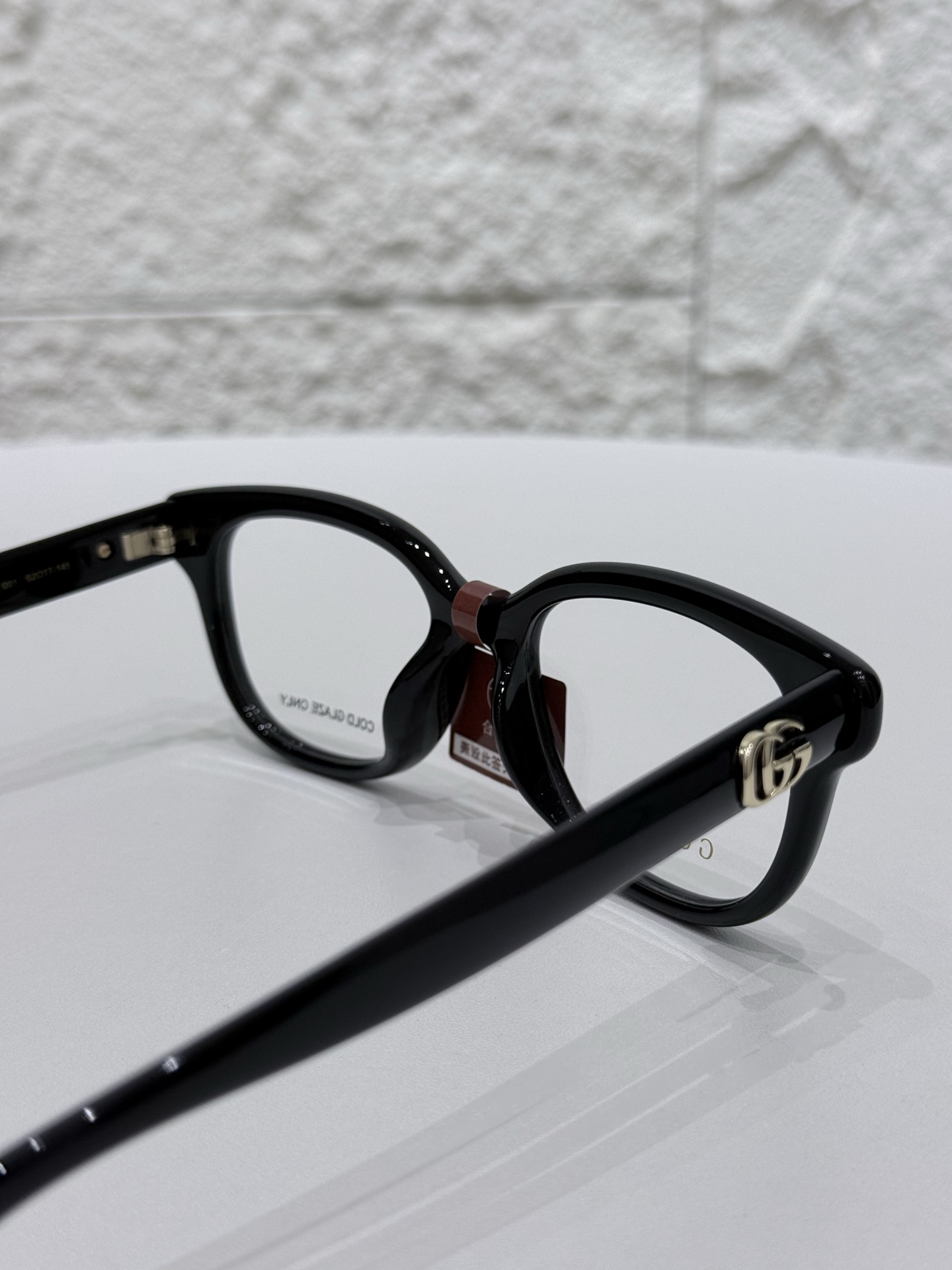 鏡腿側邊點綴立體 GG 經典標誌,透過細緻工藝呈現,不會過度浮誇,但辨識度剛剛好,是那種懂的人一眼就懂的精緻細節。