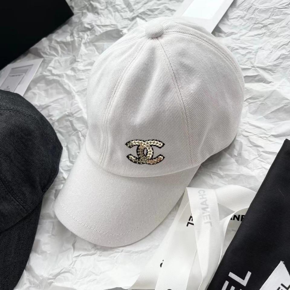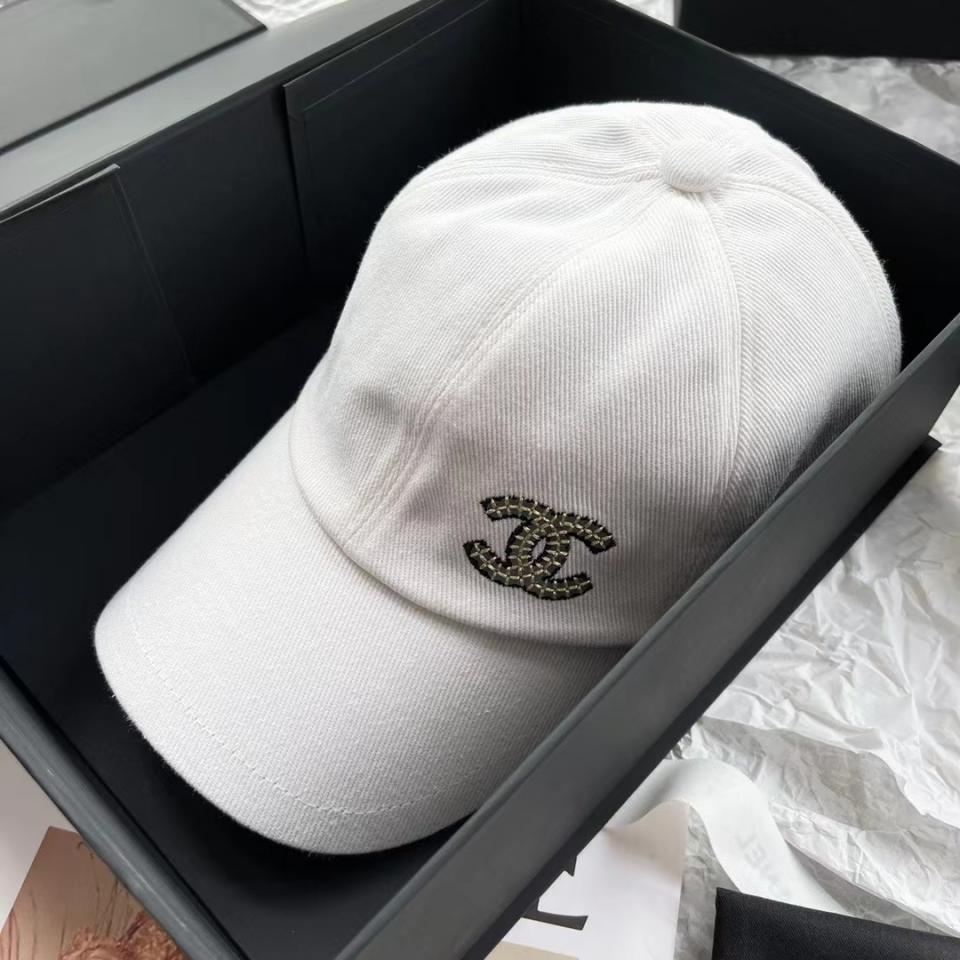 2022春夏新品 最新配色 白色牛仔雙C珠片棒球帽 上身氣質女神款