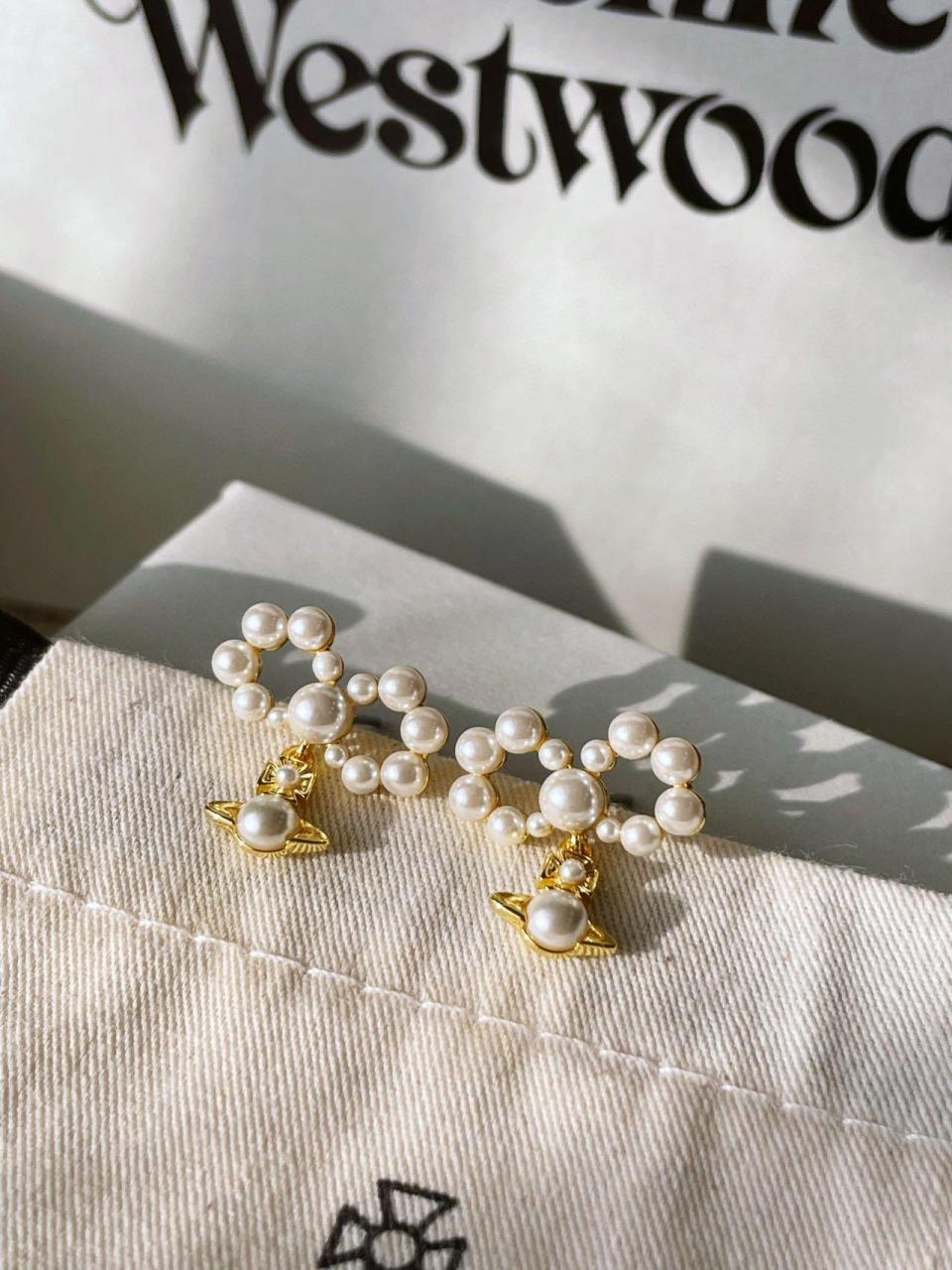 2024早春 VW家珍珠蝴蝶結土星耳環