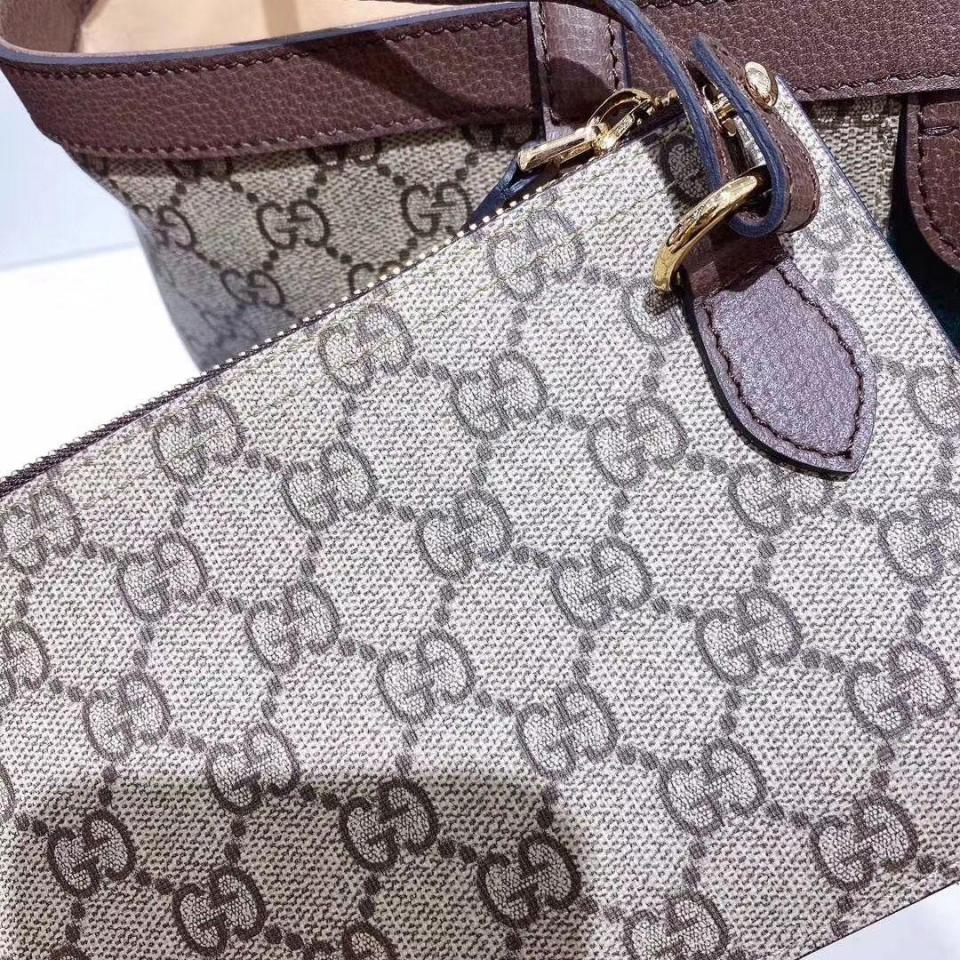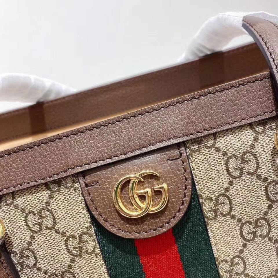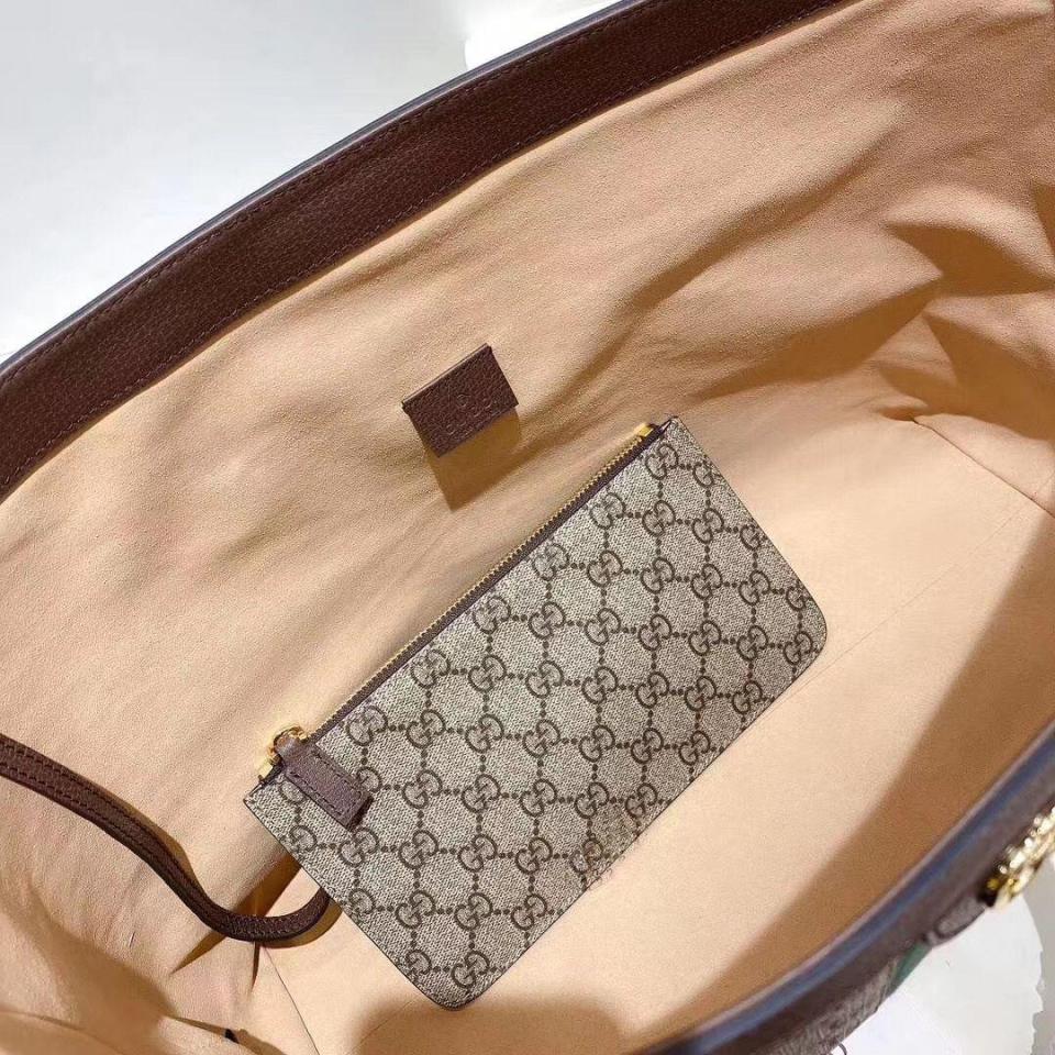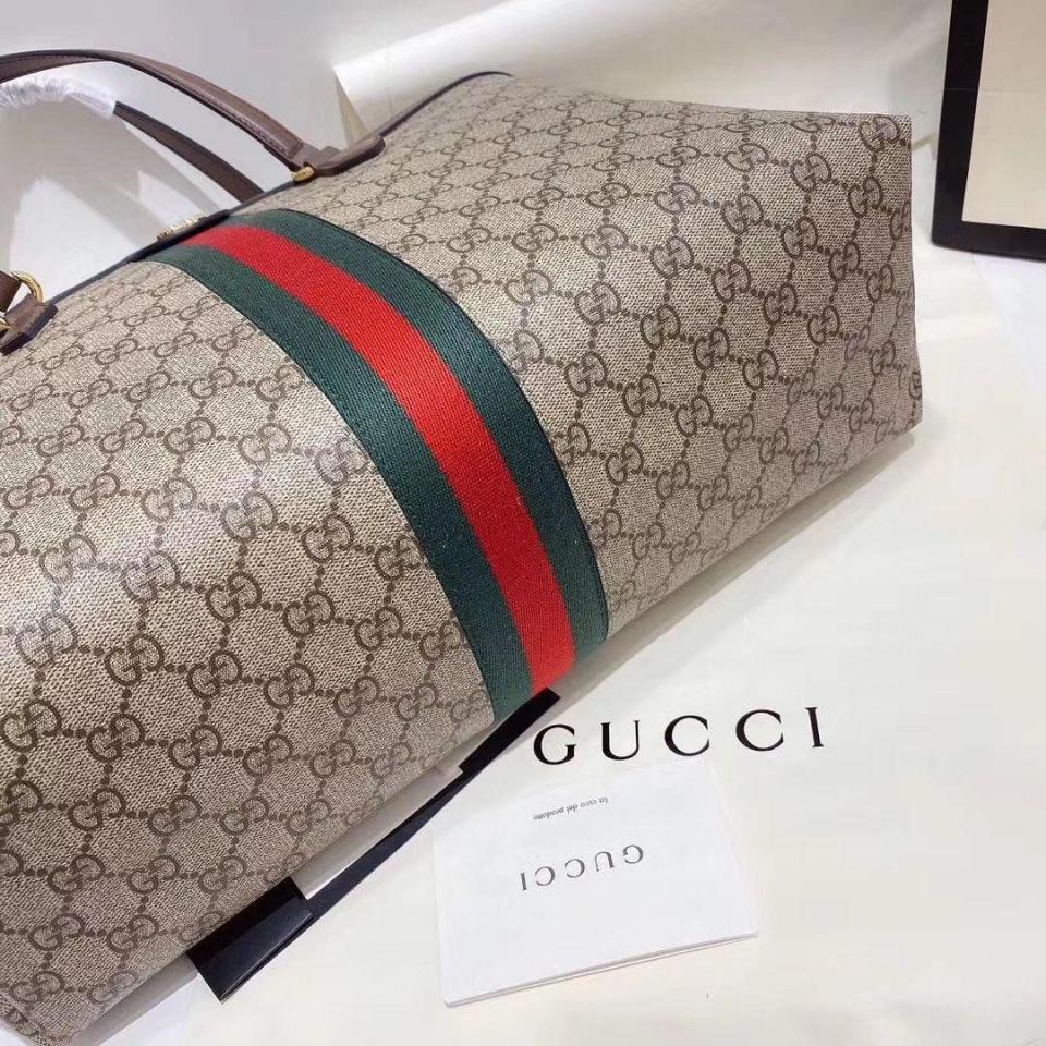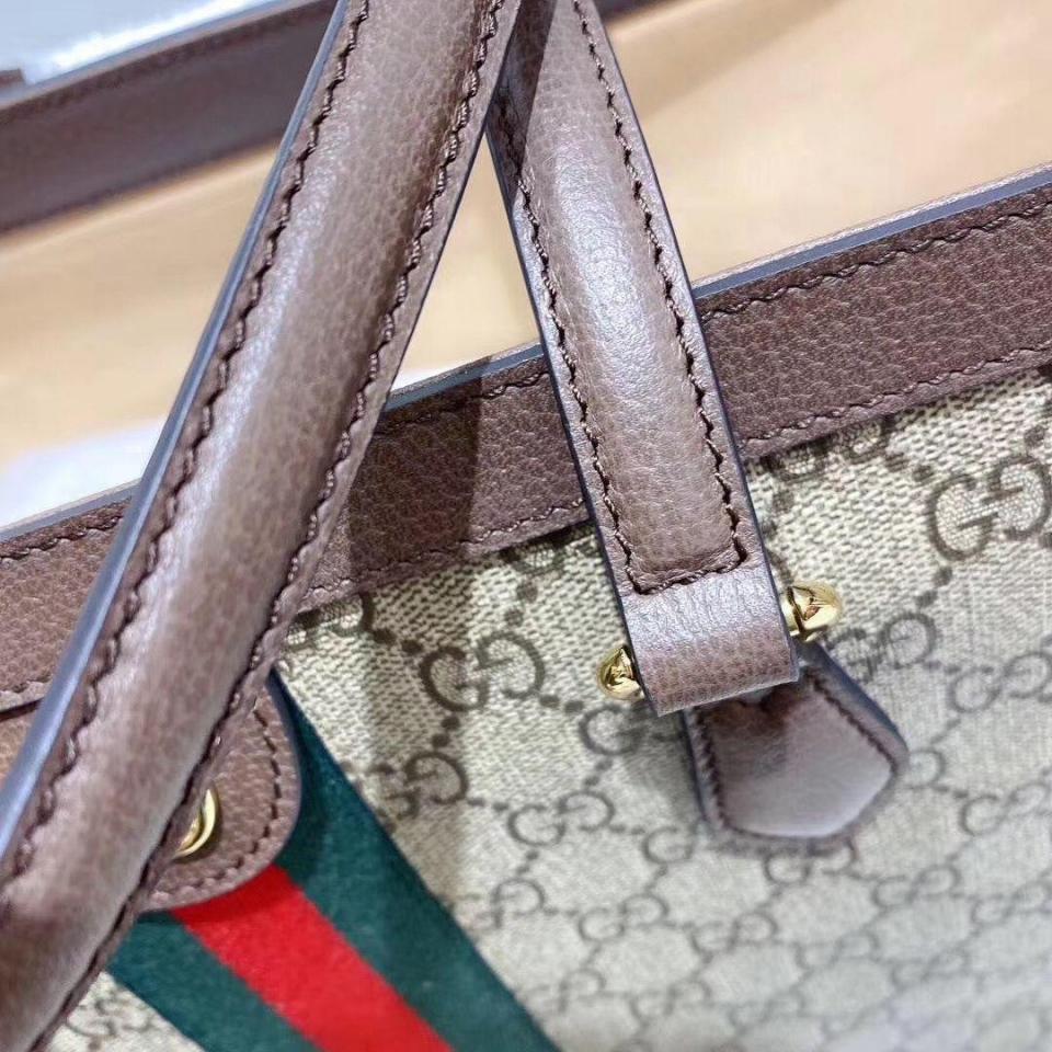 棕色牛皮搭配GG防水帆布 標誌性紅綠織帶裝飾