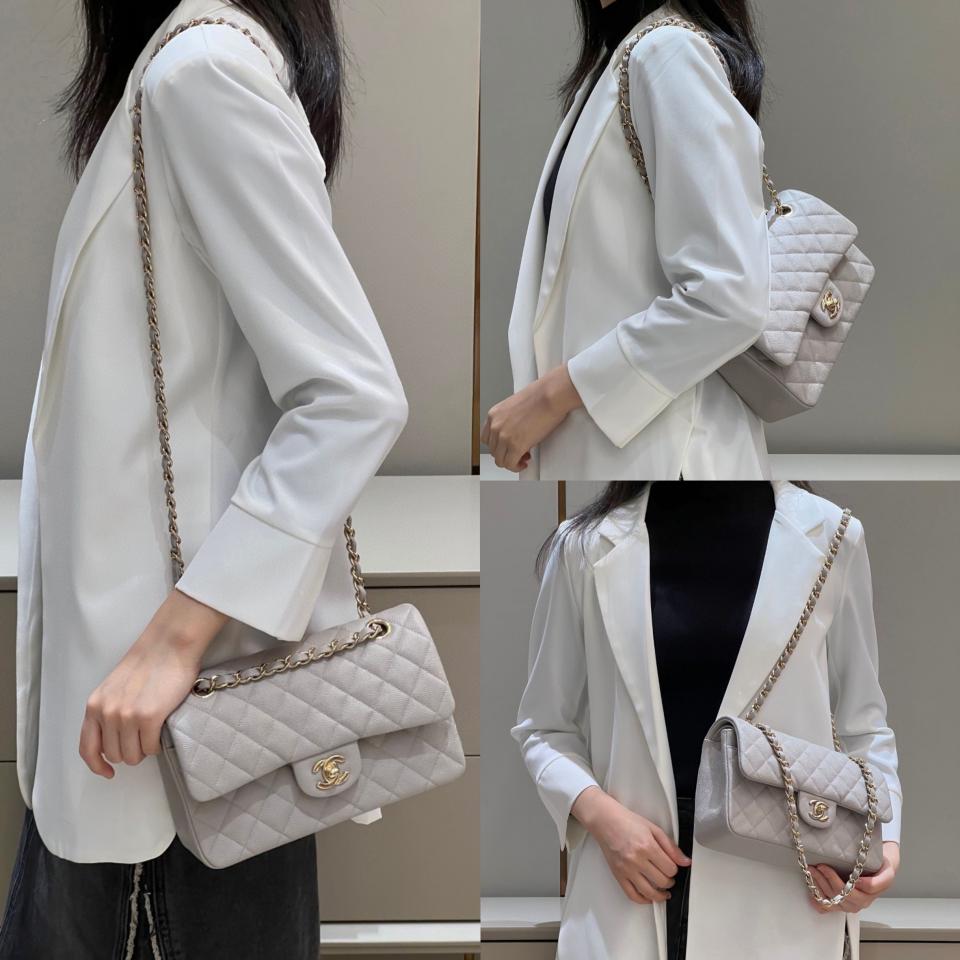 2023春夏新品 C家CF23經典款細球魚子醬紋鏈條包 超美灰色系