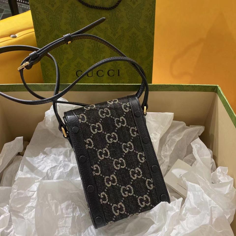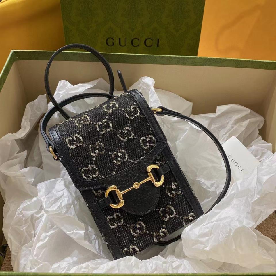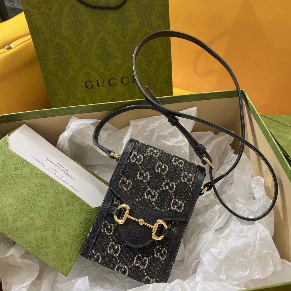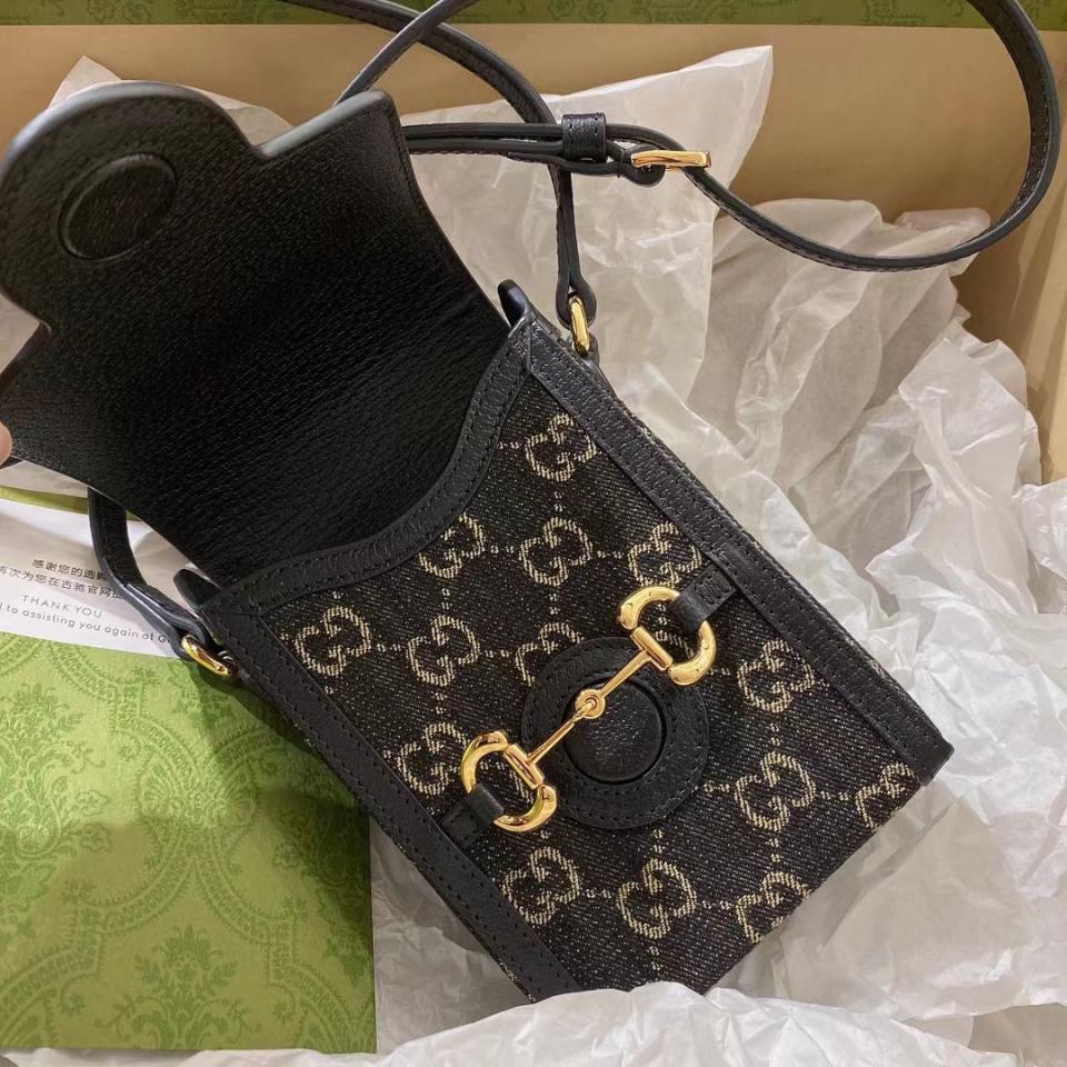 G家Horsebit bag 黑色丹寧牛仔手機包