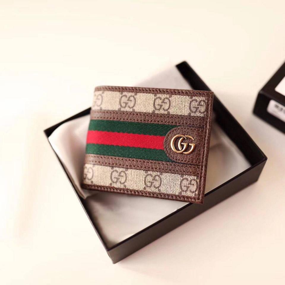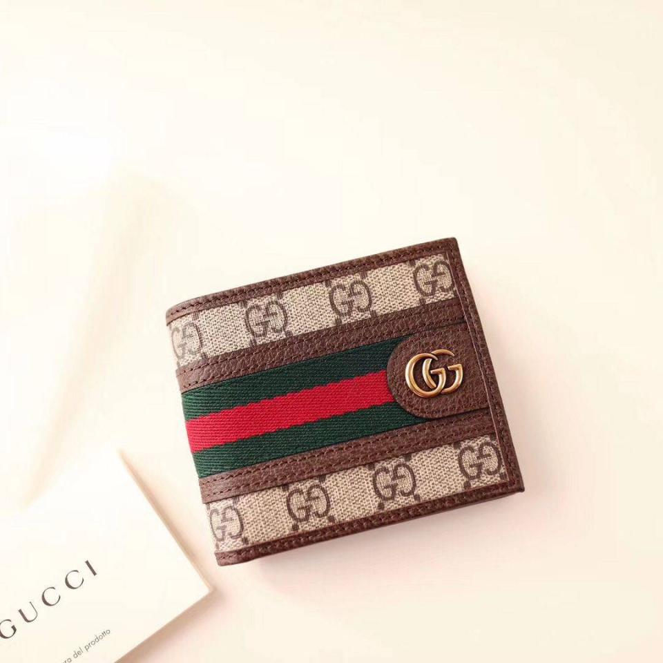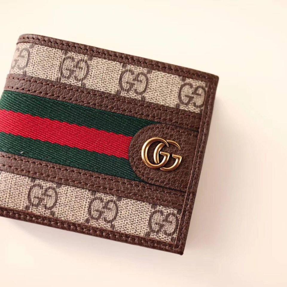 Ophidia系列新款短夾 棕色牛皮搭配GG花紋五金
