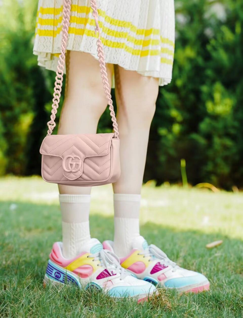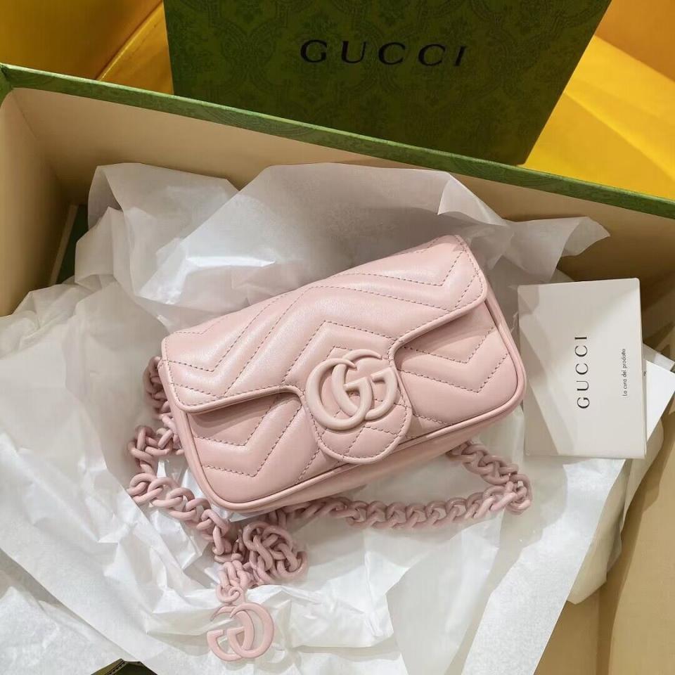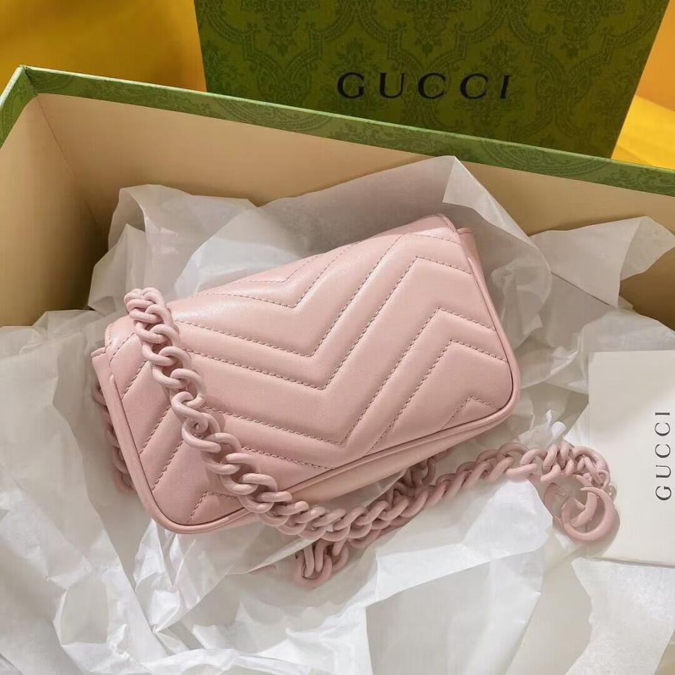 2023春夏新品 G家Marmont馬卡龍系列迷你肩背包(粉色) 同色GG標誌鏈條設計