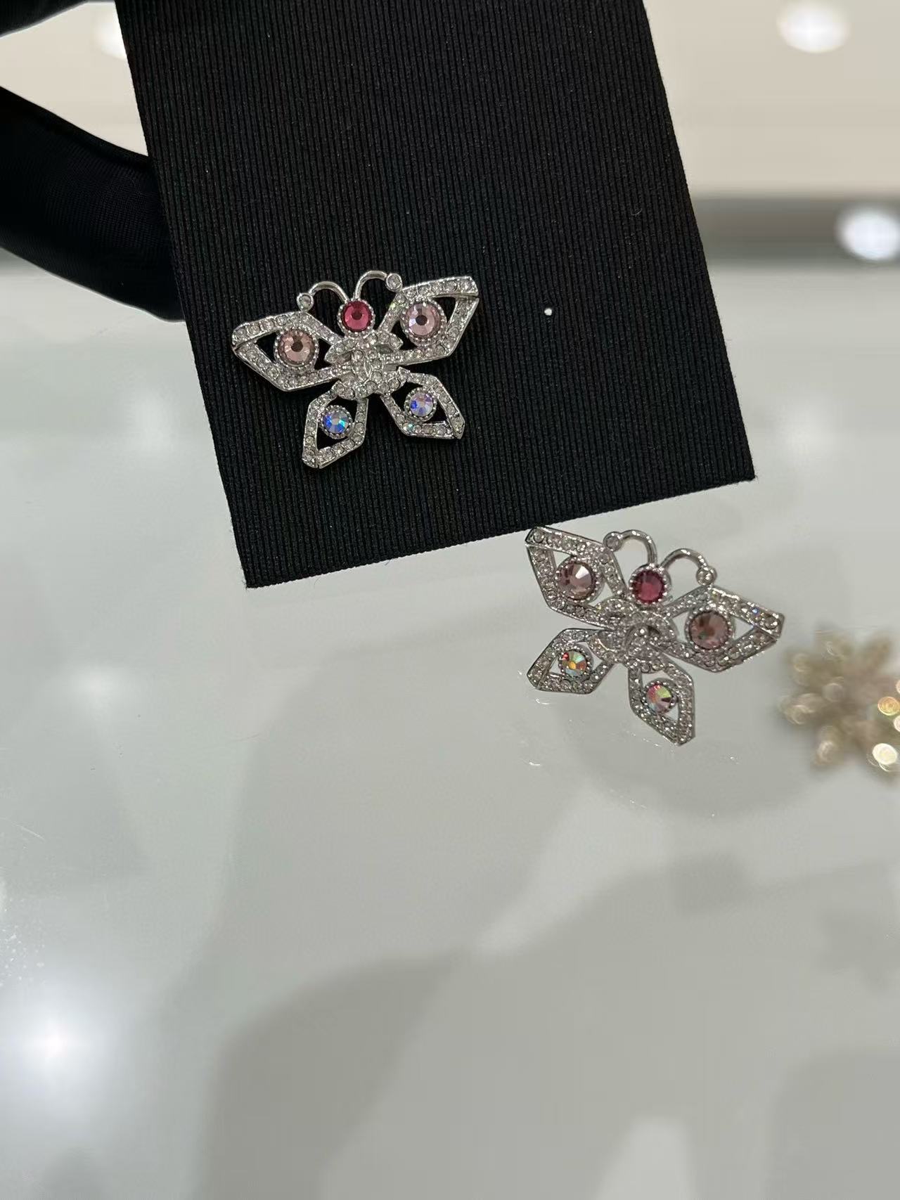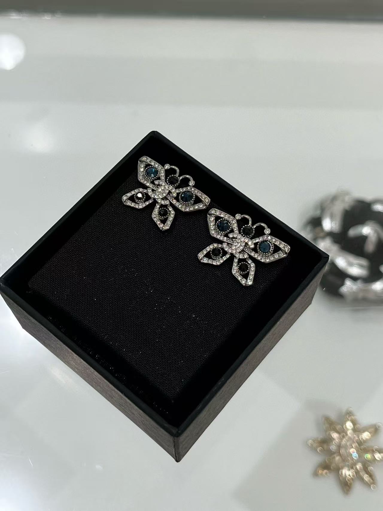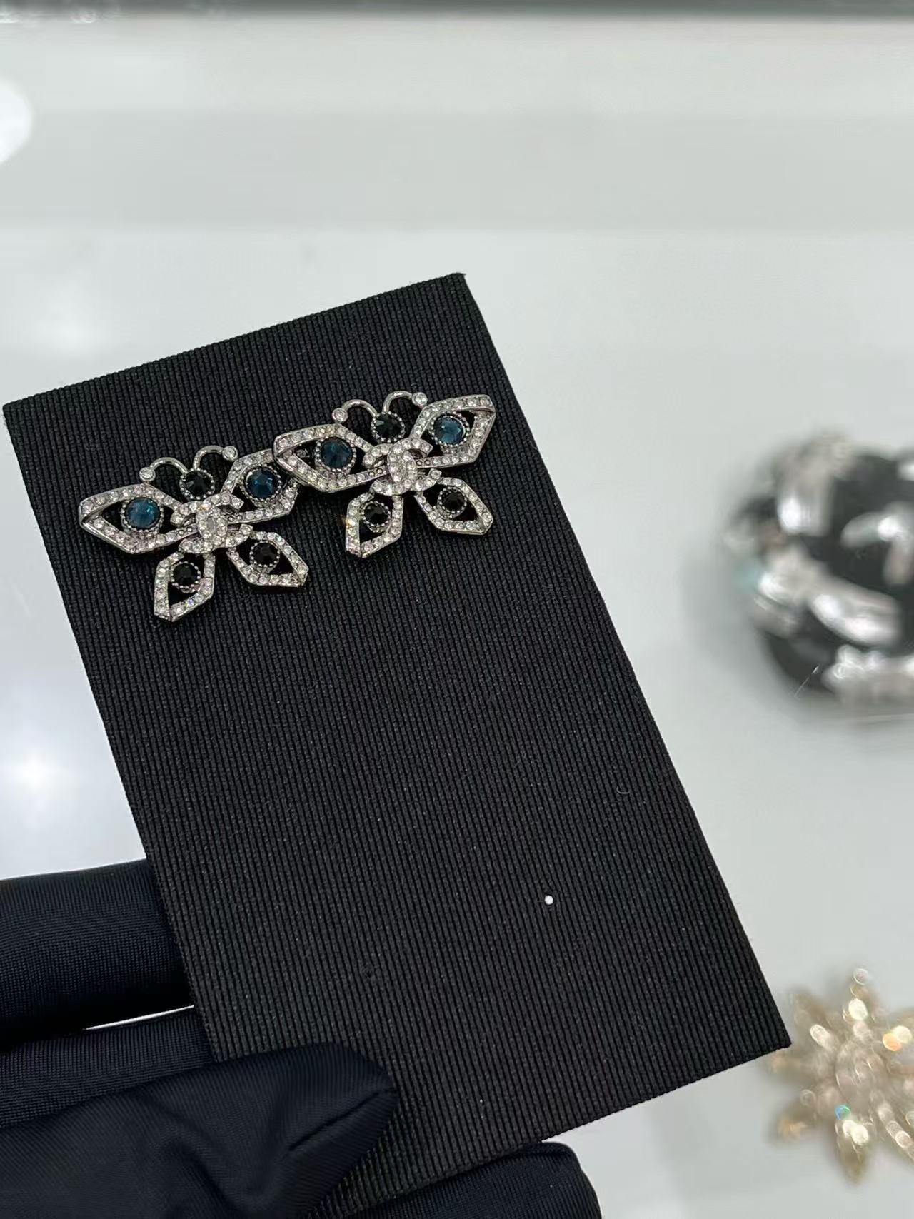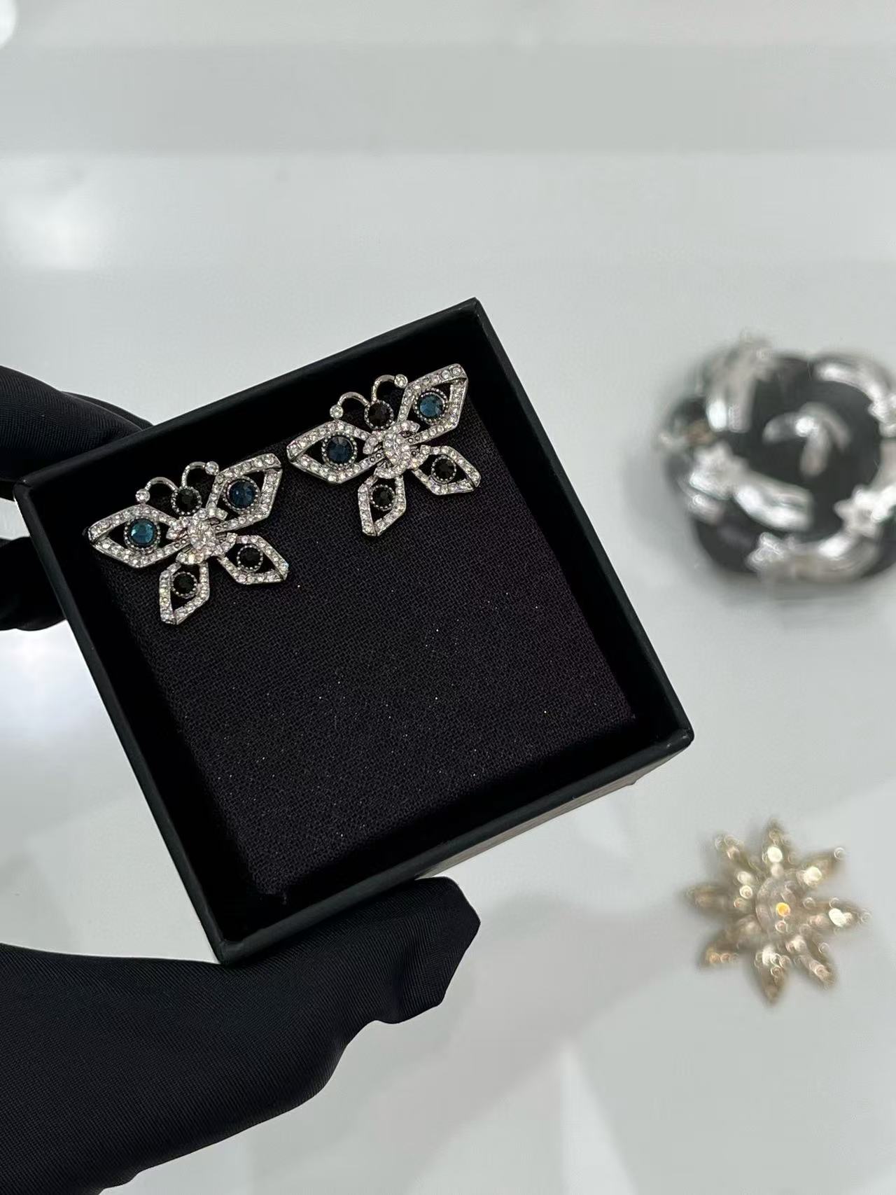 2025早秋 C家 水晶鑽鏤空蝴蝶雙C耳環