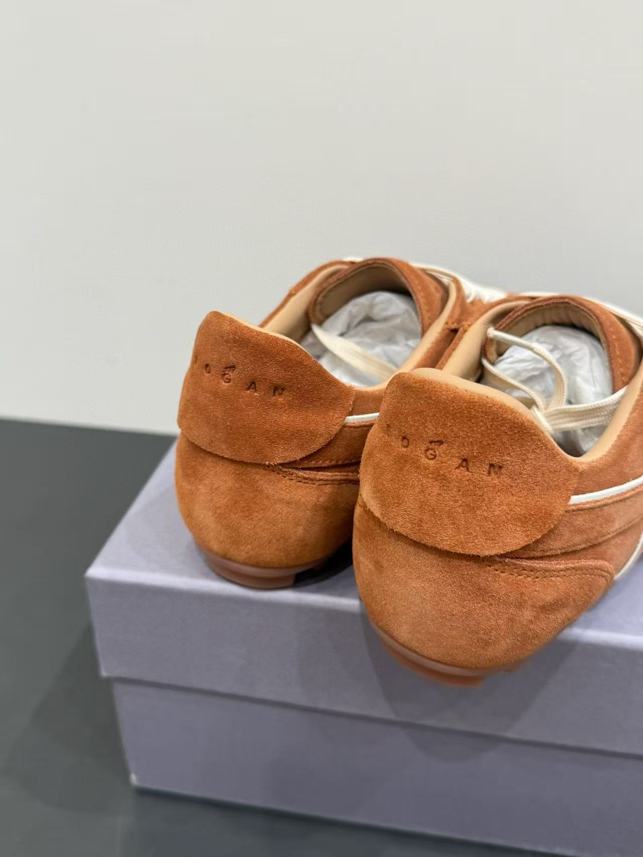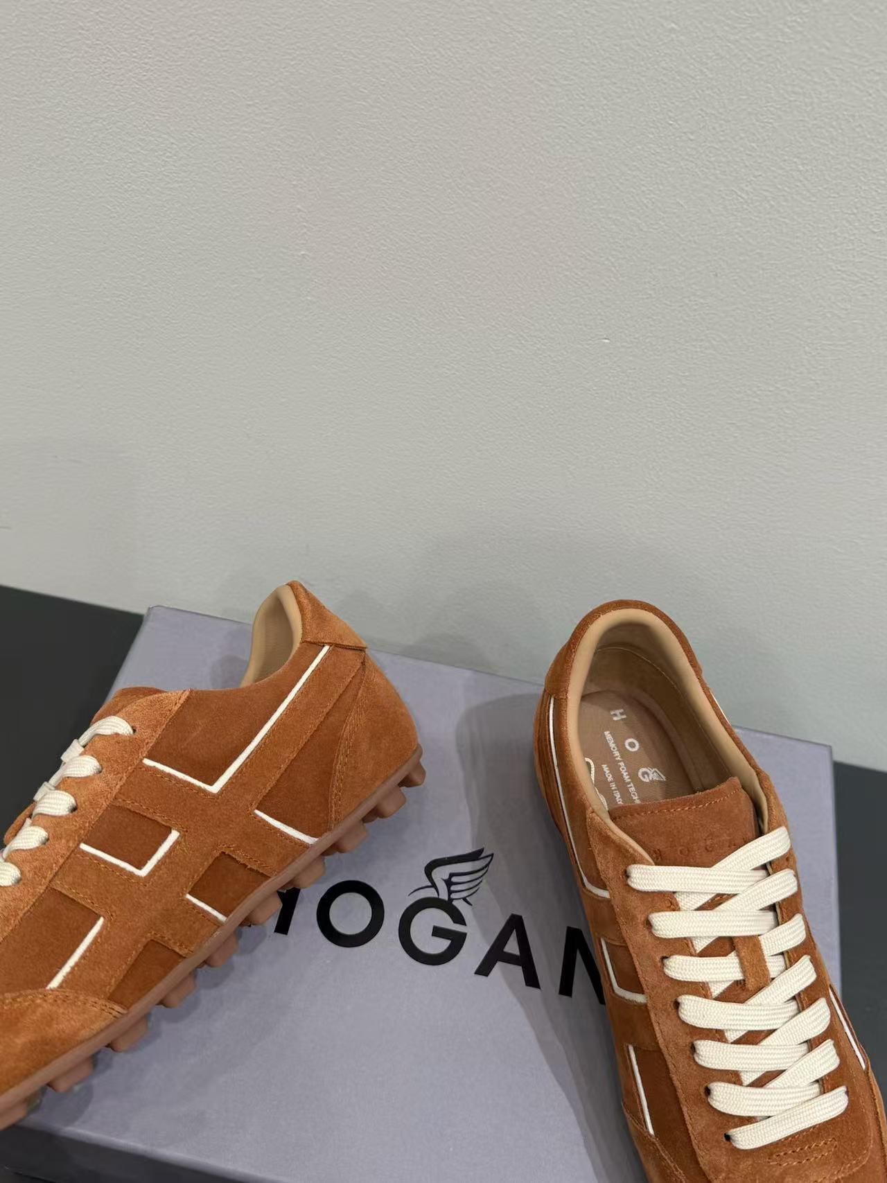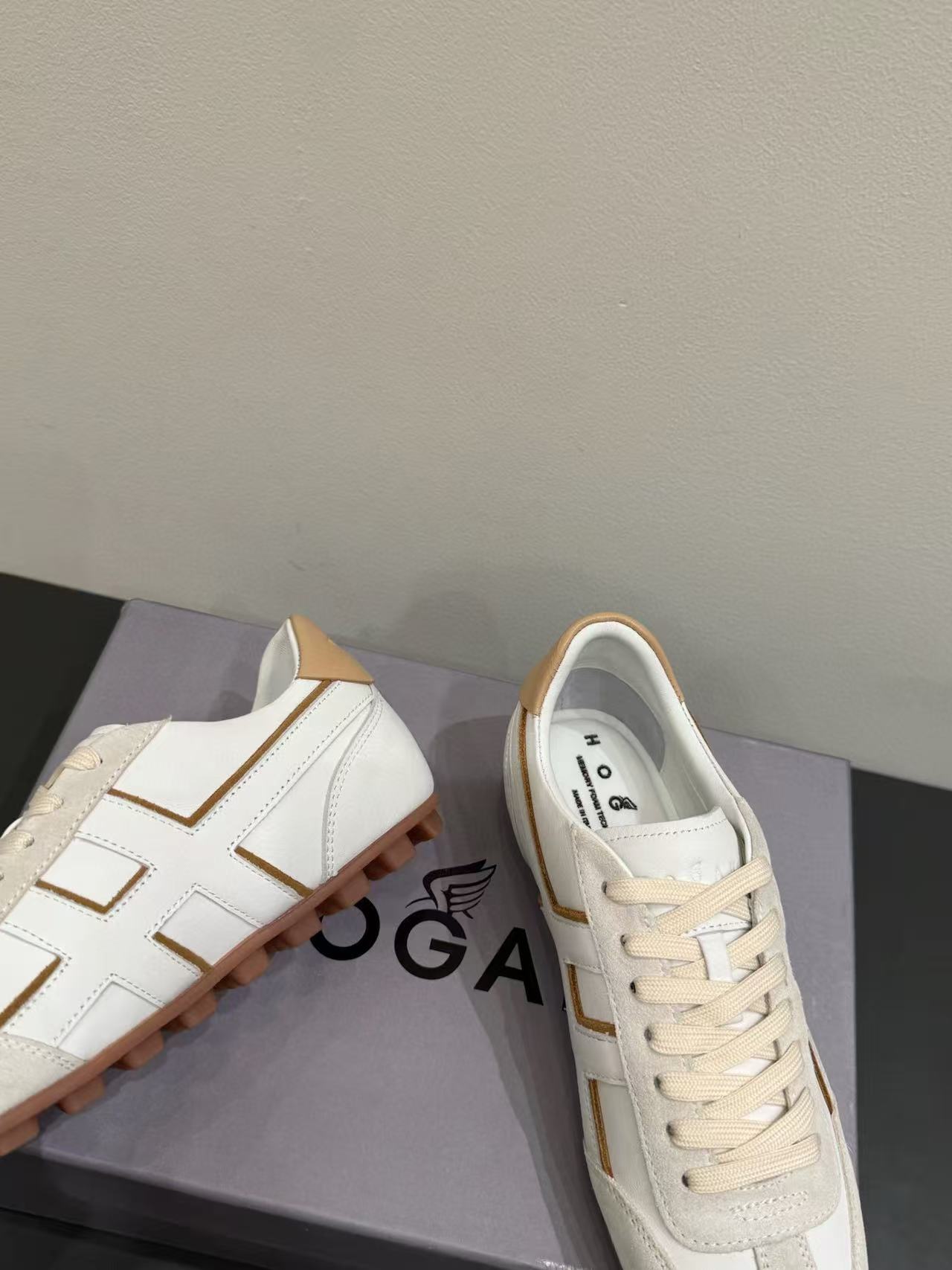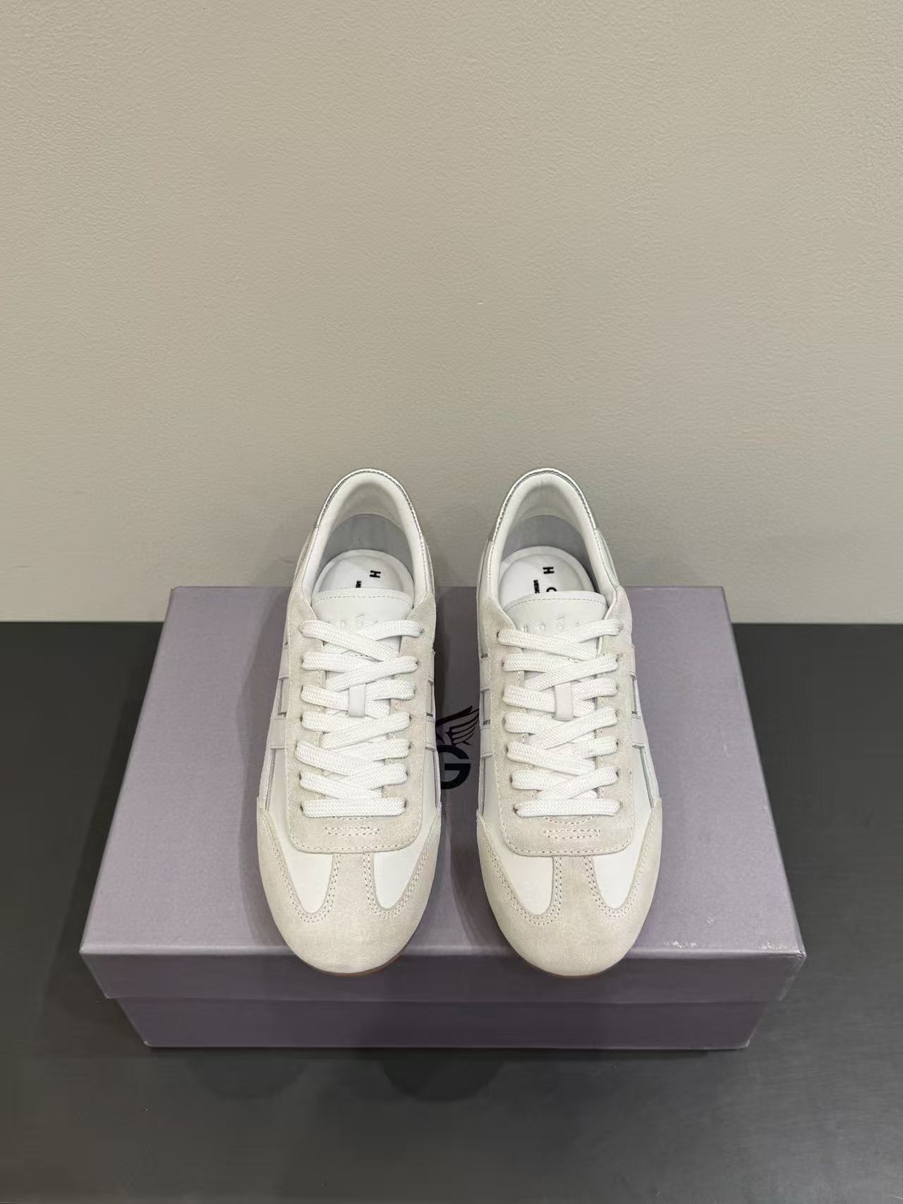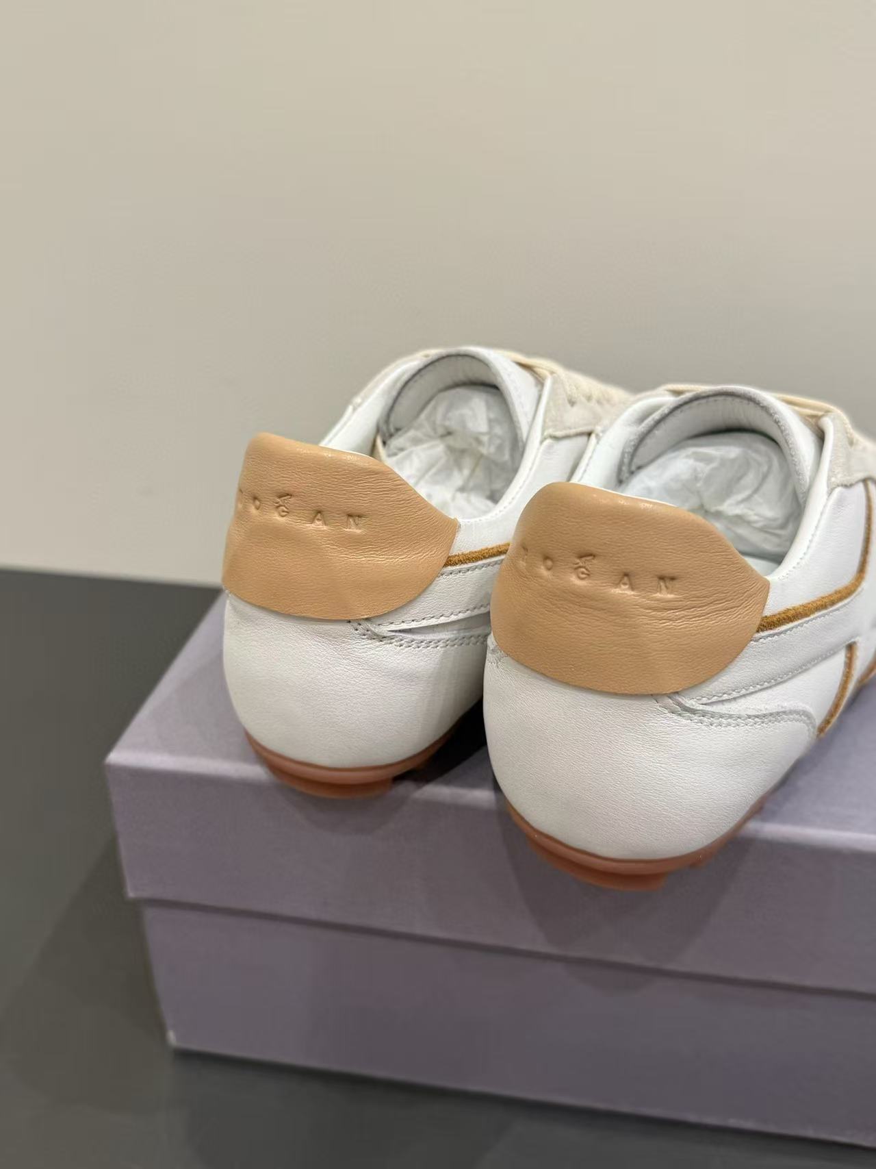 鞋身沿邊設計極富層次感,搭配石洗技術的圓圈線條,增添視覺趣味,完美呈現 Hogan 的現代街頭風格。