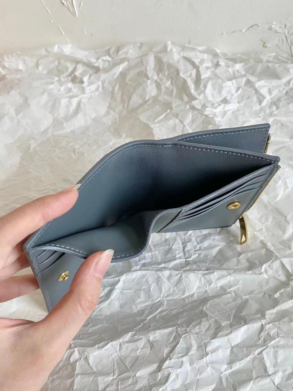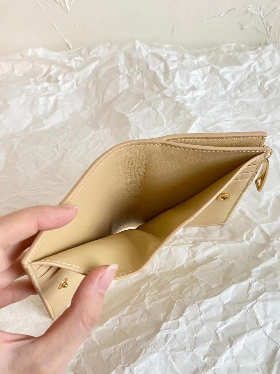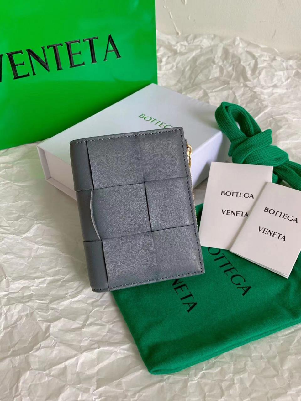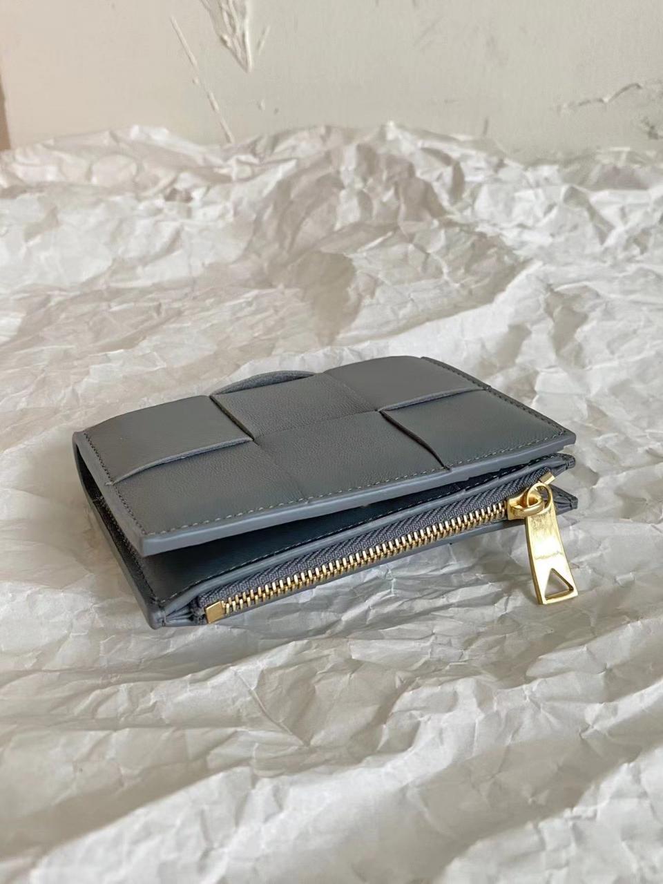2023早秋 BV家大格子對折短夾 小羊皮質感 摸起來舒服