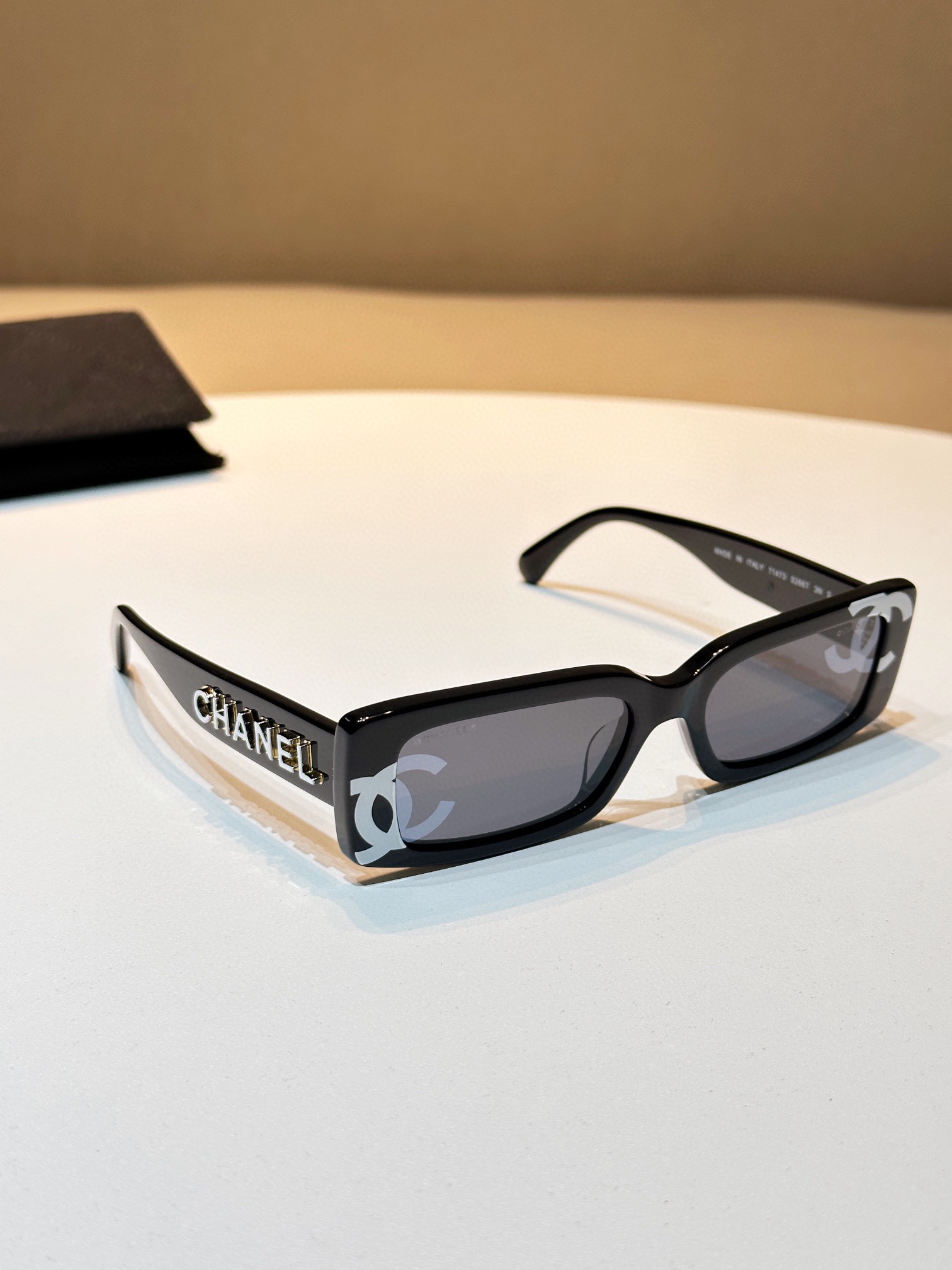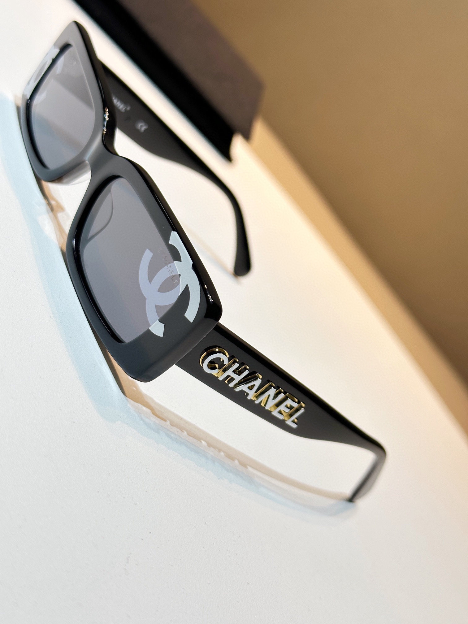 ・鏡腿細節:鎏金金屬Logo,質感滿分