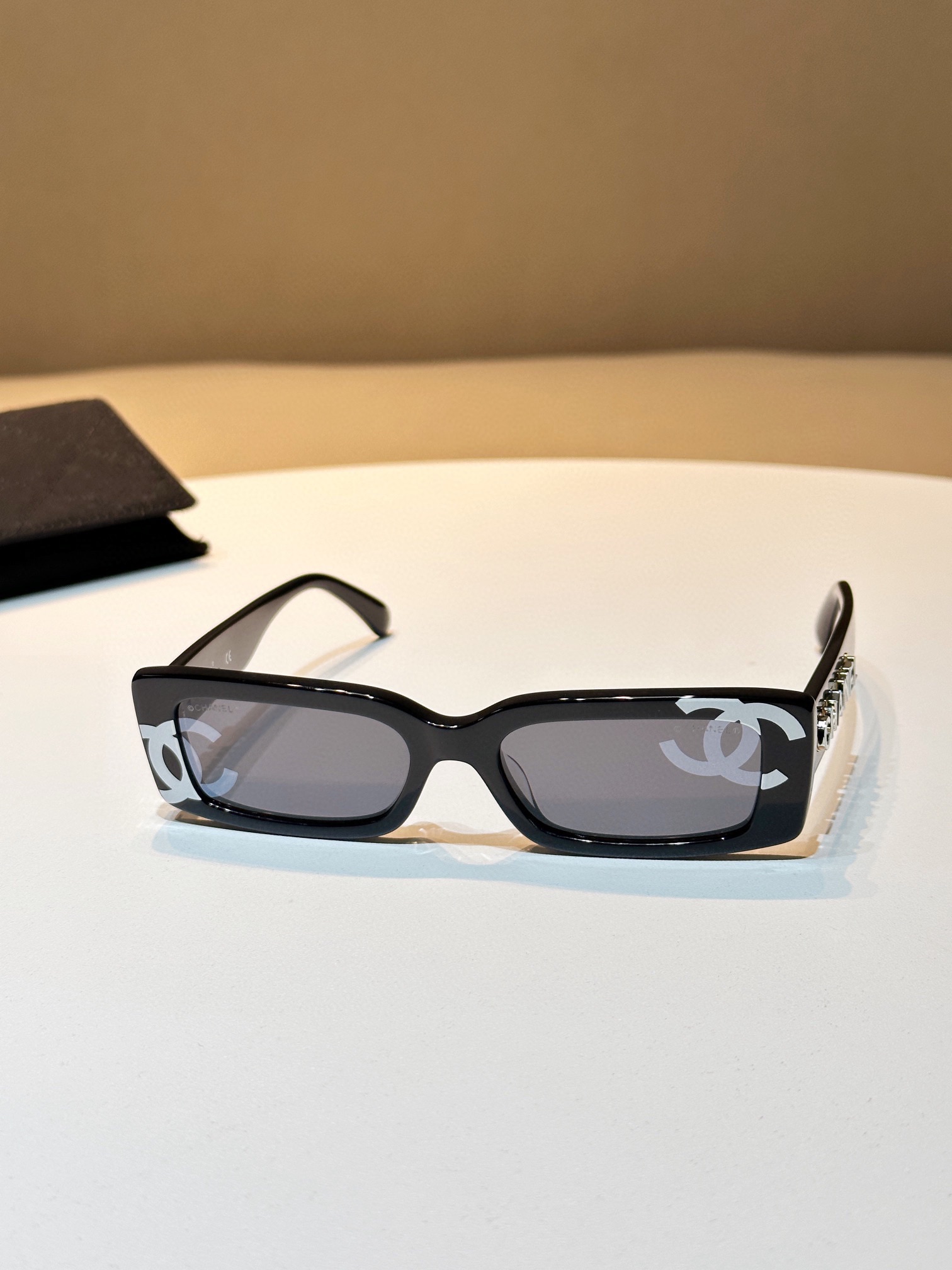 最讓人驚豔的是鏡片上的隱形Logo設計,在特定光線下若隱若現,像是時尚界的黑科技,為整體造型增添未來感與神秘氛圍。這副眼鏡不只是配件,更是一種風格態度的展現。
