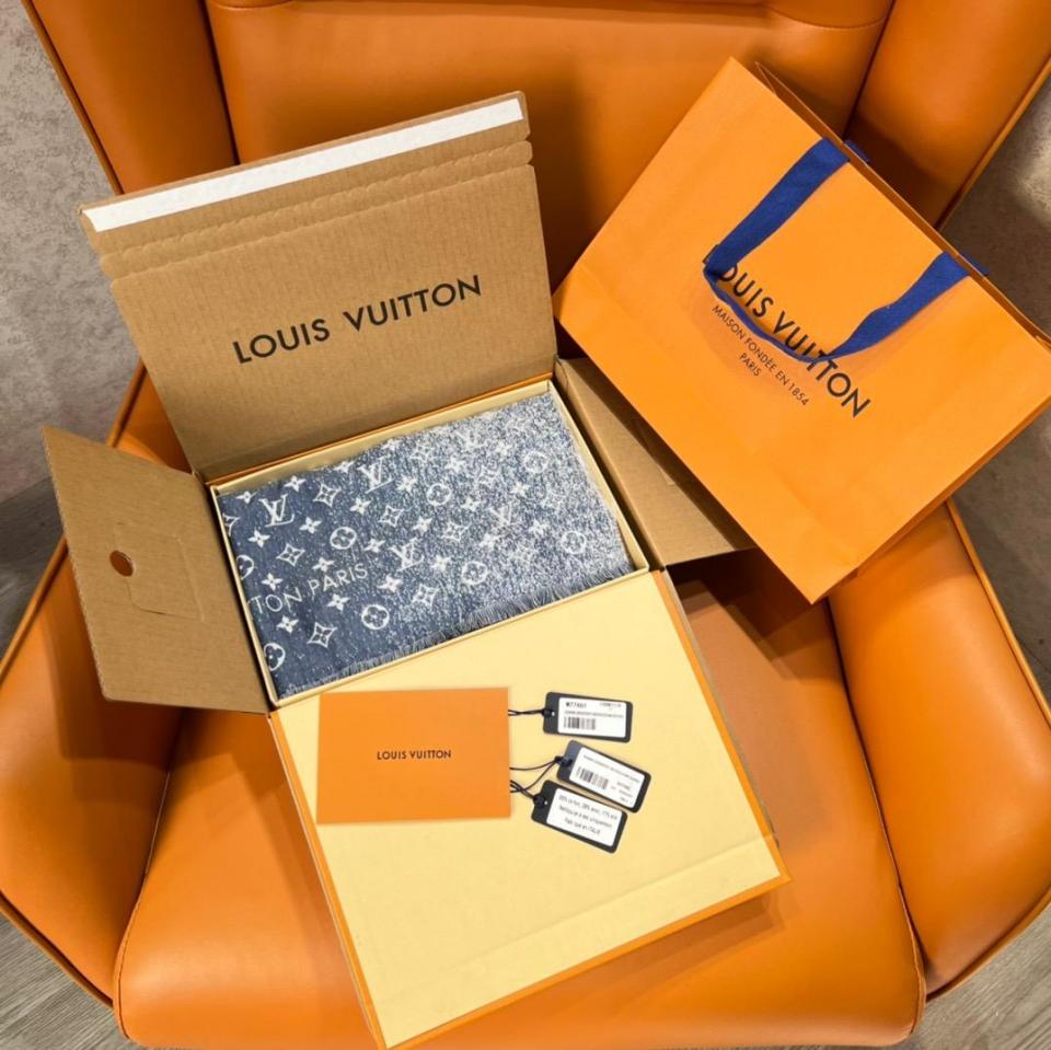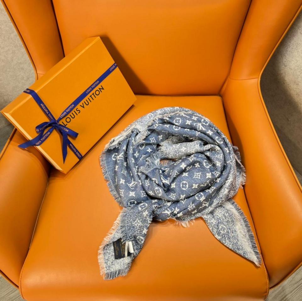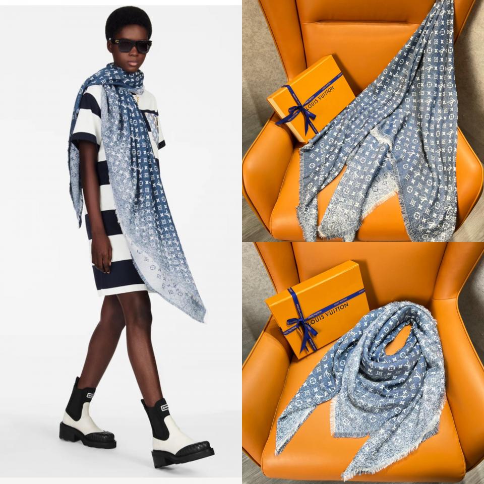 2022秋冬新品 L家經典老花復古漸變提花圍巾(藍色) 年度最美圍巾
