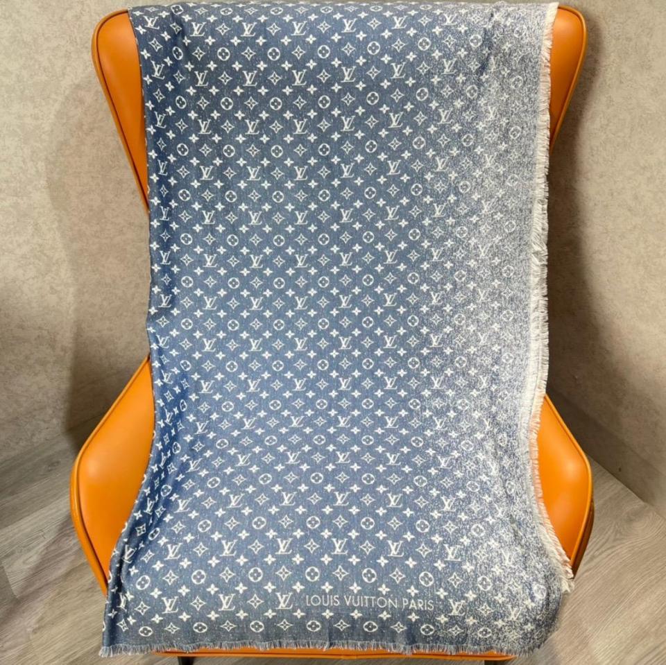 L家經典老花復古漸變提花圍巾(藍色)