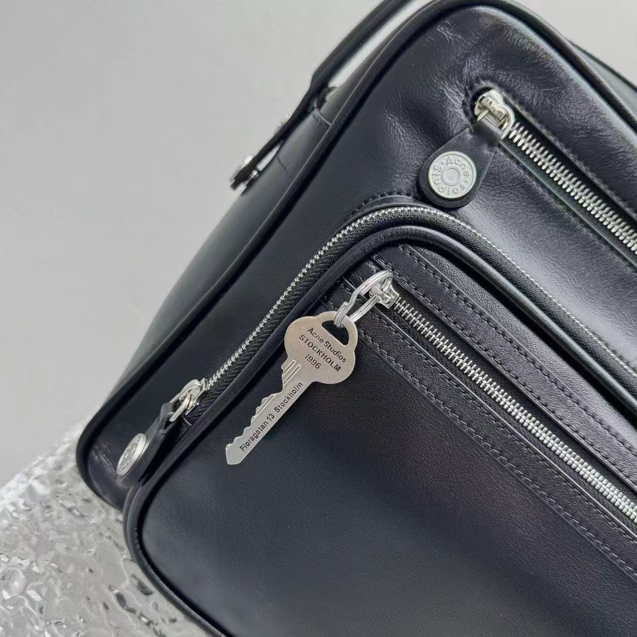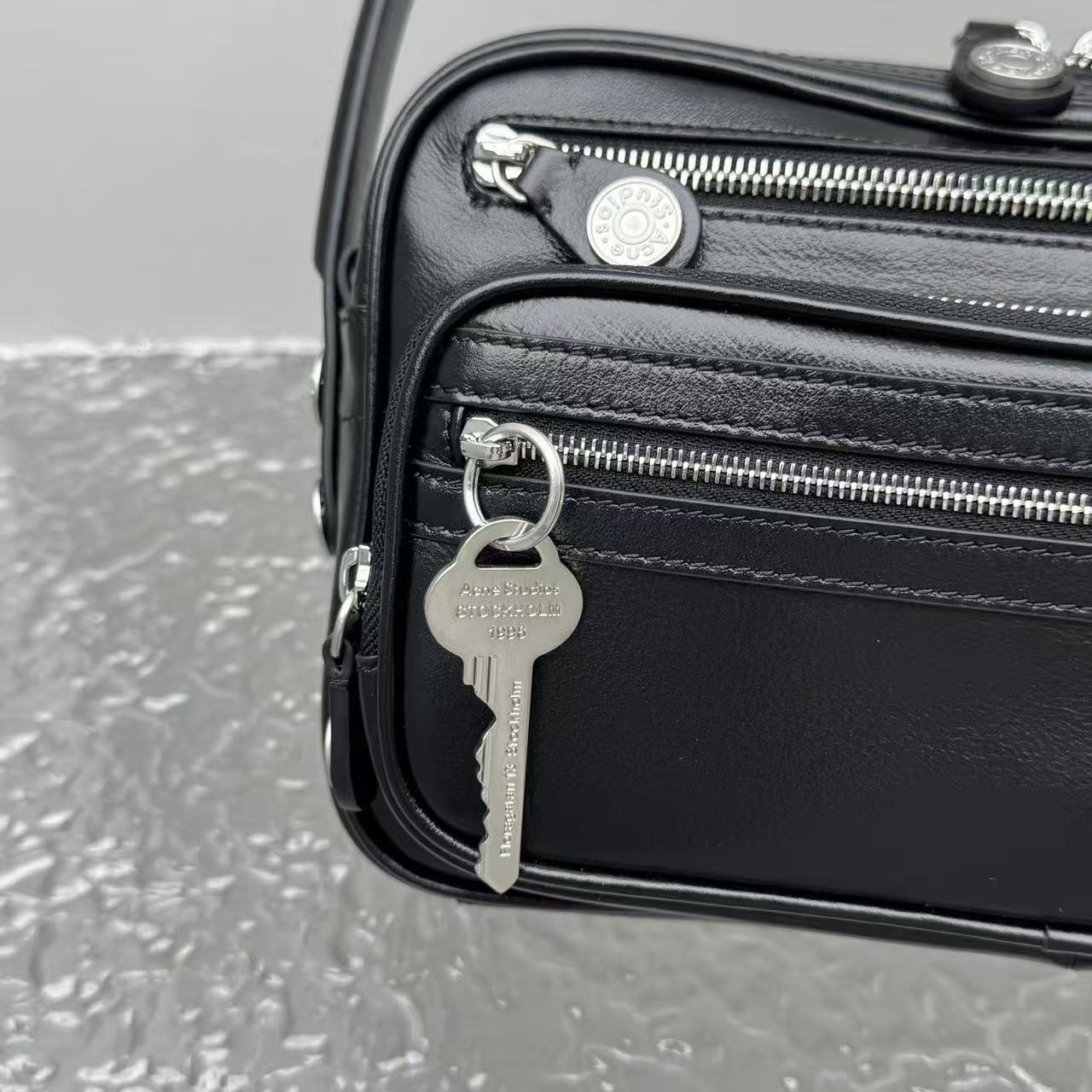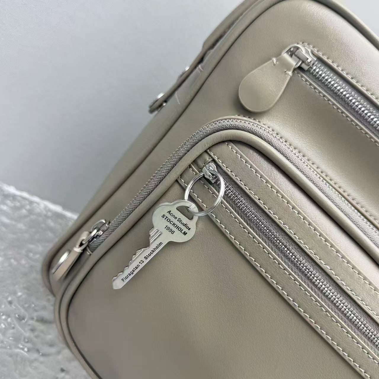 包身標誌性的復古鑰匙掛飾,象徵著瑞典傳統門匙的溫潤質感,與冷灰色的皮面形成強烈對比。這種「獨特而不誇張」的細節,正是這款包能成為 26SS 年度爆品的關鍵。